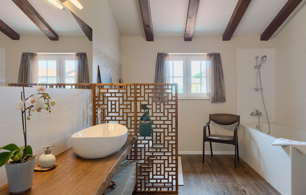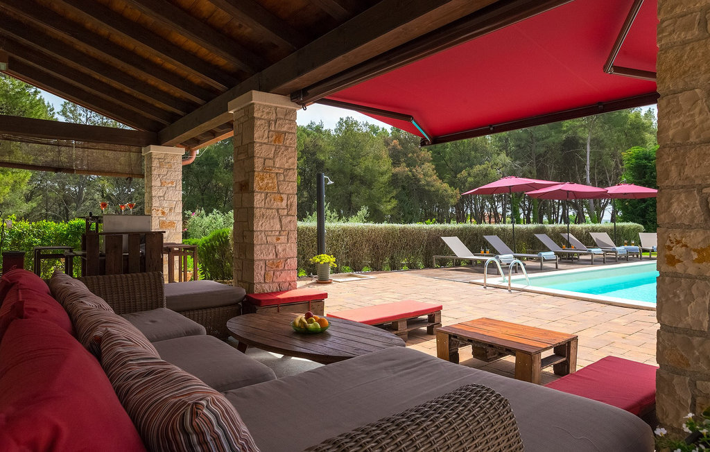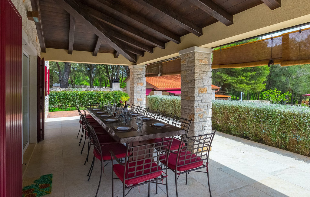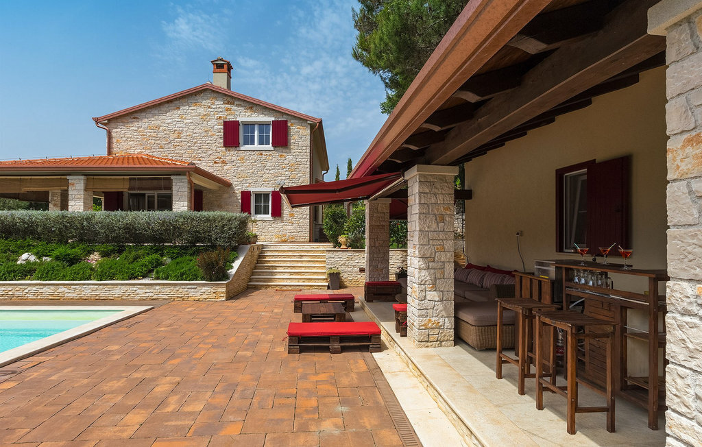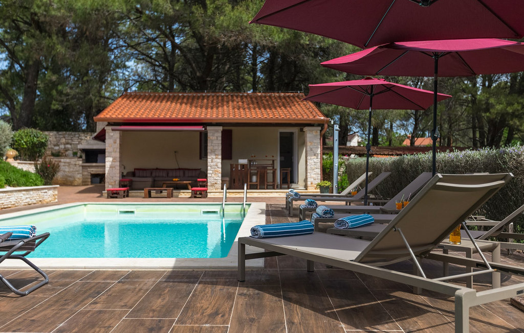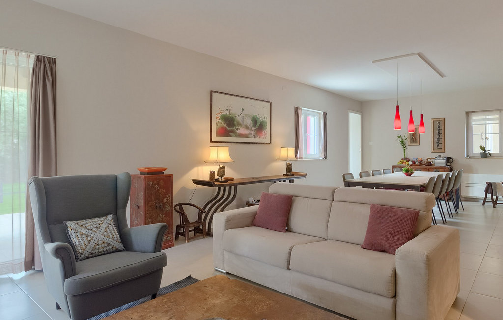 La Villa Eda est une magnifique villa familiale pleine de charme avec des espaces extérieurs et intérieurs extrêmement accueillants. La villa est entourée d'un jardin de 1950 m2 avec une piscine privée au centre. La villa est idéale pour les groupes de deux ou trois familles, car elle peut accueillir jusqu'à 14 personnes. Il y a deux maisons sur la propriété, dont la plus petite, qui se trouve à côté de la piscine, est idéale pour les hôtes qui apprécient particulièrement leur intimité. Au total, la villa dispose de 4 chambres et de 4 salles de bain. À côté de la piscine se trouve également la cuisine d'été, dans laquelle vous pouvez faire des barbecues ou préparer des repas simples. Bien que tout ce dont vous pourriez avoir besoin soit à votre disposition dans la villa, les restaurants, les plages et les bars se trouvent à seulement 2 km de la villa.Cette magnifique maison de vacances se trouve dans le village de Tar-Vabriga près de Pore. La villa se trouve à seulement 2 km de la plage. Tar-Vabriga propose des manifestations culturelles et de loisirs (par ex. des courses d'ânes). Pendant votre séjour, visitez la basilique d'Euphrasius (patrimoine culturel de l'Unesco) dans la ville culturelle et historique de Pore. Vinjan (à 11 km de Porec) est une petite ville perchée sur une colline, entourée de forêts, connue pour son observatoire astronomique de renommée internationale.