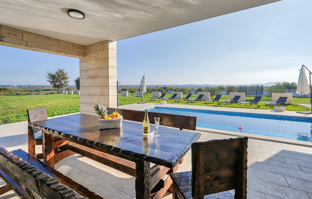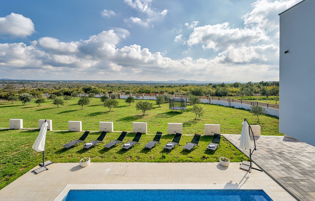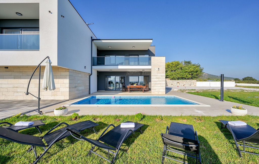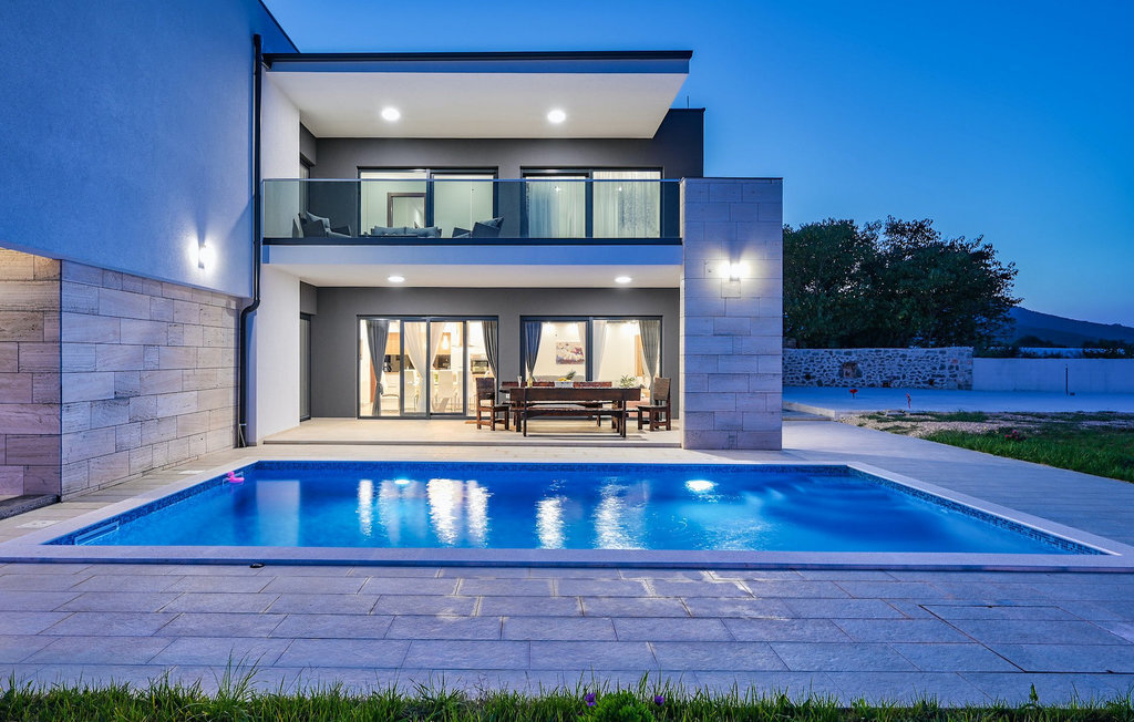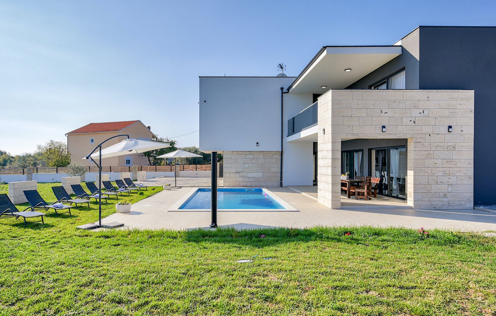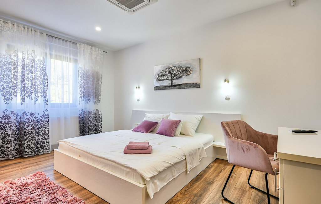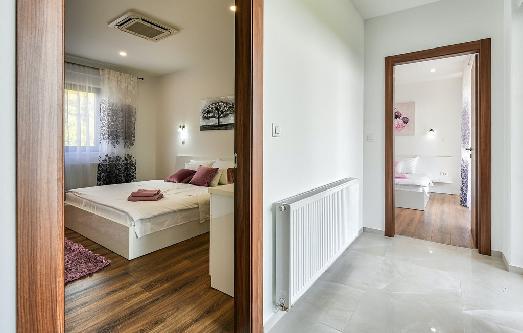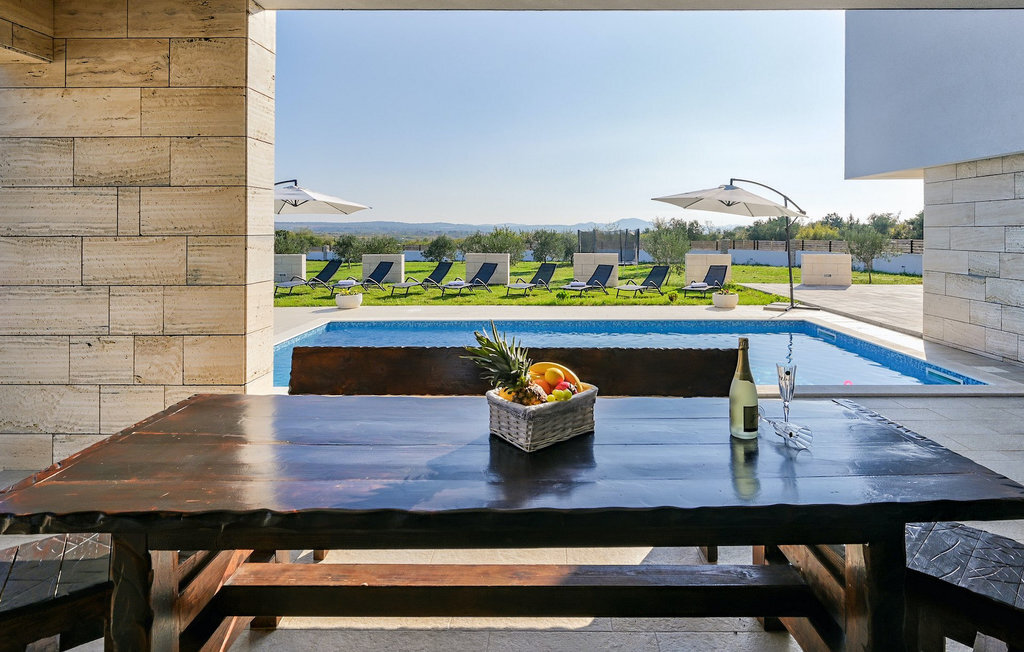 Si vous êtes à la recherche d'une belle villa moderne près de la mer et d'une nature intacte, la Villa FA Exclusive est votre choix ! Cette magnifique villa peut accueillir 8 personnes dans 4 chambres et elle a bien plus à offrir. Si vous êtes à la recherche de divertissement ou d'une petite séance de travail, vous trouverez du matériel de fitness et des fléchettes au rez-de-chaussée. Le rez-de-chaussée offre également un espace meublé spacieux et contemporain avec un salon et une salle à manger ainsi qu'une belle cuisine équipée. Vous y trouverez également une chambre à coucher, tandis que les 3 autres se trouvent au premier étage. Toutes les chambres ont des lits doubles, des climatiseurs et des télévisions à disposition et celles de l'étage ont également des salles de bain en suite. L'espace extérieur avec sa piscine accueillante est l'endroit idéal pour prendre un bain de soleil et se détendre sur l'un des transats. Si vous voyagez avec des enfants, le jardin dispose d'une aire de jeux pour les enfants ainsi que d'un trampoline. La villa FA Exclusive est située dans le petit village de Donje Rastane, en face de l'île de Pasman et à seulement 20 km de l'un des centres touristiques les plus intéressants de Dalmatie - Zadar. Cette situation est parfaite pour ceux qui aiment se reposer sur la plage, mais aussi pour les vacanciers actifs, car le parc national de Paklenica n'est qu'à 50 km. A proximité se trouve également le lac Vrana avec une belle nature, entre la mer et les montagnes. On peut y faire de belles randonnées à pied ou à vélo et admirer la nature. Ne manquez pas non plus de visiter la magnifique ville de Zadar avec ses nombreuses offres culturelles et gastronomiques. Visitez les nombreux musées, admirez l'architecture antique ou profitez des plages naturelles et de la vie nocturne active. Dans le centre-ville de Zadar, ne manquez pas de visiter l'ancien forum avec l'église de Saint-Donat (datant du 9e siècle). C'est l'un des monuments les plus importants de Zadar, avec l'église construite dans le style roman.