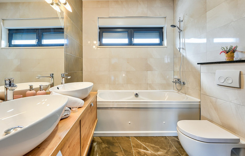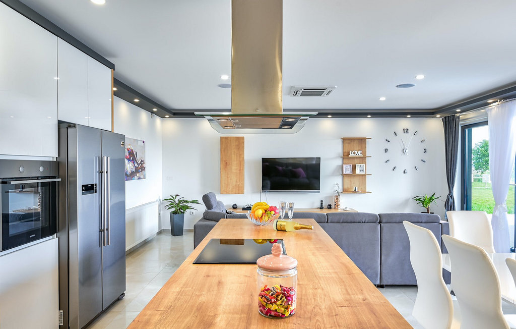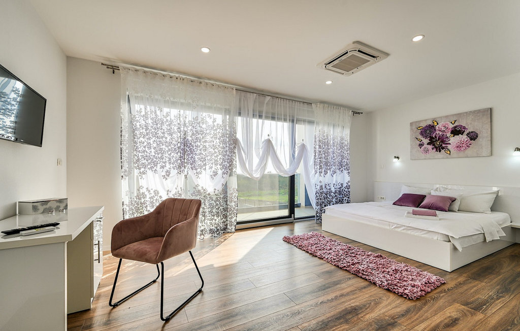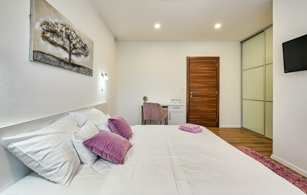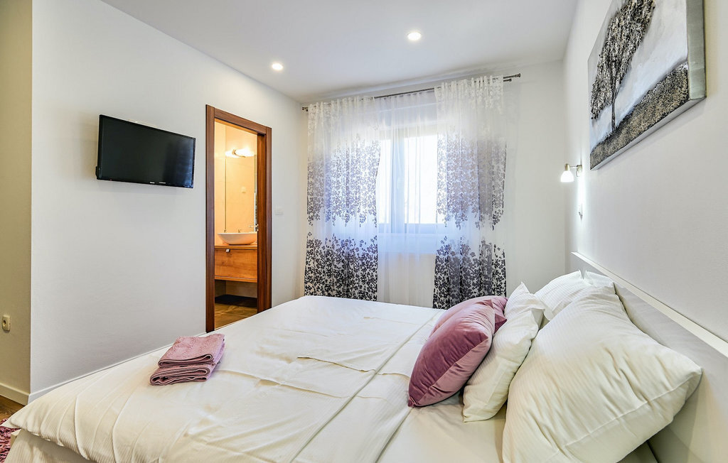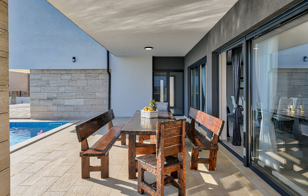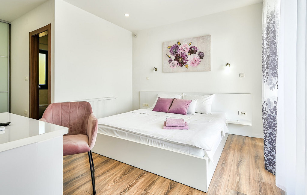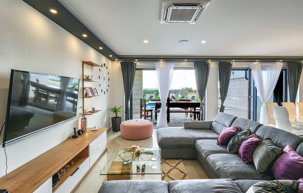 Si vous êtes à la recherche d'une belle villa moderne près de la mer et d'une nature intacte, la Villa FA Exclusive est votre choix ! Cette magnifique villa peut accueillir 8 personnes dans 4 chambres et elle a bien plus à offrir. Si vous êtes à la recherche de divertissement ou d'une petite séance de travail, vous trouverez du matériel de fitness et des fléchettes au rez-de-chaussée. Le rez-de-chaussée offre également un espace meublé spacieux et contemporain avec un salon et une salle à manger ainsi qu'une belle cuisine équipée. Vous y trouverez également une chambre à coucher, tandis que les 3 autres se trouvent au premier étage. Toutes les chambres ont des lits doubles, des climatiseurs et des télévisions à disposition et celles de l'étage ont également des salles de bain en suite. L'espace extérieur avec sa piscine accueillante est l'endroit idéal pour prendre un bain de soleil et se détendre sur l'un des transats. Si vous voyagez avec des enfants, le jardin dispose d'une aire de jeux pour les enfants ainsi que d'un trampoline. La villa FA Exclusive est située dans le petit village de Donje Rastane, en face de l'île de Pasman et à seulement 20 km de l'un des centres touristiques les plus intéressants de Dalmatie - Zadar. Cette situation est parfaite pour ceux qui aiment se reposer sur la plage, mais aussi pour les vacanciers actifs, car le parc national de Paklenica n'est qu'à 50 km. A proximité se trouve également le lac Vrana avec une belle nature, entre la mer et les montagnes. On peut y faire de belles randonnées à pied ou à vélo et admirer la nature. Ne manquez pas non plus de visiter la magnifique ville de Zadar avec ses nombreuses offres culturelles et gastronomiques. Visitez les nombreux musées, admirez l'architecture antique ou profitez des plages naturelles et de la vie nocturne active. Dans le centre-ville de Zadar, ne manquez pas de visiter l'ancien forum avec l'église de Saint-Donat (datant du 9e siècle). C'est l'un des monuments les plus importants de Zadar, avec l'église construite dans le style roman.