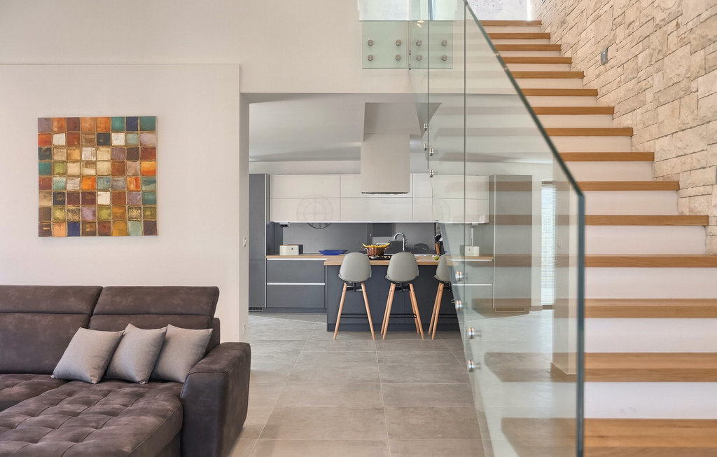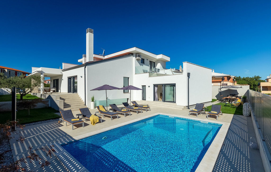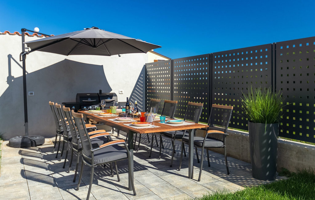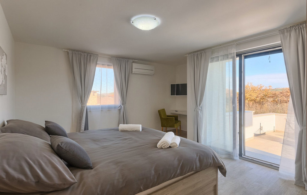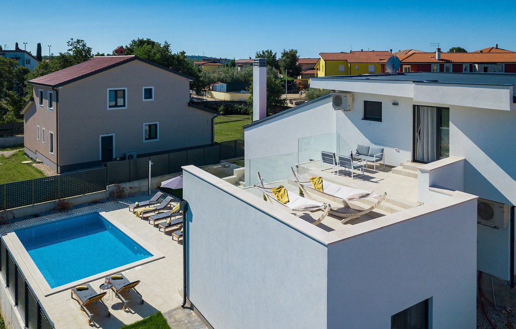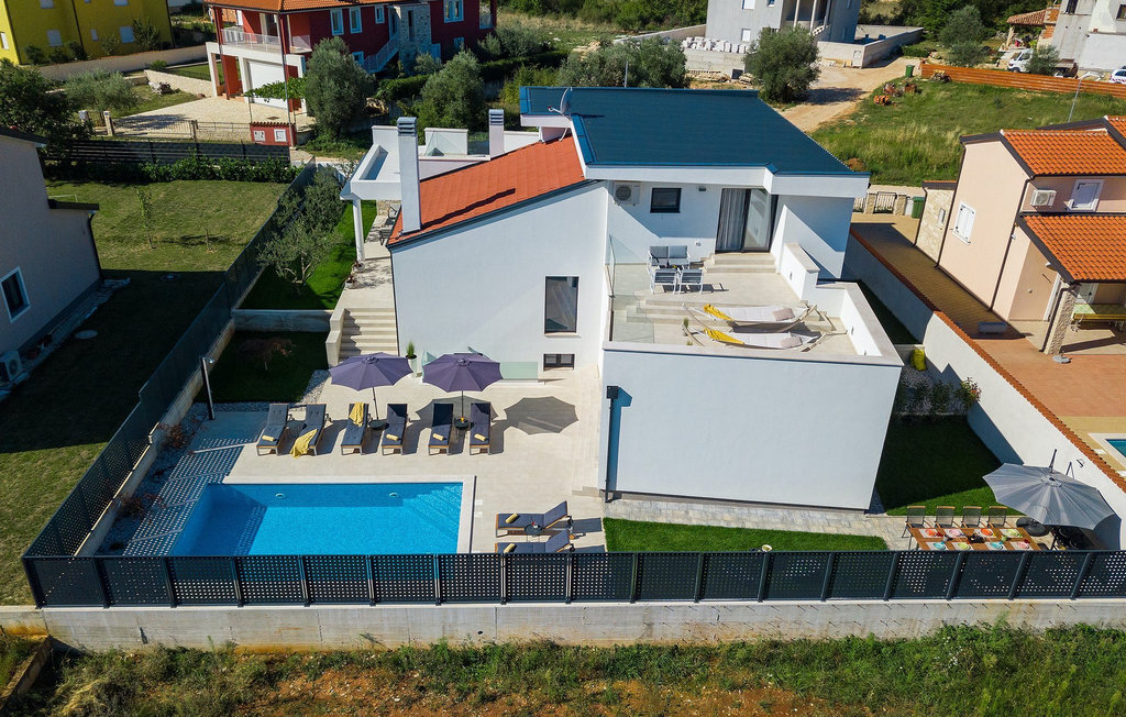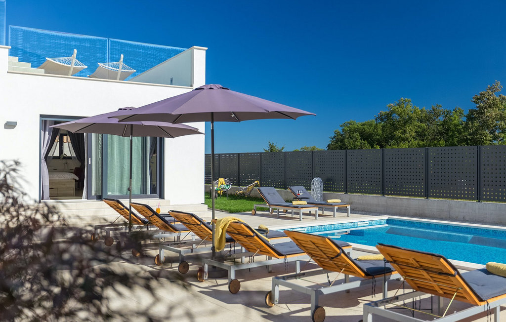 L'élégante Villa Dolcea est une villa de 4 pièces située dans le charmant village de Kastel, à environ 8 km de la mer. La villa est parfaite pour tous ceux qui souhaitent se détendre dans une atmosphère paisible et une nature idyllique. Pouvez-vous vous imaginer en train de vous détendre sur les confortables chaises longues à côté de la piscine ? Le rez-de-chaussée se compose d'un salon à la décoration moderne, de deux chambres confortables avec des lits doubles et d'une cuisine et d'une salle à manger spacieuses et entièrement équipées, toutes deux inondées de lumière. Les deux autres chambres se trouvent à l'étage. Vous pouvez faire le plein de soleil d'Istrie non seulement à côté de la piscine, mais aussi sur la charmante terrasse du premier étage.