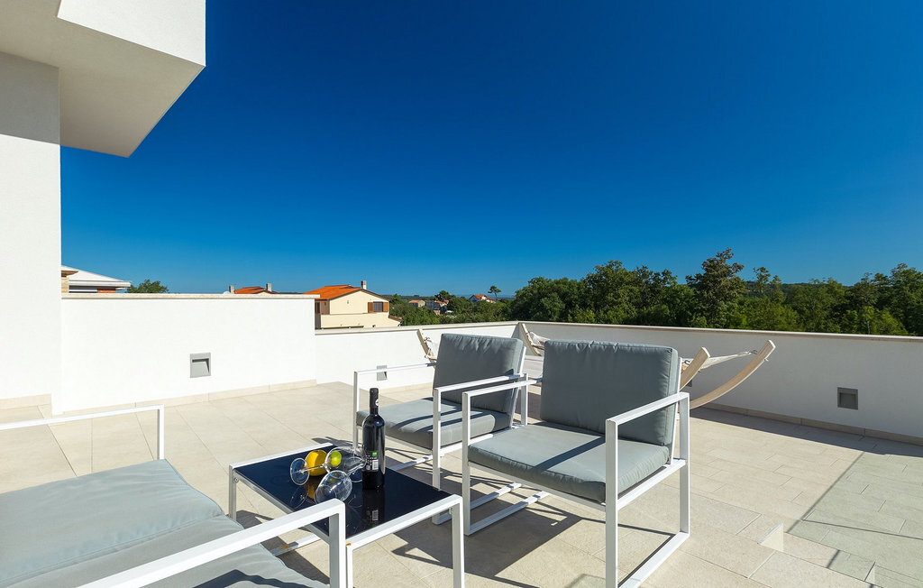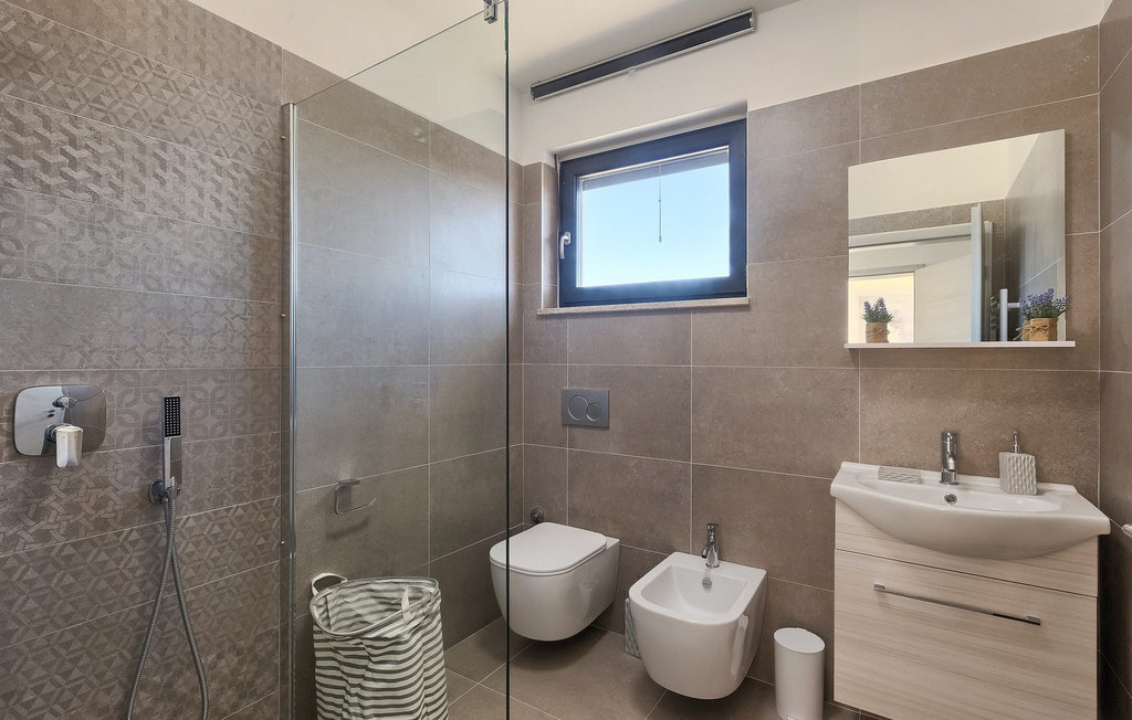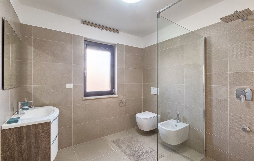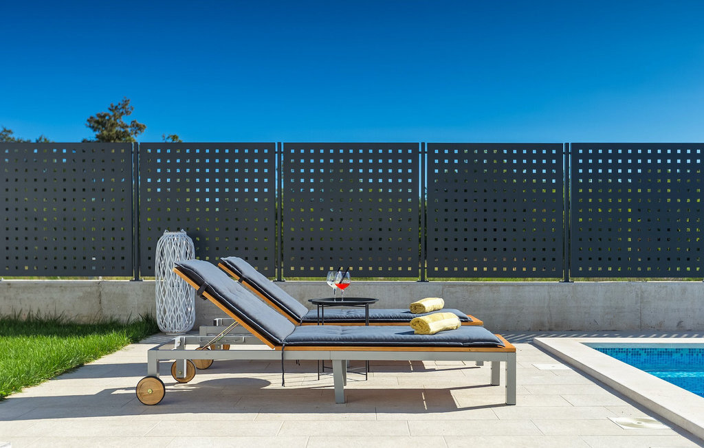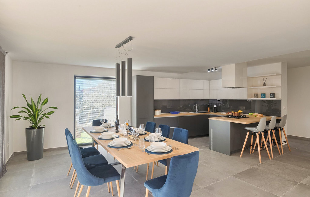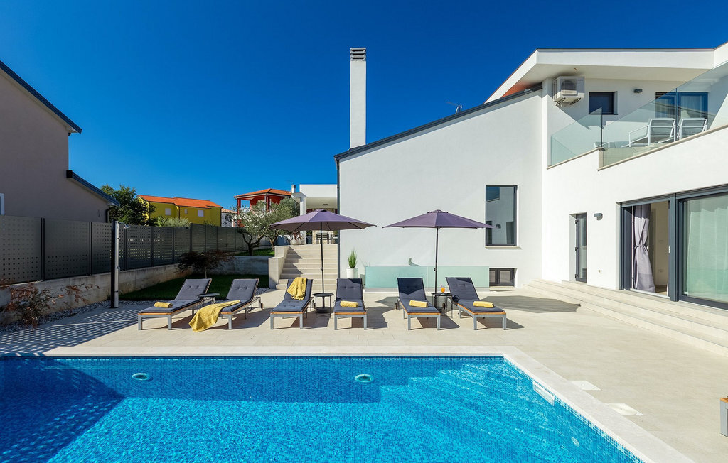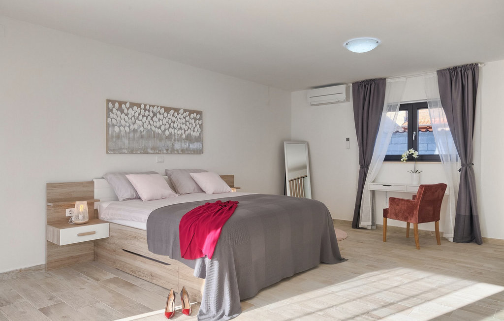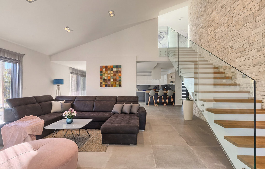 L'élégante Villa Dolcea est une villa de 4 pièces située dans le charmant village de Kastel, à environ 8 km de la mer. La villa est parfaite pour tous ceux qui souhaitent se détendre dans une atmosphère paisible et une nature idyllique. Pouvez-vous vous imaginer en train de vous détendre sur les confortables chaises longues à côté de la piscine ? Le rez-de-chaussée se compose d'un salon à la décoration moderne, de deux chambres confortables avec des lits doubles et d'une cuisine et d'une salle à manger spacieuses et entièrement équipées, toutes deux inondées de lumière. Les deux autres chambres se trouvent à l'étage. Vous pouvez faire le plein de soleil d'Istrie non seulement à côté de la piscine, mais aussi sur la charmante terrasse du premier étage.