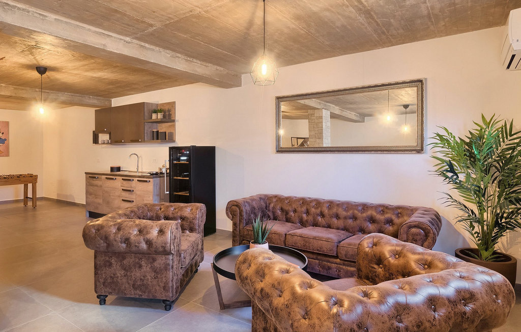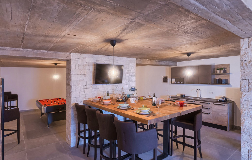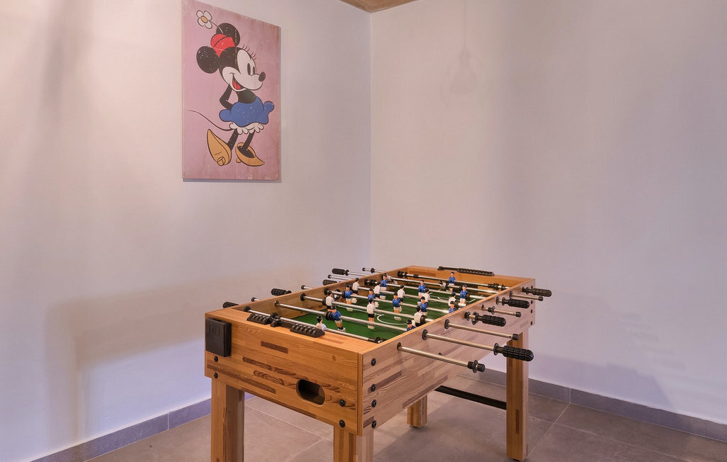 Dans la villa, vous trouverez une salle de divertissement et une cuisine supplémentaire où vous pourrez préparer de délicieux repas pour votre famille et vos amis. Les plus joueurs d'entre vous, qui ne veulent pas se détendre toute la journée à côté de la piscine, peuvent jouer aux fléchettes, au billard sur la table de billard professionnelle ou faire une partie de baby-foot. La villa est entièrement climatisée. Chaque chambre dispose d'une télévision et d'une salle de bain privée.