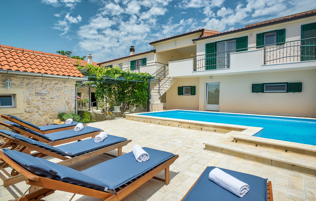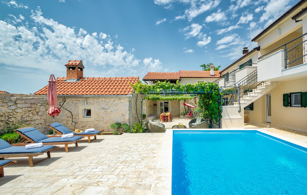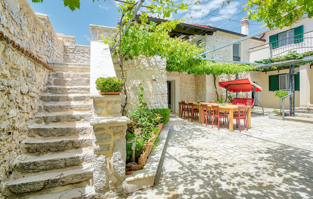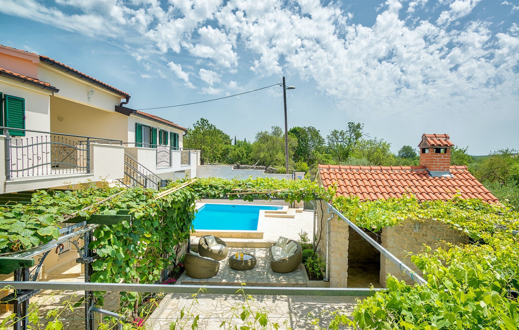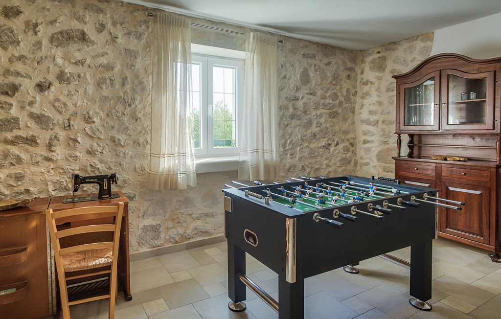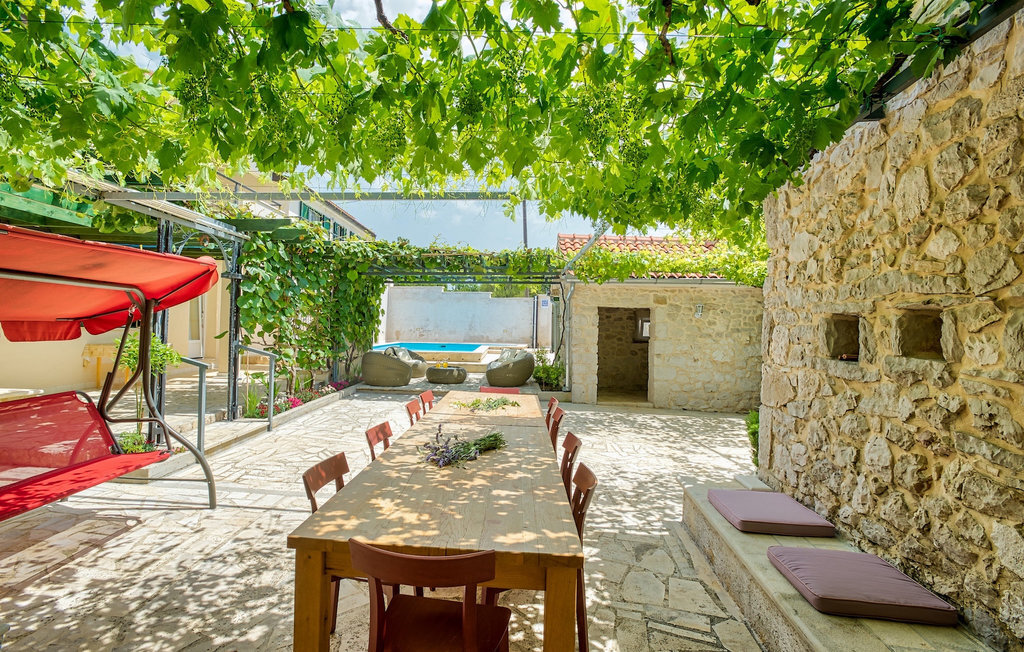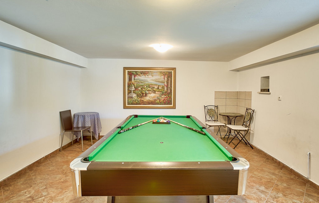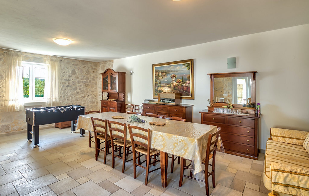 Vous rêvez d'une villa spacieuse sur un grand terrain entouré d'oliviers et d'un jardin bien entretenu avec beaucoup d'ombre naturelle, beaucoup d'espace pour se détendre dans le jardin et autour de la piscine, ainsi que beaucoup d'espace pour manger en plein air ? Profitez de l'espace extérieur où vous pouvez préparer des grillades pendant que d'autres cherchent à se rafraîchir dans la piscine accueillante ou à prendre le soleil sur les chaises longues. La Villa Torine, située dans le village de Zapuzane, dans les environs de Zadar, vous attend ! La villa Torine s'étend sur deux étages avec 7 chambres à coucher, toutes avec salle de bain privée, et peut accueillir jusqu'à 14 personnes. Deux chambres à coucher se trouvent au rez-de-chaussée, où vous trouverez également une salle de divertissement (avec table de billard), une cuisine et un grand salon relié à la salle à manger. Vous pourrez y passer de bons moments ensemble. Les 5 autres chambres se trouvent au premier étage avec des salles de bains privées et la sortie sur deux grandes terrasses qui offrent une vue tranquille sur les environs verdoyants. Pendant que vous vous prélassez au soleil à côté de la piscine, vous profiterez certainement de l'espace extérieur verdoyant. Le jardin vous enchantera avec ses nombreuses fleurs, ses plantes méditerranéennes et ses herbes aromatiques. Dans la large deuxième partie du jardin, en face de l'entrée de la villa, se trouve une charmante pergola, l'endroit idéal pour déguster un verre de Plavac dalmate. Détendez-vous pendant vos vacances en Dalmatie dans cette villa authentique restaurée à seulement 14 km de la mer.Cette charmante villa se trouve dans le petit village de Zapuzane près de Benkovac et à proximité de grandes villes touristiques comme Zadar (à environ 40 km). C'est un bon point de départ si vous souhaitez admirer la belle nature des îles (par ex. Pasman, Ugljan, Iz). Visitez les îles voisines et profitez des baies isolées, de la mer cristalline et du parfum naturel des pins. À seulement 14 km de la villa se trouve également le lac Vrana, connu pour sa nature magnifique. Découvrez un lac en bord de mer, entouré de montagnes. Vous pouvez y faire des randonnées, du vélo ou une excursion en camping. Si vous êtes en voiture, cela vaut la peine de visiter Zadar et l'ancien forum avec l'église Saint-Donat (datant du 9e siècle).