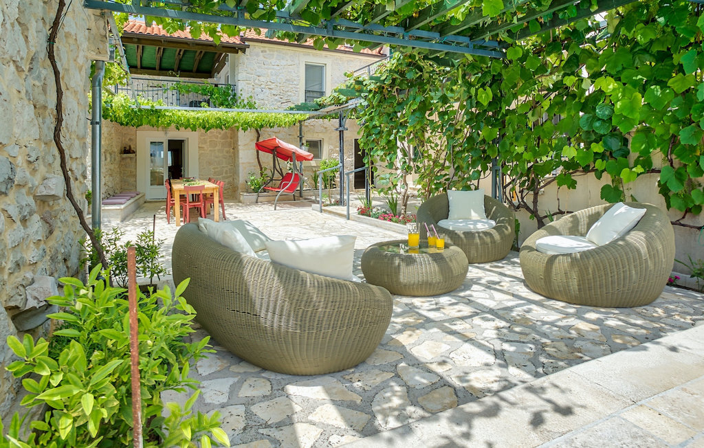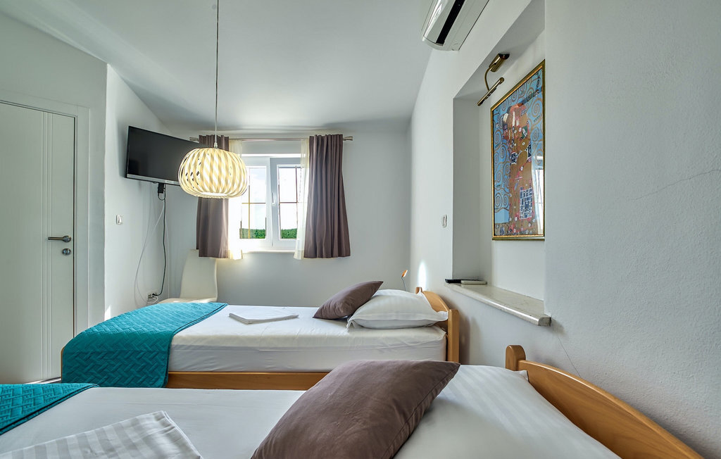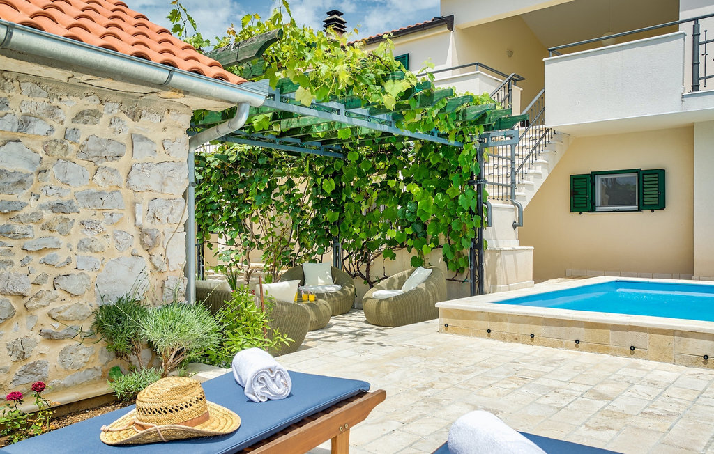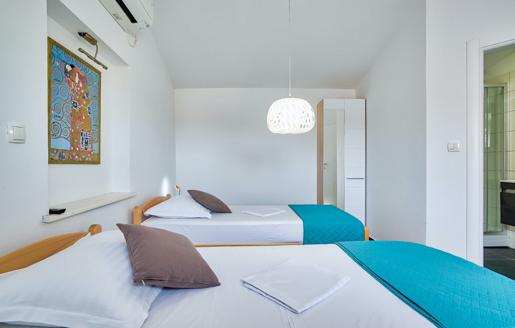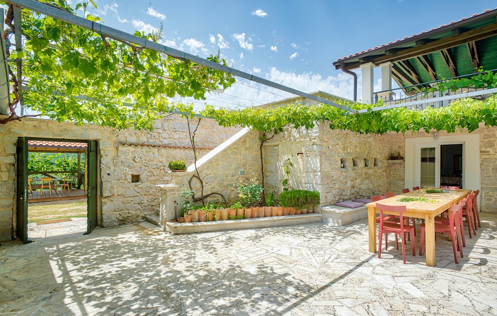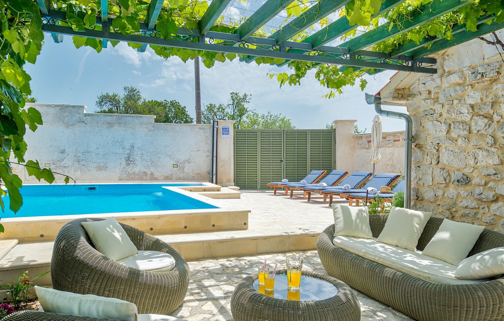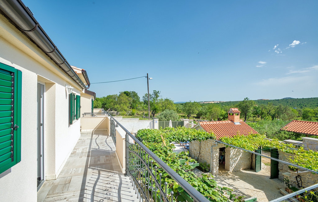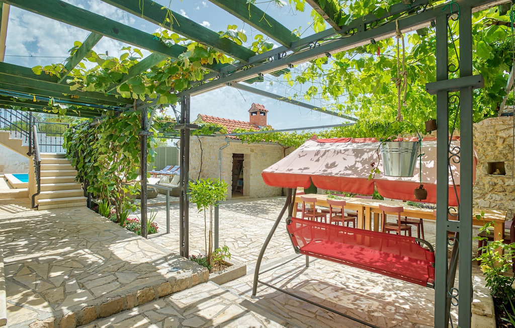 Vous rêvez d'une villa spacieuse sur un grand terrain entouré d'oliviers et d'un jardin bien entretenu avec beaucoup d'ombre naturelle, beaucoup d'espace pour se détendre dans le jardin et autour de la piscine, ainsi que beaucoup d'espace pour manger en plein air ? Profitez de l'espace extérieur où vous pouvez préparer des grillades pendant que d'autres cherchent à se rafraîchir dans la piscine accueillante ou à prendre le soleil sur les chaises longues. La Villa Torine, située dans le village de Zapuzane, dans les environs de Zadar, vous attend ! La villa Torine s'étend sur deux étages avec 7 chambres à coucher, toutes avec salle de bain privée, et peut accueillir jusqu'à 14 personnes. Deux chambres à coucher se trouvent au rez-de-chaussée, où vous trouverez également une salle de divertissement (avec table de billard), une cuisine et un grand salon relié à la salle à manger. Vous pourrez y passer de bons moments ensemble. Les 5 autres chambres se trouvent au premier étage avec des salles de bains privées et la sortie sur deux grandes terrasses qui offrent une vue tranquille sur les environs verdoyants. Pendant que vous vous prélassez au soleil à côté de la piscine, vous profiterez certainement de l'espace extérieur verdoyant. Le jardin vous enchantera avec ses nombreuses fleurs, ses plantes méditerranéennes et ses herbes aromatiques. Dans la large deuxième partie du jardin, en face de l'entrée de la villa, se trouve une charmante pergola, l'endroit idéal pour déguster un verre de Plavac dalmate. Détendez-vous pendant vos vacances en Dalmatie dans cette villa authentique restaurée à seulement 14 km de la mer.Cette charmante villa se trouve dans le petit village de Zapuzane près de Benkovac et à proximité de grandes villes touristiques comme Zadar (à environ 40 km). C'est un bon point de départ si vous souhaitez admirer la belle nature des îles (par ex. Pasman, Ugljan, Iz). Visitez les îles voisines et profitez des baies isolées, de la mer cristalline et du parfum naturel des pins. À seulement 14 km de la villa se trouve également le lac Vrana, connu pour sa nature magnifique. Découvrez un lac en bord de mer, entouré de montagnes. Vous pouvez y faire des randonnées, du vélo ou une excursion en camping. Si vous êtes en voiture, cela vaut la peine de visiter Zadar et l'ancien forum avec l'église Saint-Donat (datant du 9e siècle).