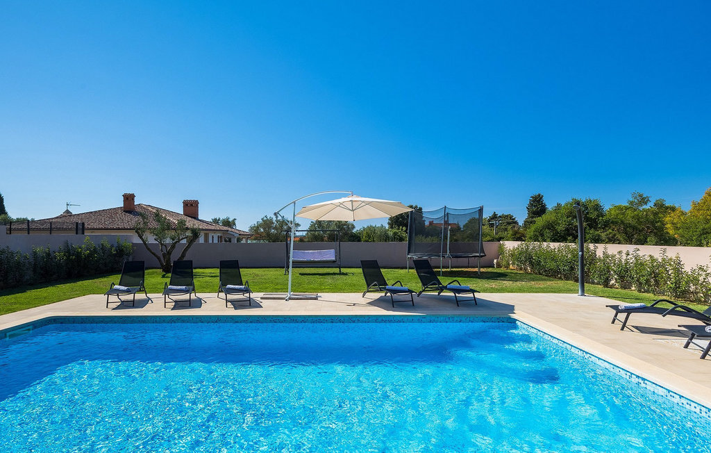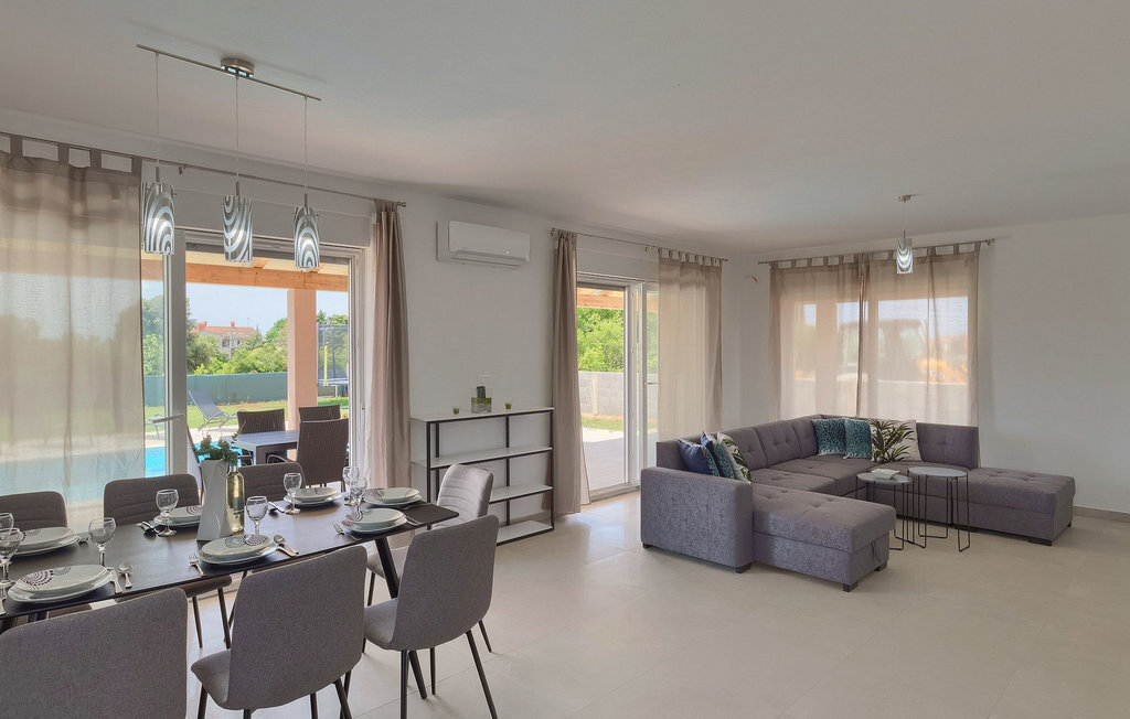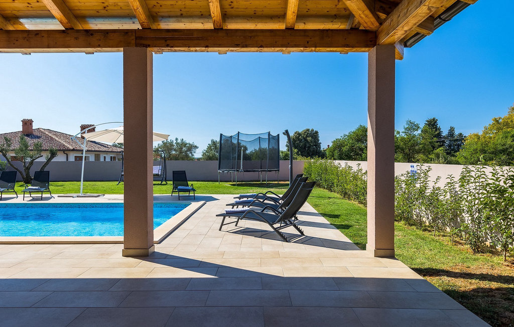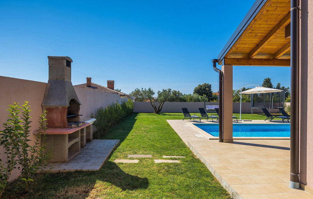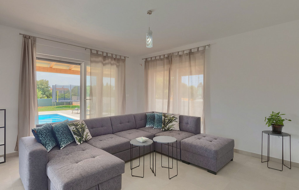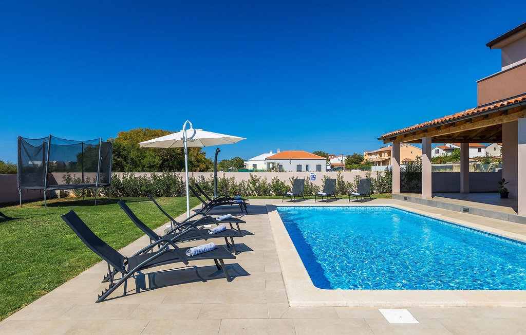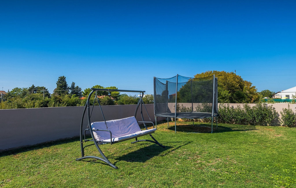 En été, vous apprécierez certainement le magnifique espace extérieur. Rafraîchissez-vous dans la piscine et profitez ensuite des chauds rayons du soleil sur l'une des chaises longues. Vos enfants seront ravis d'apprendre qu'il y a un trampoline dans le jardin. Depuis les chaises longues, vous pouvez facilement garder un œil sur vos enfants pendant qu'ils jouent sur le trampolineL'emplacement de cette villa est vraiment pratique - à quelques kilomètres seulement de la plage la plus proche et à proximité des villes de Pula et Medulin. En même temps, la villa se trouve dans un quartier relativement calme. Pula est le plus grand port et le centre touristique de la péninsule d'Istrie. Pula est riche en culture, en tradition et en nature magnifique et offre toutes sortes d'activités de loisirs, notamment des installations sportives, des restaurants ainsi que des excursions organisées. L'emblème de cette ville est définitivement l'arène de la ville, vieille de vingt siècles, où se déroulaient des combats de gladiateurs et des spectacles de chasse à l'époque romaine. Aujourd'hui, il s'agit du sixième plus grand amphithéâtre du monde. Pula offre de superbes possibilités pour les vacances. Outre la ville seule, il faut absolument visiter les environs - le paysage vert et luxuriant de l'Istrie du Sud, la beauté des plages environnantes, le parc naturel de Kamenjak ou le parc national de Brioni.