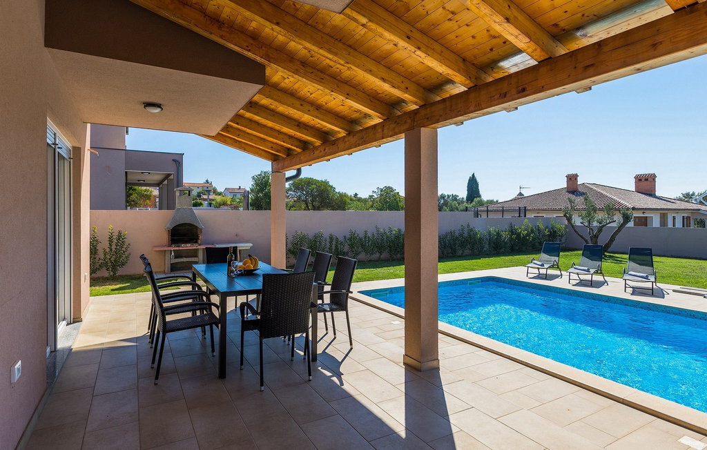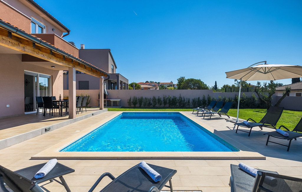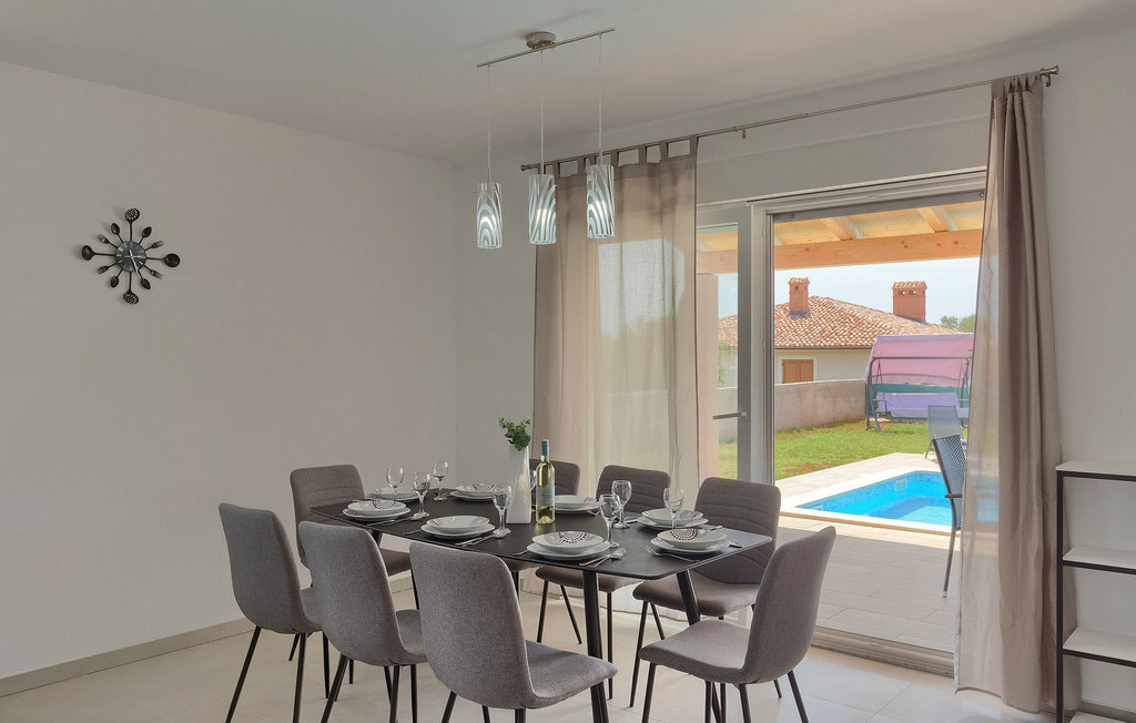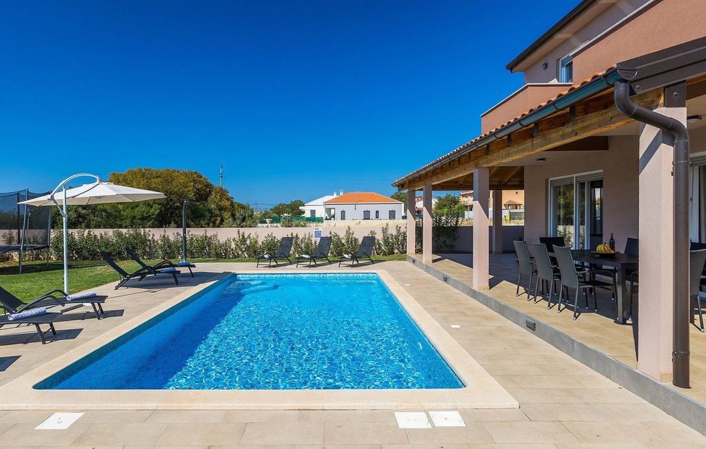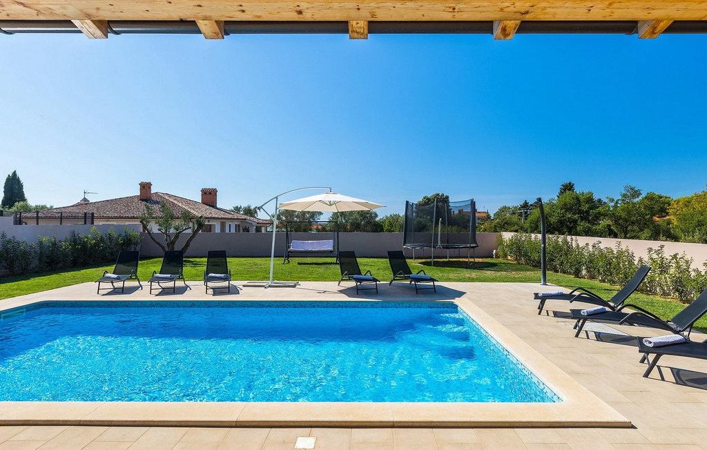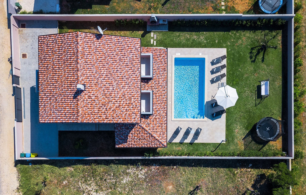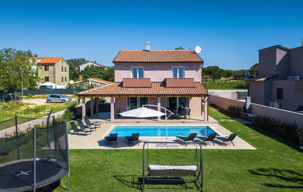 En été, vous apprécierez certainement le magnifique espace extérieur. Rafraîchissez-vous dans la piscine et profitez ensuite des chauds rayons du soleil sur l'une des chaises longues. Vos enfants seront ravis d'apprendre qu'il y a un trampoline dans le jardin. Depuis les chaises longues, vous pouvez facilement garder un œil sur vos enfants pendant qu'ils jouent sur le trampolineL'emplacement de cette villa est vraiment pratique - à quelques kilomètres seulement de la plage la plus proche et à proximité des villes de Pula et Medulin. En même temps, la villa se trouve dans un quartier relativement calme. Pula est le plus grand port et le centre touristique de la péninsule d'Istrie. Pula est riche en culture, en tradition et en nature magnifique et offre toutes sortes d'activités de loisirs, notamment des installations sportives, des restaurants ainsi que des excursions organisées. L'emblème de cette ville est définitivement l'arène de la ville, vieille de vingt siècles, où se déroulaient des combats de gladiateurs et des spectacles de chasse à l'époque romaine. Aujourd'hui, il s'agit du sixième plus grand amphithéâtre du monde. Pula offre de superbes possibilités pour les vacances. Outre la ville seule, il faut absolument visiter les environs - le paysage vert et luxuriant de l'Istrie du Sud, la beauté des plages environnantes, le parc naturel de Kamenjak ou le parc national de Brioni.