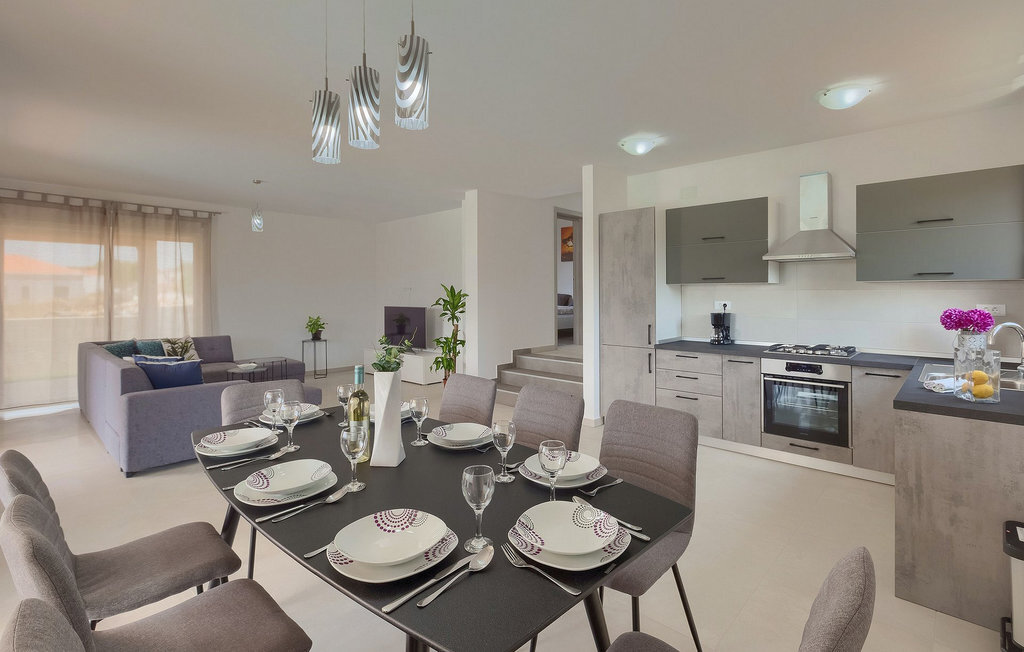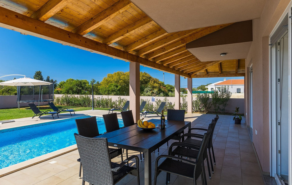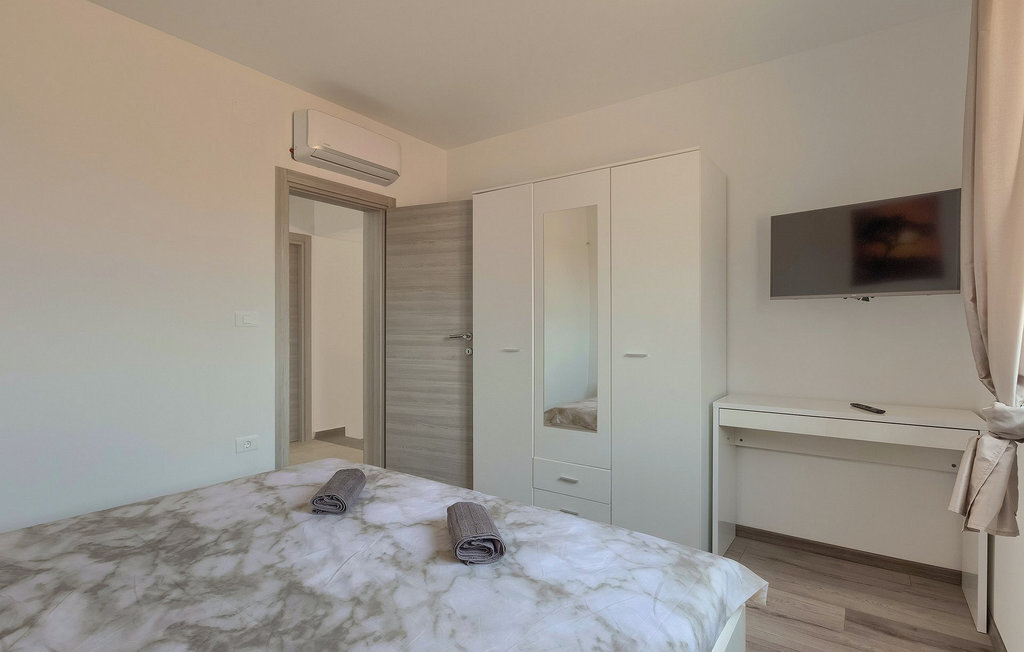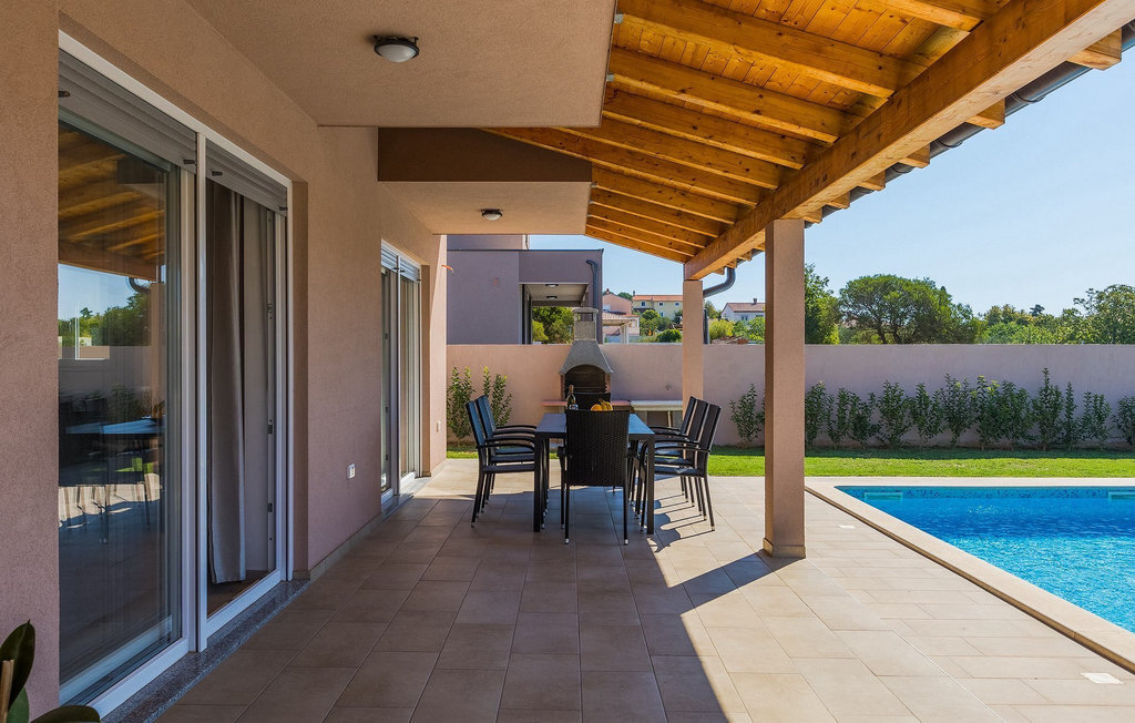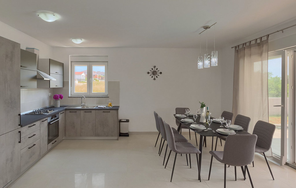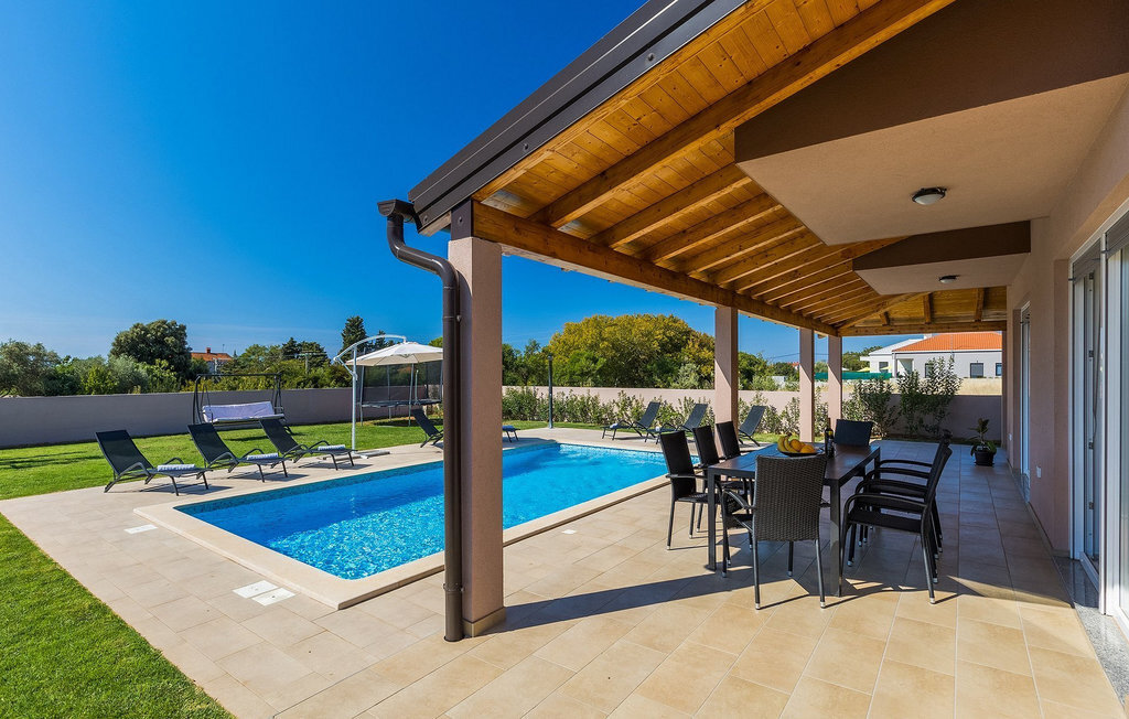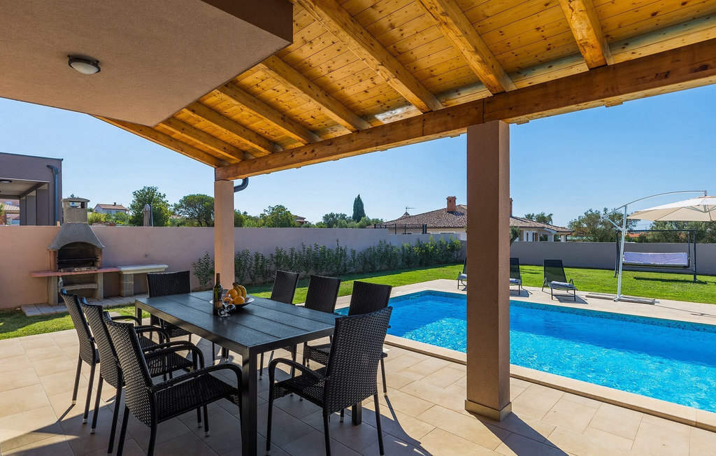 En été, vous apprécierez certainement le magnifique espace extérieur. Rafraîchissez-vous dans la piscine et profitez ensuite des chauds rayons du soleil sur l'une des chaises longues. Vos enfants seront ravis d'apprendre qu'il y a un trampoline dans le jardin. Depuis les chaises longues, vous pouvez facilement garder un œil sur vos enfants pendant qu'ils jouent sur le trampolineL'emplacement de cette villa est vraiment pratique - à quelques kilomètres seulement de la plage la plus proche et à proximité des villes de Pula et Medulin. En même temps, la villa se trouve dans un quartier relativement calme. Pula est le plus grand port et le centre touristique de la péninsule d'Istrie. Pula est riche en culture, en tradition et en nature magnifique et offre toutes sortes d'activités de loisirs, notamment des installations sportives, des restaurants ainsi que des excursions organisées. L'emblème de cette ville est définitivement l'arène de la ville, vieille de vingt siècles, où se déroulaient des combats de gladiateurs et des spectacles de chasse à l'époque romaine. Aujourd'hui, il s'agit du sixième plus grand amphithéâtre du monde. Pula offre de superbes possibilités pour les vacances. Outre la ville seule, il faut absolument visiter les environs - le paysage vert et luxuriant de l'Istrie du Sud, la beauté des plages environnantes, le parc naturel de Kamenjak ou le parc national de Brioni.
