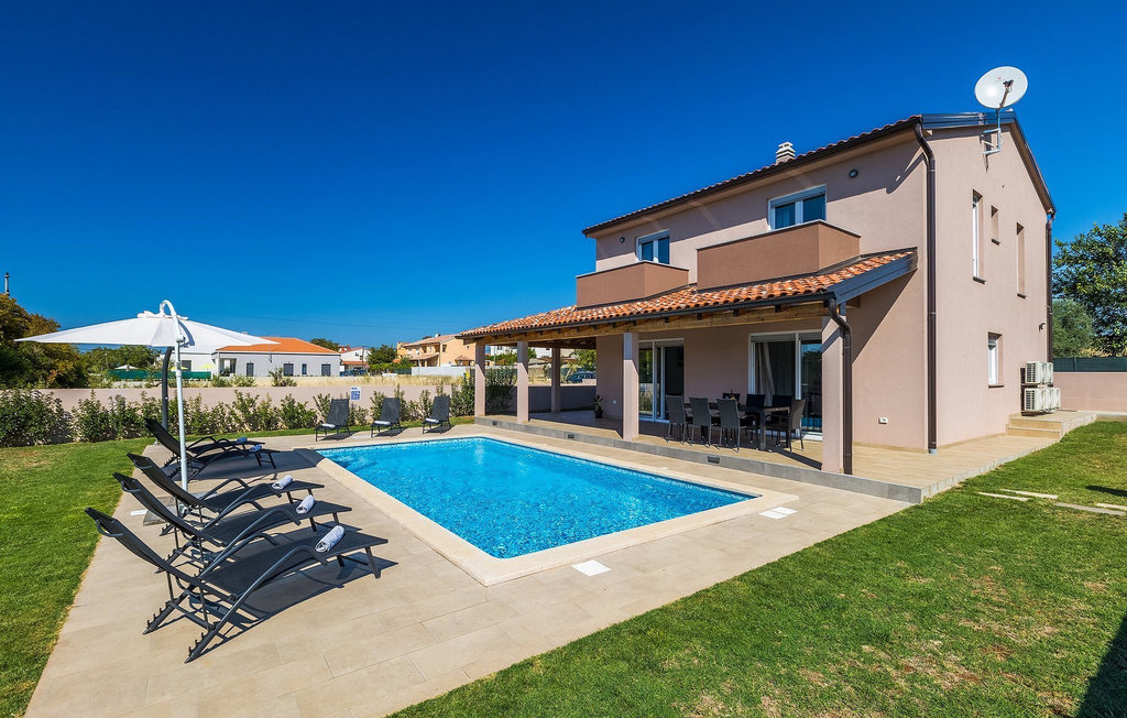 La magnifique villa Enjoy avec piscine privée se trouve dans le sud de l'Istrie, à proximité des villes de Pula et Medulin. Elle peut accueillir jusqu'à 8 hôtes dans 4 chambres à coucher. Découvrez Pula et ses environs et passez de merveilleuses vacances avec vos proches dans cette magnifique villa.