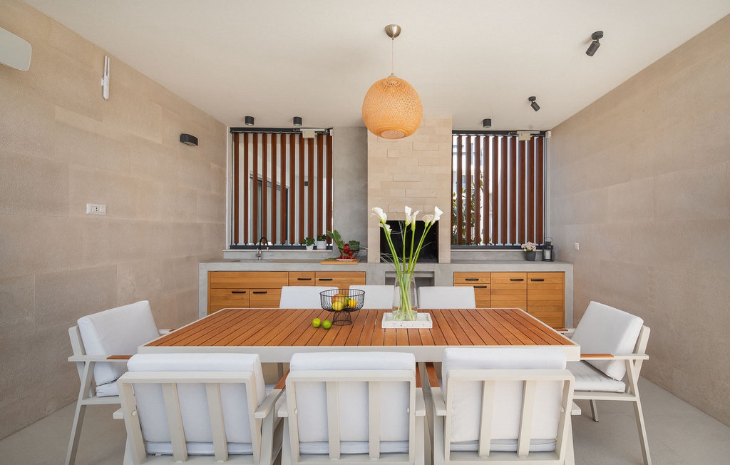 Des détails en bois et des accents de couleur accompagnent la décoration de cette villa, notamment le plan ouvert du rez-de-chaussée avec le salon, la cuisine et la salle à manger. Depuis le salon, il y a également une sortie directe sur la terrasse extérieure. Les familles avec enfants seront également ravies de l'option d'une chambre à coucher au rez-de-chaussée, qui offre encore plus de confort. Il est important de noter que dans cette villa, même trois chambres disposent d'une salle de bain privée, pour un confort maximal pendant votre séjour, une salle de bain séparée et deux autres toilettes étant également disponibles.