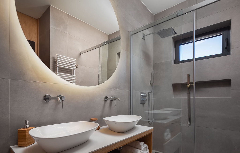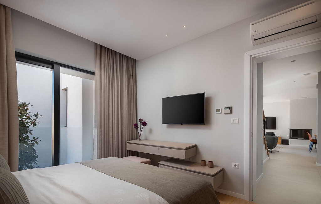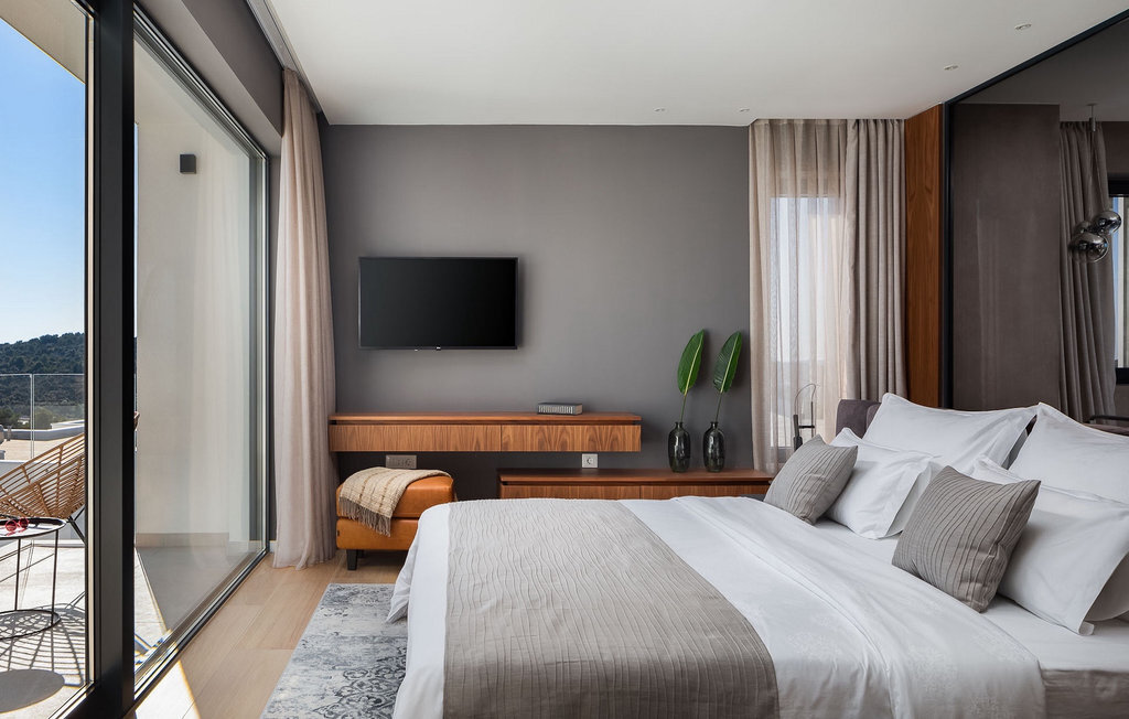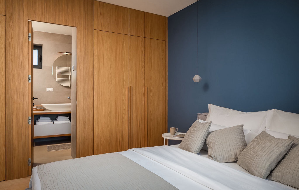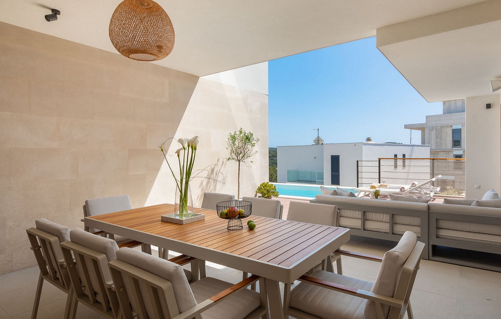 Cette villa vous séduira par son agencement, car au premier étage se trouve un autre salon aménagé avec goût, avec une cuisine moderne et un îlot, parfait pour prendre le petit-déjeuner. Ici aussi, il y a un accès direct à la terrasse avec meubles de jardin, idéale pour prendre un verre au coucher du soleil. Les trois autres chambres à coucher se trouvent au premier étage, avec même un balcon privé. Mais la chambre principale est un plaisir particulier avec son aménagement unique, sa grande salle de bains et sa vue à couper le souffle.