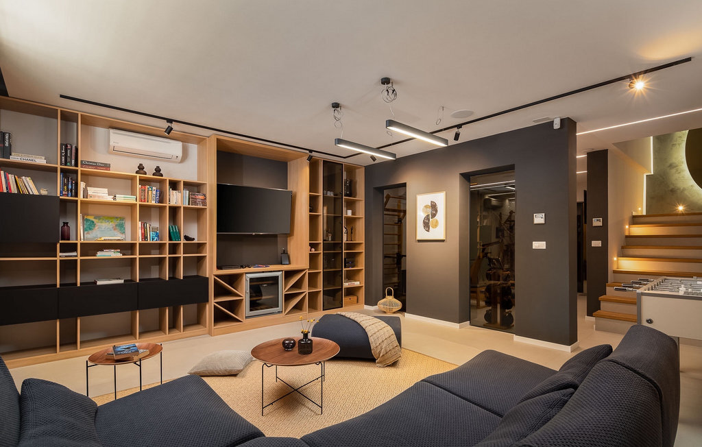 La particularité n'a pas de limites ici, car au sous-sol également, vous trouverez de nombreuses activités comme une salle de jeux et une salle de fitness. Et pour une détente de haut niveau, comme un séjour dans un hôtel bien-être, profitez de la salle de spa avec sauna et jacuzzi.
