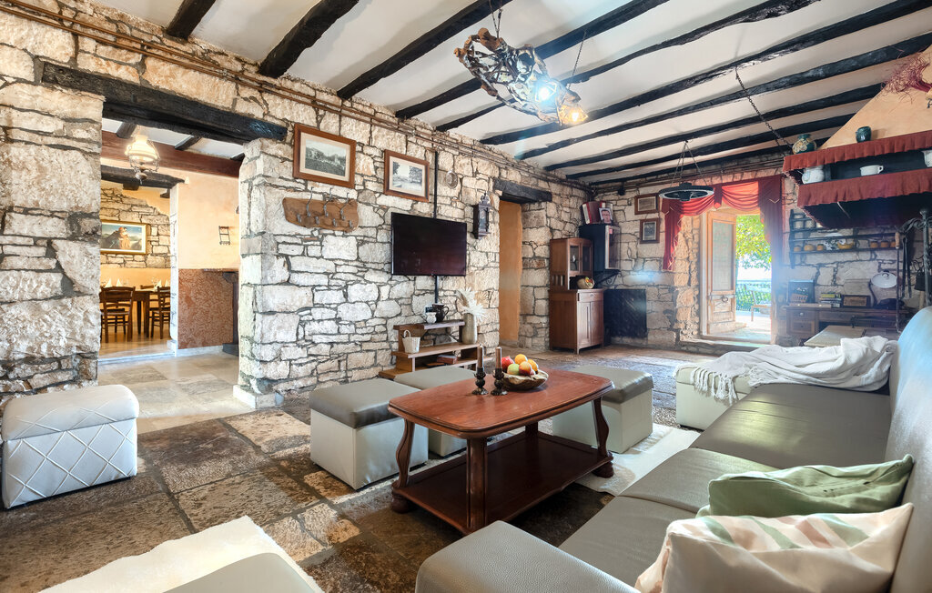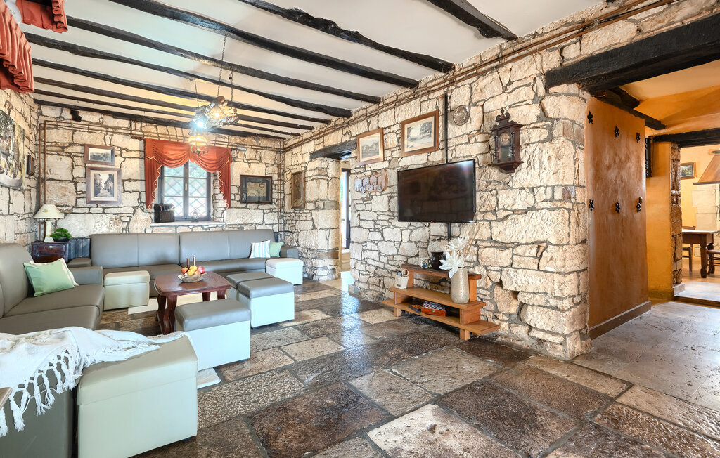 Réunissez vos proches à la Villa Gigi et laissez-vous bercer par la beauté de l'IstrieLa Villa Gigi est située dans le village médiéval de Tinjan, au cœur de l'Istrie, et les commerces et commodités les plus proches sont accessibles à pied. La côte adriatique avec ses plages et ses stations balnéaires comme Porec, Rovinj et Novigrad n'est qu'à 20 minutes de la villa. Il est vivement conseillé de s'offrir une excursion à Pazin pendant son séjour dans l'une de nos villas en Istrie centrale. Pendant des siècles, la ville de Pazin a été l'une des principales forteresses des Habsbourg dans cette région et le quartier général de l'ancien prince de Pazin. Le château médiéval bien conservé abrite aujourd'hui le musée ethnographique d'Istrie et le musée de la ville de Pazin. Une autre visite incontournable est celle de l'église Maria im Fels dans le petit village appelé Beram, mondialement connue pour sa fresque "Danse macabre" datant de 1474. Tous les amoureux de la nature peuvent essayer la tyrolienne près de Pazin, faire un tour en vélo gastronomique et déguster des spécialités istriennes ou simplement se promener dans la nature magnifique.