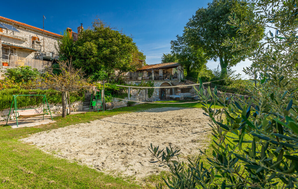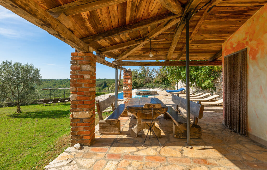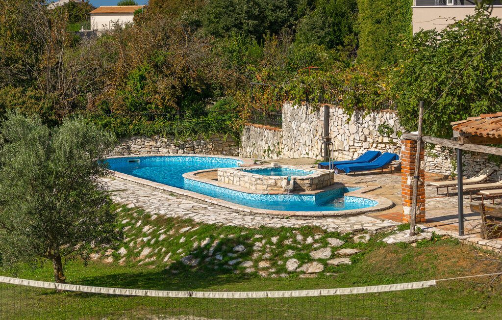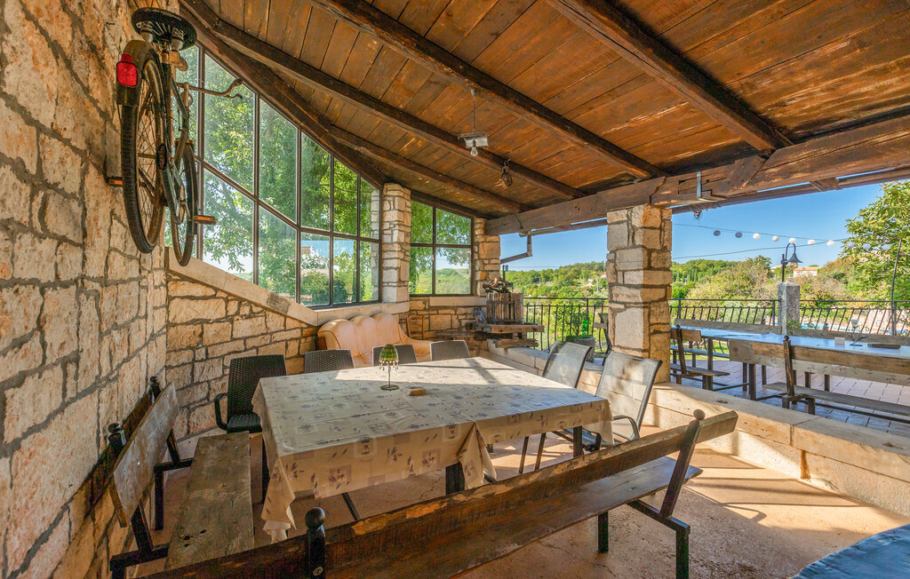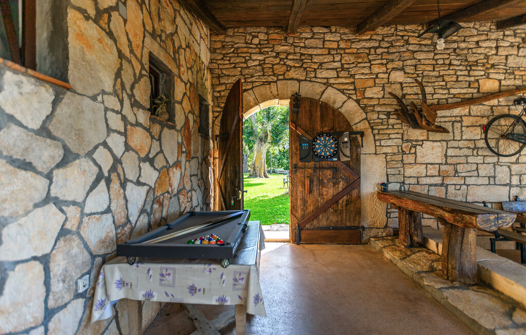 Dans le vaste espace extérieur entourant la Villa Gigi, vous pouvez facilement oublier le stress quotidien et profiter pleinement de la beauté de la nature istrienne. La magnifique piscine de forme inhabituelle située sur la grande terrasse deviendra certainement très vite l'endroit préféré de tout le groupe. Sur la terrasse, vous disposez également d'un coin repas en plein air et d'un magnifique barbecue en pierre. Parfait pour mettre en valeur vos talents de cuisinier et déguster ensemble les plats préparés dans une ambiance conviviale.
