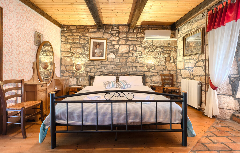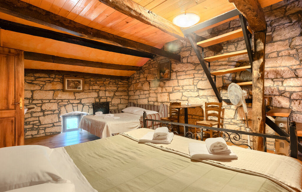 Avec un total de 8 chambres à coucher, la Villa Gigi peut accueillir jusqu'à 19 personnes. Le salon rustique, une salle à manger avec un bar professionnel, une cuisine entièrement équipée et des toilettes se trouvent au rez-de-chaussée de la villa. Dans chaque pièce de cette villa règne une atmosphère domestique, ce qui rendra vos vacances encore plus agréables. Au premier étage se trouve une zone de couchage composée de cinq chambres à coucher avec lit double et chacune une salle de bain privée. Les trois chambres restantes, dont deux avec un lit double et une salle de bain privée, se trouvent au deuxième étage. Depuis l'une des chambres doubles du deuxième étage, on accède à une chambre avec deux lits simples, parfaite pour une famille avec des enfants. Ces deux chambres se partagent une salle de bain en suite.