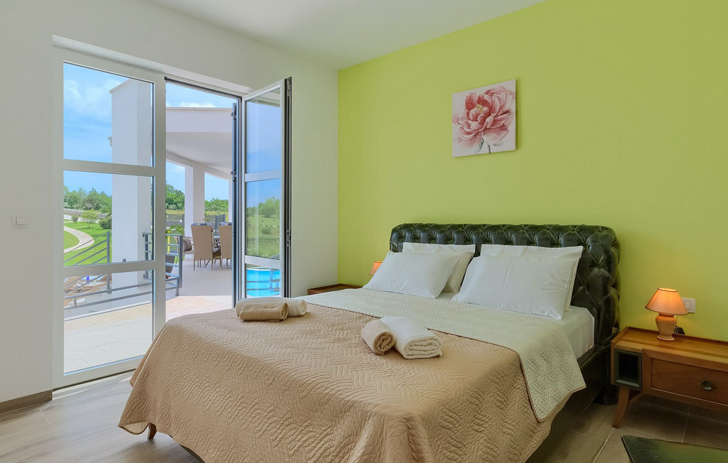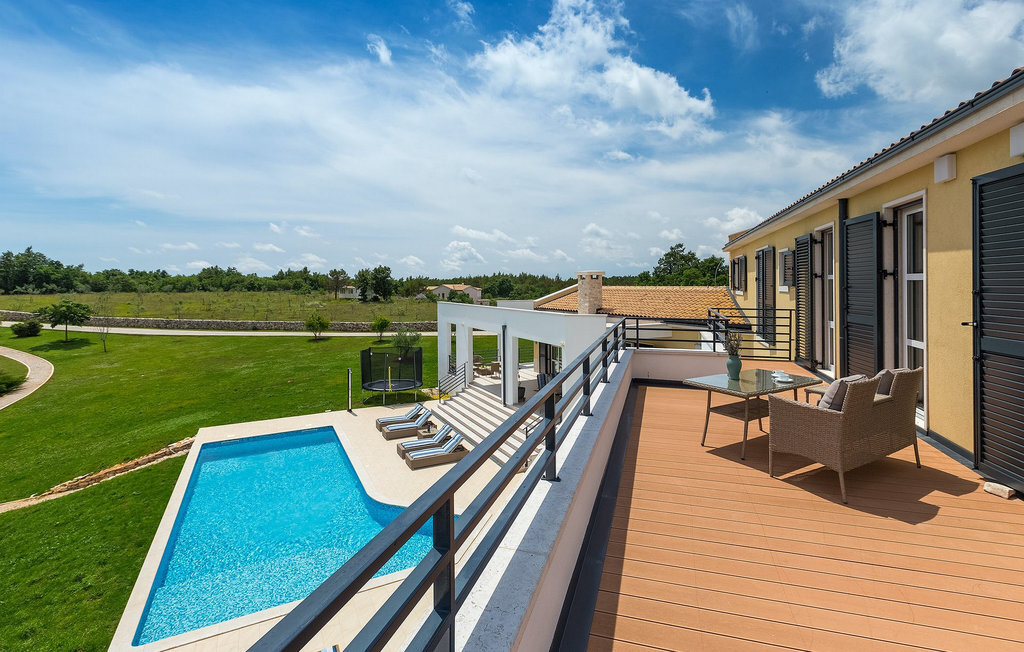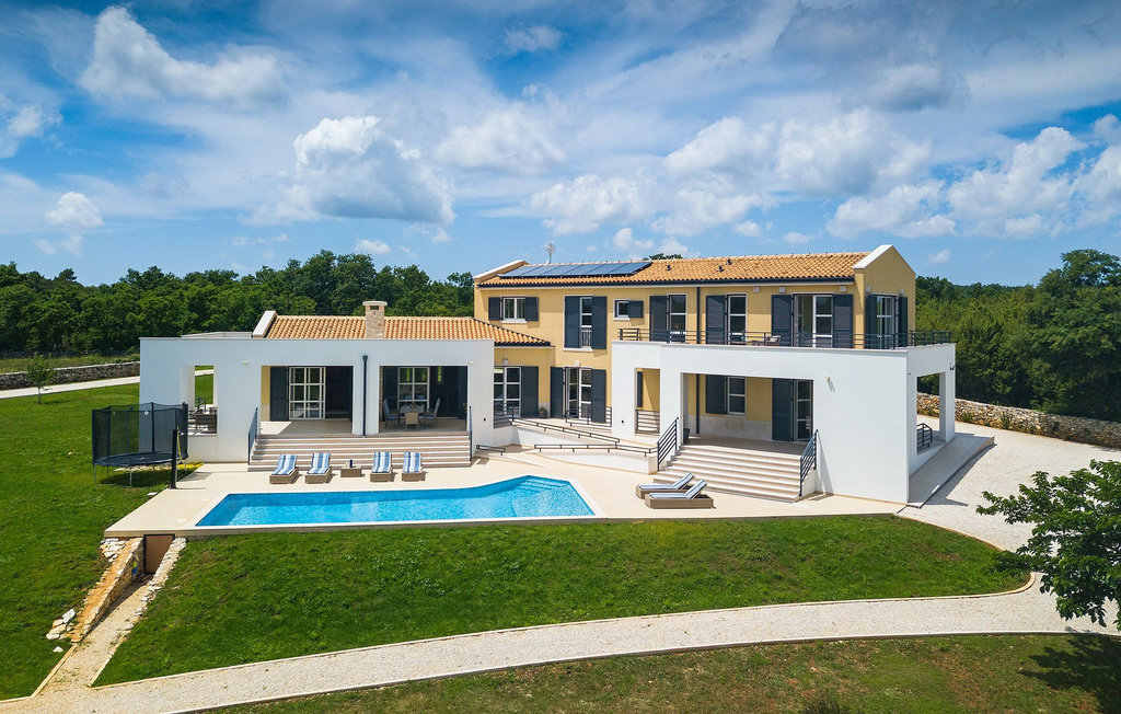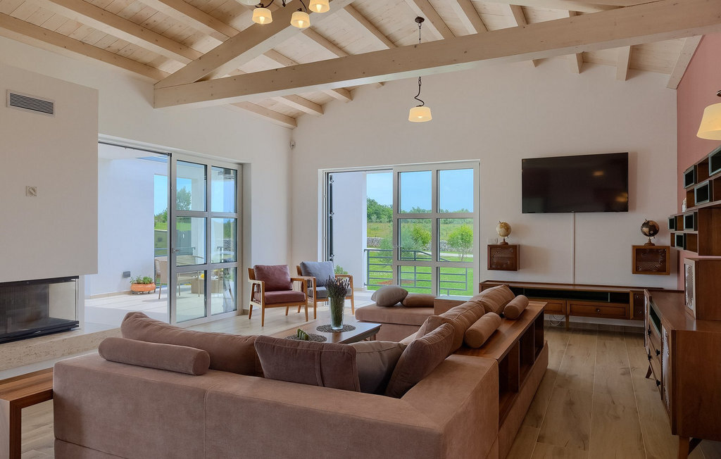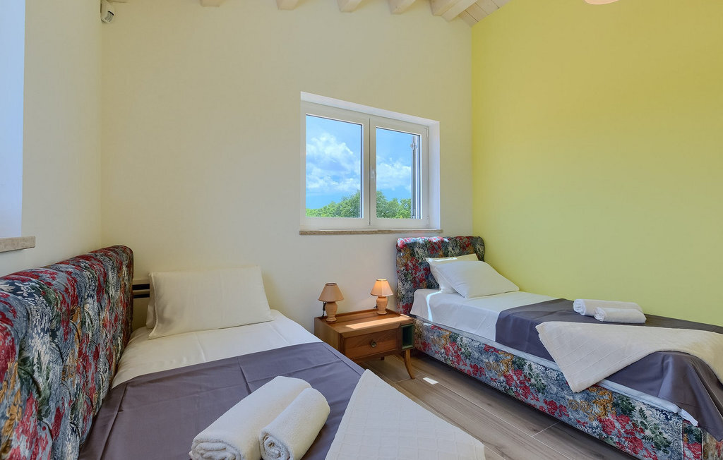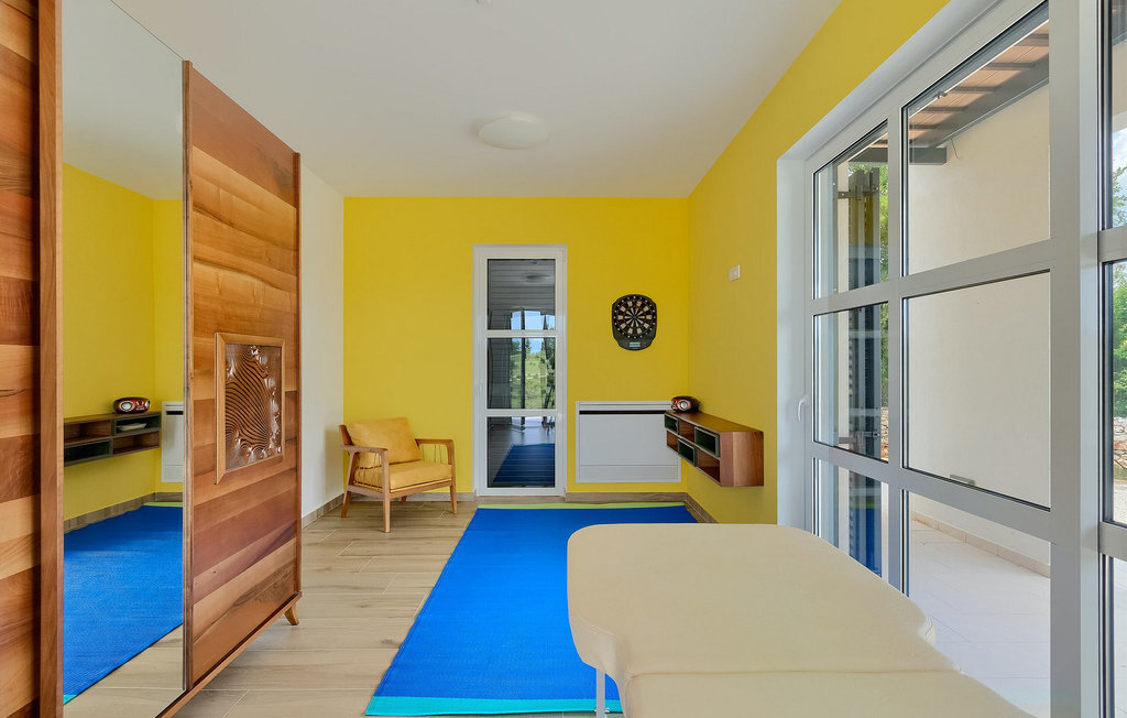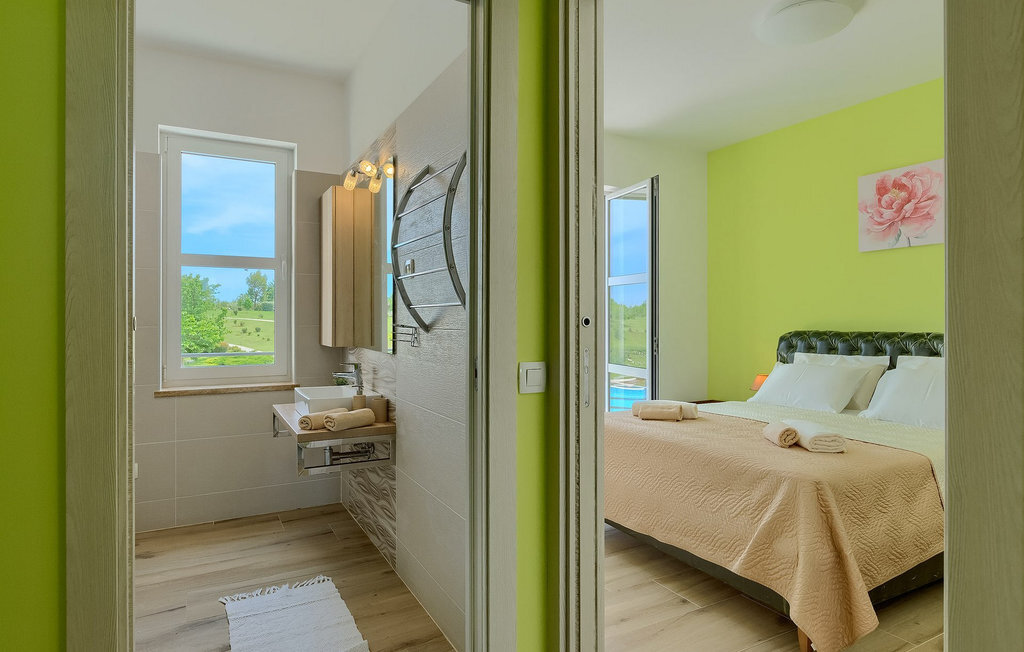 Cette villa vous offre un grand confort. Tout, à l'intérieur comme à l'extérieur, est aménagé selon les principes du feng shui. Le long des jardins de fleurs, des oliviers et de la verdure méditerranéenne, le parc privé de la villa offre de nombreux sentiers de randonnée rien que pour vous - un véritable paradis pour le corps et l'esprit. Pour plus de discrétion, la villa et le parc sont entourés de murs en pierre d'Istrie. La villa peut accueillir jusqu'à dix personnes et dispose de plus de 300 mètres carrés d'espace intérieur ainsi que d'une belle terrasse extérieure où vous pourrez profiter de vos soirées d'été autour d'un agréable repas. La villa est entièrement équipée d'appareils haut de gamme et chaque pièce dispose d'une Smart TV. Au rez-de-chaussée, vous trouverez un salon et une salle à manger ouverts avec une cuisine ainsi qu'une chambre à coucher avec sa propre salle de bain. La cuisine est équipée de tous les appareils nécessaires. Au rez-de-chaussée, il y a également une salle de bain et des toilettes séparées. La salle de bains du rez-de-chaussée est aménagée pour les personnes handicapées. Tout le rez-de-chaussée de la villa est accessible aux personnes en fauteuil roulant et dispose d'une terrasse, d'une piscine et d'un jardin. Au premier étage se trouvent quatre autres chambres, toutes avec salle de bains et terrasse.