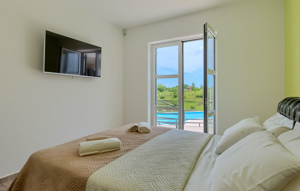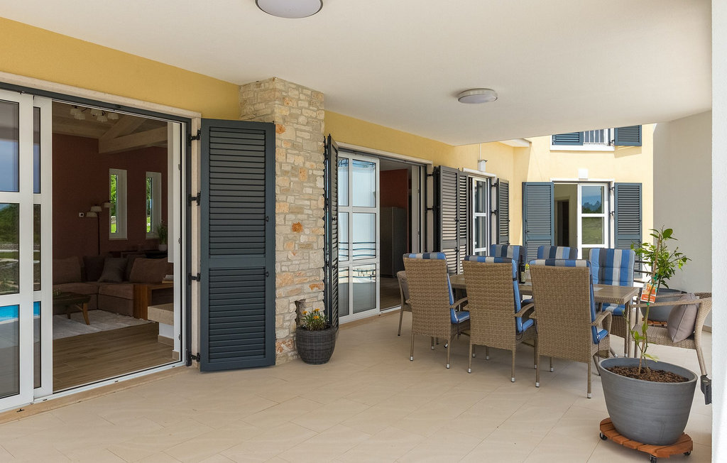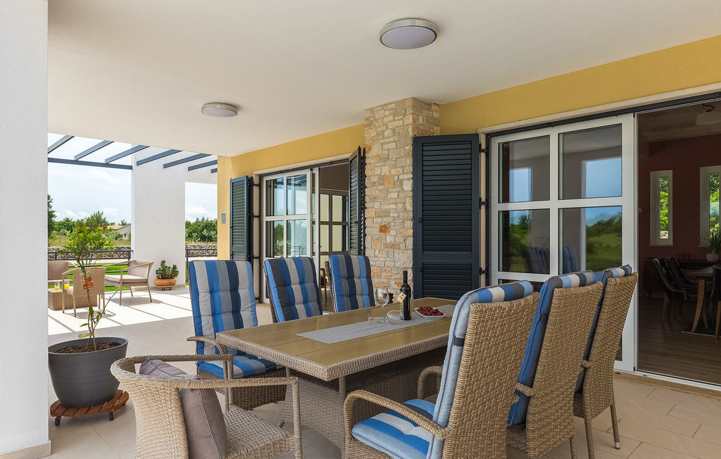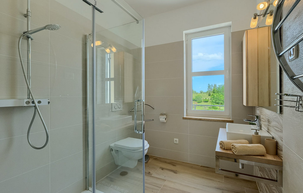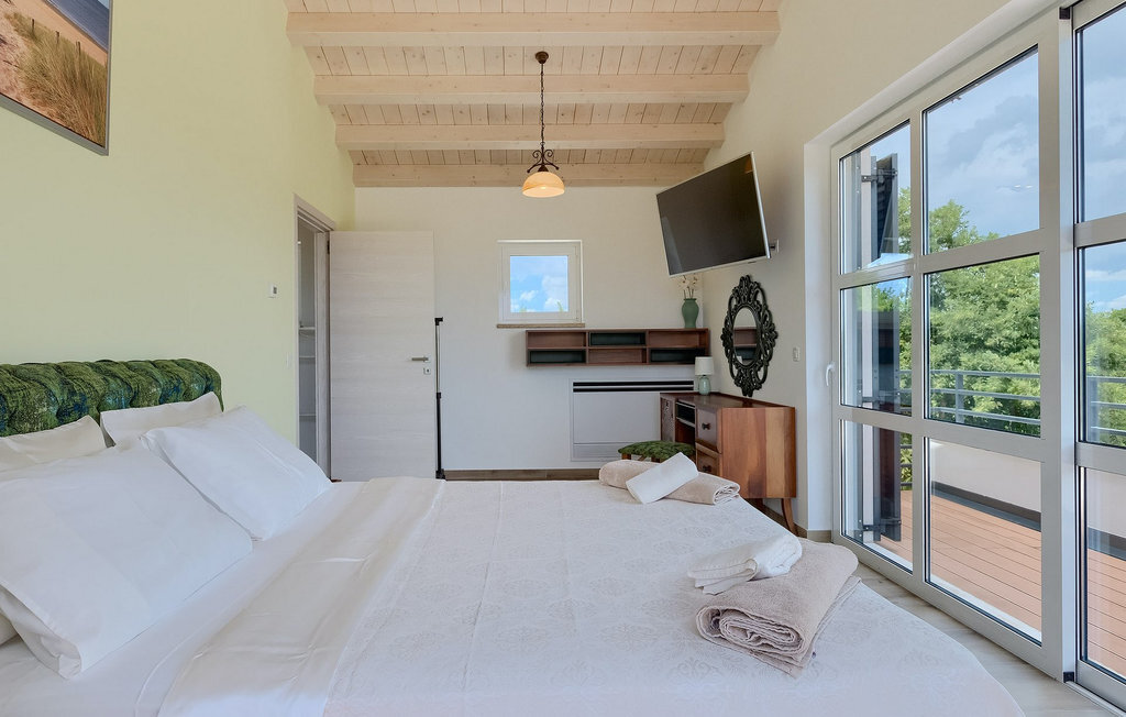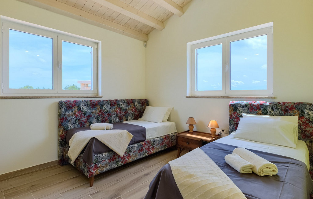 Cette villa vous offre un grand confort. Tout, à l'intérieur comme à l'extérieur, est aménagé selon les principes du feng shui. Le long des jardins de fleurs, des oliviers et de la verdure méditerranéenne, le parc privé de la villa offre de nombreux sentiers de randonnée rien que pour vous - un véritable paradis pour le corps et l'esprit. Pour plus de discrétion, la villa et le parc sont entourés de murs en pierre d'Istrie. La villa peut accueillir jusqu'à dix personnes et dispose de plus de 300 mètres carrés d'espace intérieur ainsi que d'une belle terrasse extérieure où vous pourrez profiter de vos soirées d'été autour d'un agréable repas. La villa est entièrement équipée d'appareils haut de gamme et chaque pièce dispose d'une Smart TV. Au rez-de-chaussée, vous trouverez un salon et une salle à manger ouverts avec une cuisine ainsi qu'une chambre à coucher avec sa propre salle de bain. La cuisine est équipée de tous les appareils nécessaires. Au rez-de-chaussée, il y a également une salle de bain et des toilettes séparées. La salle de bains du rez-de-chaussée est aménagée pour les personnes handicapées. Tout le rez-de-chaussée de la villa est accessible aux personnes en fauteuil roulant et dispose d'une terrasse, d'une piscine et d'un jardin. Au premier étage se trouvent quatre autres chambres, toutes avec salle de bains et terrasse.
