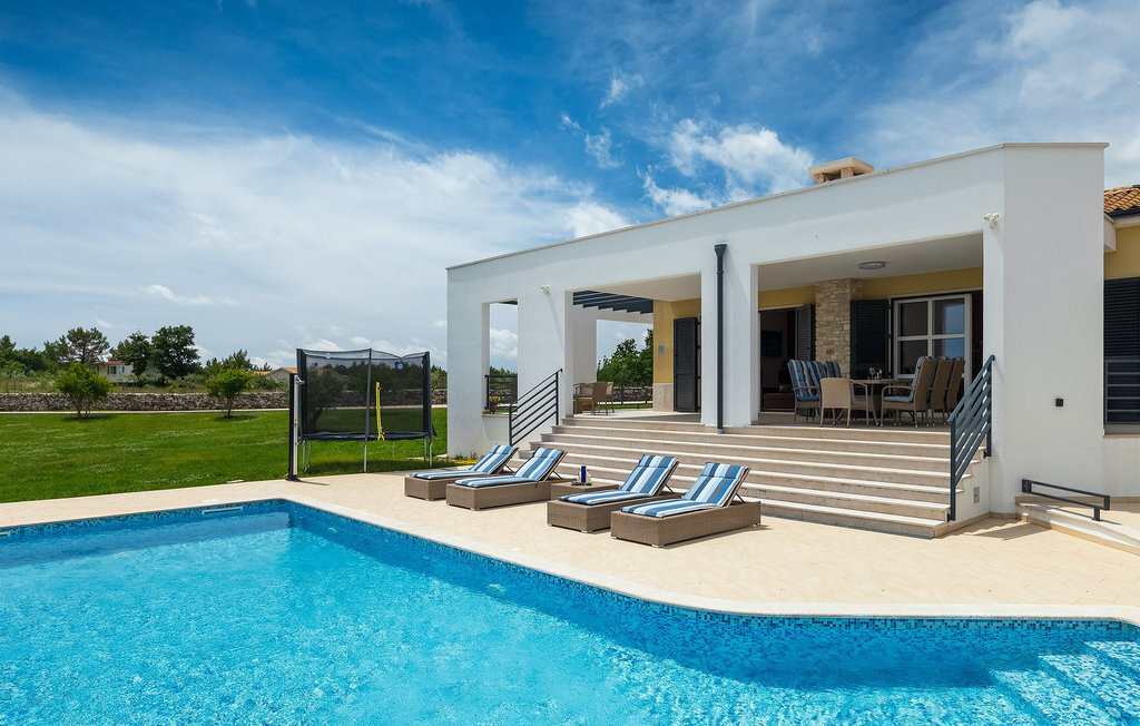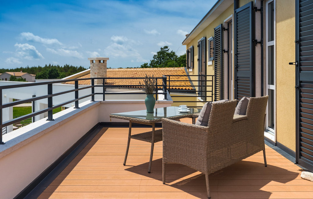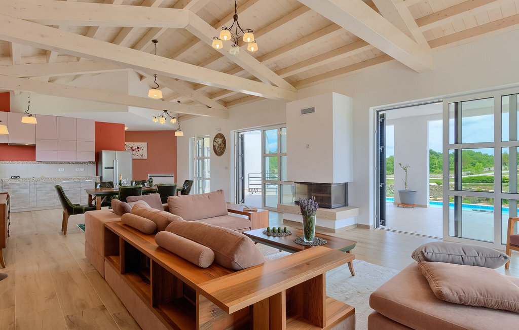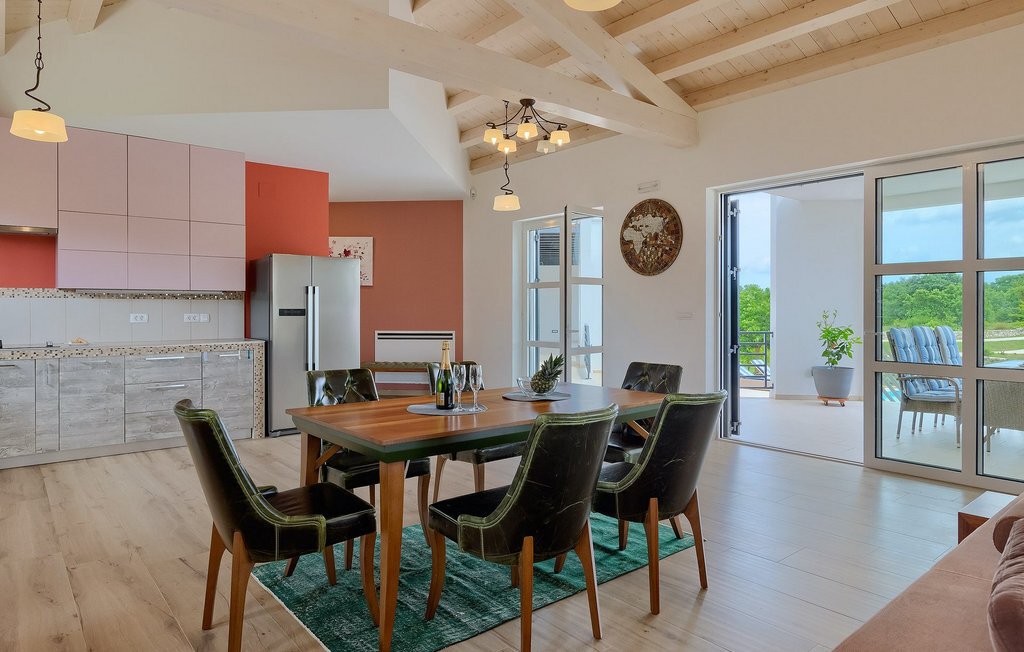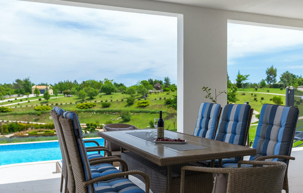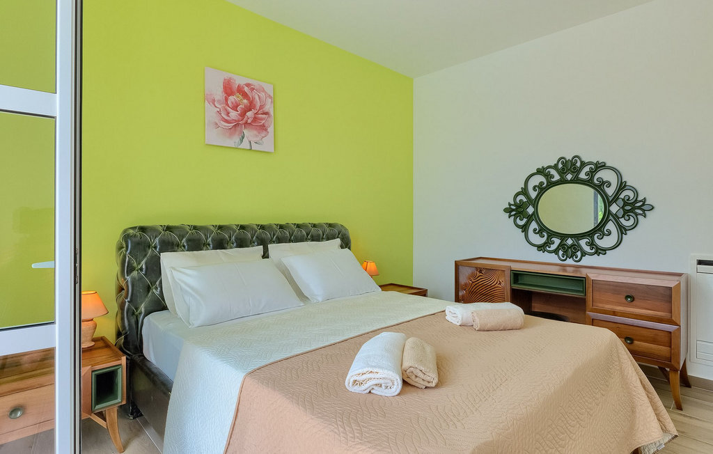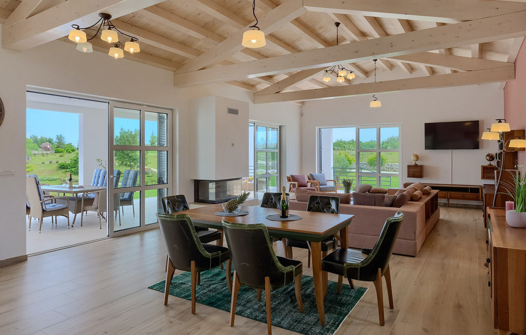 Cette villa vous offre un grand confort. Tout, à l'intérieur comme à l'extérieur, est aménagé selon les principes du feng shui. Le long des jardins de fleurs, des oliviers et de la verdure méditerranéenne, le parc privé de la villa offre de nombreux sentiers de randonnée rien que pour vous - un véritable paradis pour le corps et l'esprit. Pour plus de discrétion, la villa et le parc sont entourés de murs en pierre d'Istrie. La villa peut accueillir jusqu'à dix personnes et dispose de plus de 300 mètres carrés d'espace intérieur ainsi que d'une belle terrasse extérieure où vous pourrez profiter de vos soirées d'été autour d'un agréable repas. La villa est entièrement équipée d'appareils haut de gamme et chaque pièce dispose d'une Smart TV. Au rez-de-chaussée, vous trouverez un salon et une salle à manger ouverts avec une cuisine ainsi qu'une chambre à coucher avec sa propre salle de bain. La cuisine est équipée de tous les appareils nécessaires. Au rez-de-chaussée, il y a également une salle de bain et des toilettes séparées. La salle de bains du rez-de-chaussée est aménagée pour les personnes handicapées. Tout le rez-de-chaussée de la villa est accessible aux personnes en fauteuil roulant et dispose d'une terrasse, d'une piscine et d'un jardin. Au premier étage se trouvent quatre autres chambres, toutes avec salle de bains et terrasse.