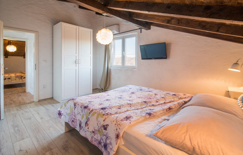 Si vous cherchez l'endroit idéal pour passer des vacances tranquilles en famille, la Villa Garica est faite pour vous. Cette charmante villa sur l'île de Krk, à seulement 5 km de la première plage, respire le charme local accueillant. Devant la villa, une piscine privée est à votre disposition et vous invite à vous rafraîchir lors des chaudes journées d'été. À côté de la piscine, des chaises longues vous attendent pour vous détendre confortablement et lire votre livre préféré après vous être rafraîchi dans la piscine. Quelques pas plus loin se trouve une terrasse couverte avec une table à manger, où vous pourrez profiter des chaudes nuits d'été. Il y a aussi un barbecue pour préparer de bons petits plats et gâter vos proches. L'intérieur est rustique et confortable et offre une atmosphère dans laquelle vous vous sentirez à l'aise. L'intérieur de la villa vous offre un salon spacieux, une salle à manger et une cuisine entièrement équipée au rez-de-chaussée. Au premier étage se trouvent deux chambres à coucher et une salle de bain, ainsi que deux autres chambres à coucher et une autre salle de bain au deuxième étage. Réservez la Villa Garica et passez des vacances reposantes à Kvarner!La Villa Garica est située sur la magnifique île de Krk dans la baie de Kvarner, considérée comme l'une des destinations les plus attrayantes et les plus belles de l'Adriatique. De bonnes liaisons avec le continent, une excellente offre touristique, différentes plages avec de petites baies, une nature magnifique et diverses possibilités de s'amuser et de se détendre font de Krk l'une des destinations touristiques les plus intéressantes de l'Adriatique. La villa est située dans une petite commune de Garica, à seulement 5 km de la plage la plus proche. Certaines des particularités de l'île sont qu'elle compte environ 1400 espèces de plantes et des centaines de kilomètres de sentiers de randonnée et de pistes cyclables. Bien que Krk soit l'île la plus septentrionale de la Méditerranée, elle jouit d'un climat méditerranéen doux. L'île de Krk offre de nombreuses attractions naturelles et culturelles.