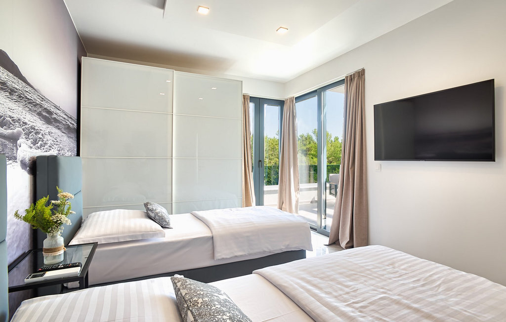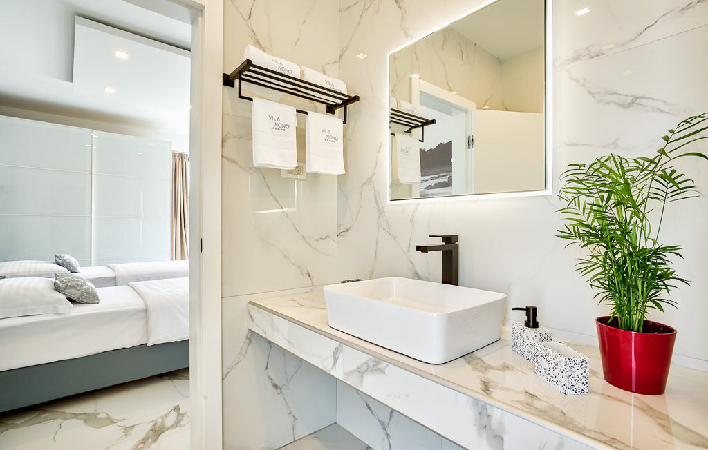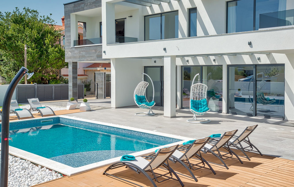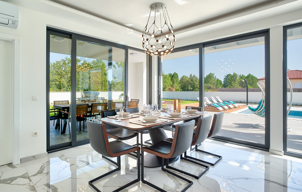 Entrez dans la magnifique villa moderne Nono à Zaton, près de Zadar. Avec son design élégant et minimaliste, cette villa peut accueillir jusqu'à 8 personnes dans 4 chambres agréables. Ici, vous pouvez profiter de la piscine privée, faire un barbecue ou manger ensemble dans la salle à manger ouverte. En entrant dans la villa, vous découvrirez un salon/salle à manger lumineux au concept ouvert, relié à une cuisine entièrement équipée. Le rez-de-chaussée comprend également une belle chambre à coucher avec un lit double et une salle de bain privée. Toutes les chambres disposent d'une télévision, de la climatisation et d'une salle de bain privée. Le premier étage offre 3 autres chambres à coucher avec balcon et terrasse. Parfait pour capter le premier soleil du matin en buvant un thé ou un café. De nombreux éléments en verre et de larges portes ouvrent l'espace et donnent à la villa une lumière plus douce, tout en surplombant la piscine accueillante depuis le salon. La plage la plus proche est accessible à pied, ce qui vous permet d'explorer facilement la région et de profiter de la mer claire tout en vous reposant à l'ombre des pins.Cette magnifique villa est située dans la petite ville de Zaton, non loin de belles villes comme Zadar et Nin, qui valent le détour. La première plage est à seulement 1 km de la villa. Nous vous recommandons de visiter les villes touristiques voisines de Zadar et Nin, qui offrent de nombreuses attractions. Nin est une charmante petite ville, aujourd'hui célèbre pour ses belles plages de sable, ses salines et ses boues curatives naturelles. Fait intéressant, Nin a été élue par European Best Destinations comme l'une des destinations les plus romantiques d'Europe. Zadar est idéale pour les amateurs d'architecture, avec de nombreux musées, mais aussi des cafés, des restaurants et une vie nocturne animée. Visitez l'emblème de la ville, l'église Saint-Donat du 9e siècle, construite dans le style roman. Des magasins, des restaurants et des bars se trouvent à distance de marche de la villa.