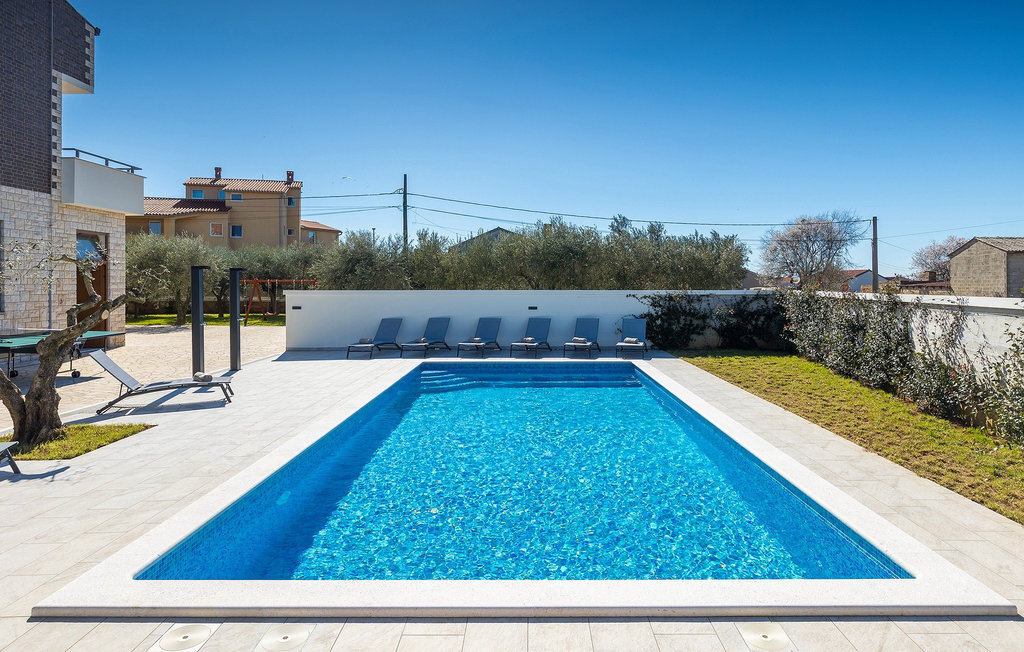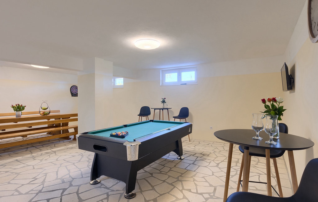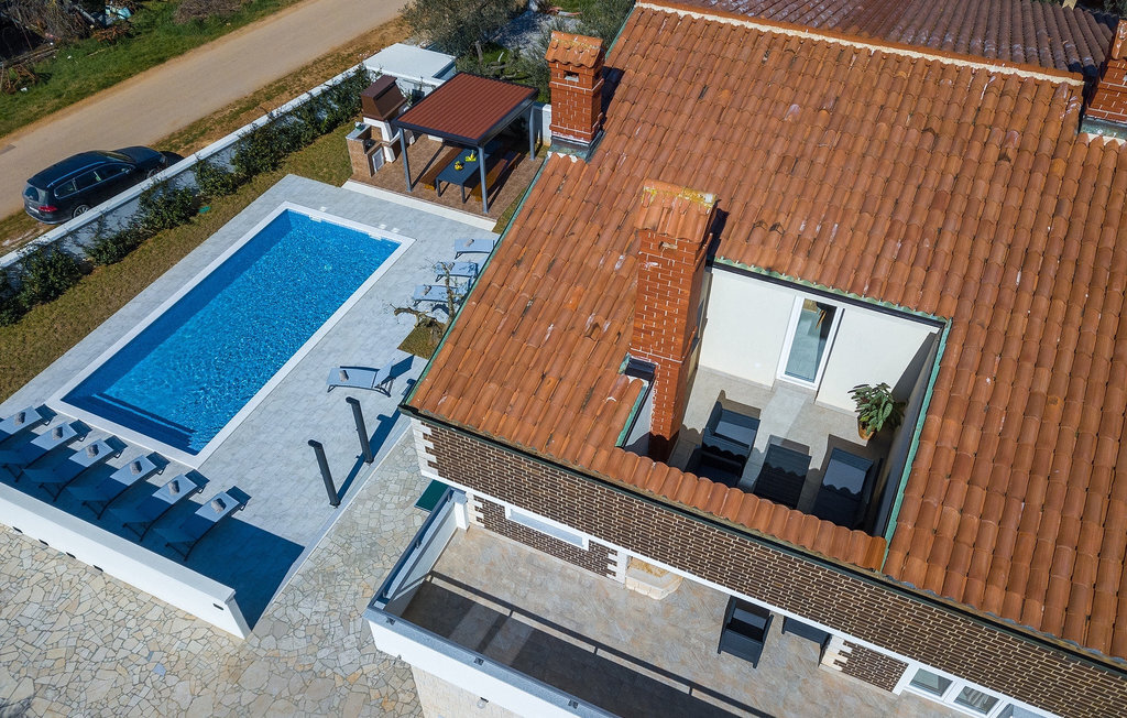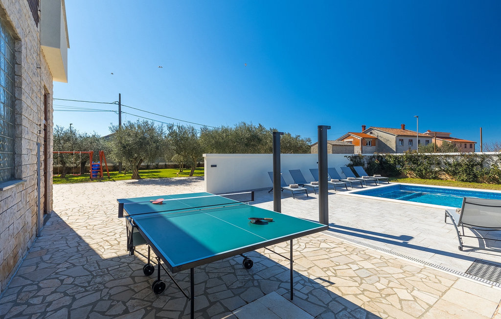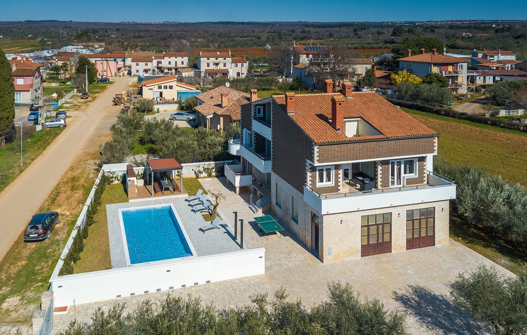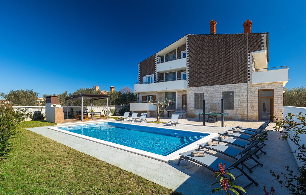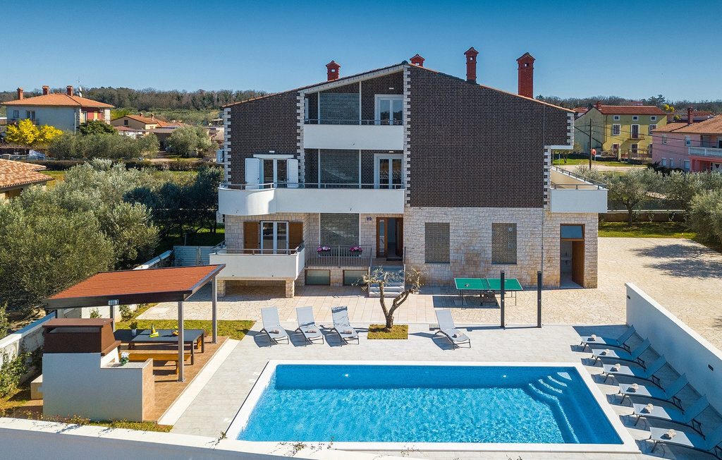 En effet, une piscine de 43m2 vous attend dans le grand espace extérieur de la villa, où chacun trouvera facilement sa place. Pendant que vous vous installez confortablement sur l'une des chaises longues avec une boisson rafraîchissante, les enfants s'ébattent dans le jardin. Le déjeuner est déjà en train d'être préparé sur le barbecue, une odeur de poisson fraîchement grillé se dégage d'un coin repas couvert au bord de la piscine qui invite à passer de longues et agréables soirées d'été. Depuis la cave de la maison, on entend le gagnant de la partie de billard jubiler, quelqu'un d'autre est en train de perdre au tournoi de fléchettes. La famille et les amis se retrouvent ici et passent des vacances de rêve ensemble. Et pourtant, chacun a aussi la possibilité d'être seul et de se retirer de temps en temps. L'intérieur lumineux et moderne de la Villa Berg se compose de quatre niveaux. Au sous-sol se trouve la salle de jeux avec une table de ping-pong, un baby-foot et un billard. Le rez-de-chaussée se compose d'un salon, d'une salle à manger et d'une cuisine entièrement équipée, d'une chambre confortable et d'une salle de bains. Au premier étage, il y a un autre petit salon, une cuisine et une table à manger, 3 jolies chambres à coucher et 2 salles de bain modernes ainsi qu'un WC séparé. Au dernier étage, il y a 2 autres chambres confortables, 2 salles de bain et un coin repas avec une petite cuisine. Chaque niveau dispose de son propre balcon, où l'on peut aussi profiter de temps en temps de moments à soi. Il semble que vous ayez trouvé l'endroit idéal sous le soleil de la Croatie!Sur la côte ouest de l'Istrie, entre Vodnjan et Pula, se trouve le village de Valbandon, une partie de la commune de Fazana. Le romantique village de pêcheurs de Fazana, avec ses ruelles étroites et ses vieux bâtiments, vous enchantera immédiatement. La longue promenade en bord de mer, avec ses magnifiques plages de galets au bord d'une mer turquoise, orne la petite ville qui propose en outre une multitude de cafés et de restaurants. De là, vous pouvez vous rendre en bateau sur les célèbres îles Brijuni et leur parc safari, ou tout simplement vous rendre à Pula, où vous pourrez admirer le célèbre amphithéâtre, faire du shopping à volonté, visiter des musées, assister à des concerts ou à des festivals, ou simplement regarder l'animation autour d'un café ou d'une glace. Valbandon est l'endroit idéal si vous cherchez une oasis de calme loin de l'agitation touristique.