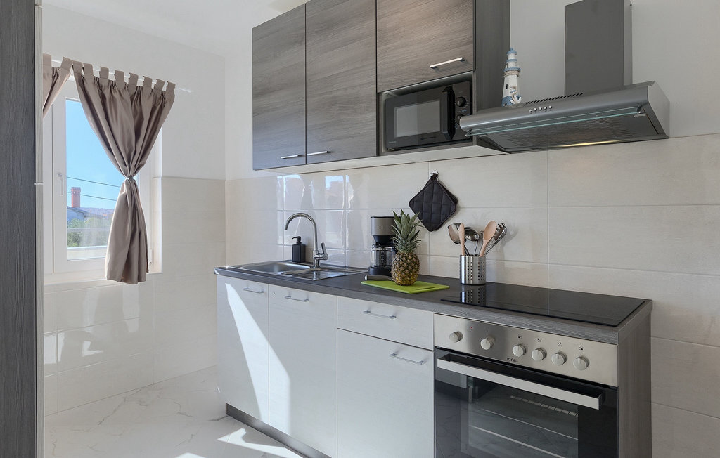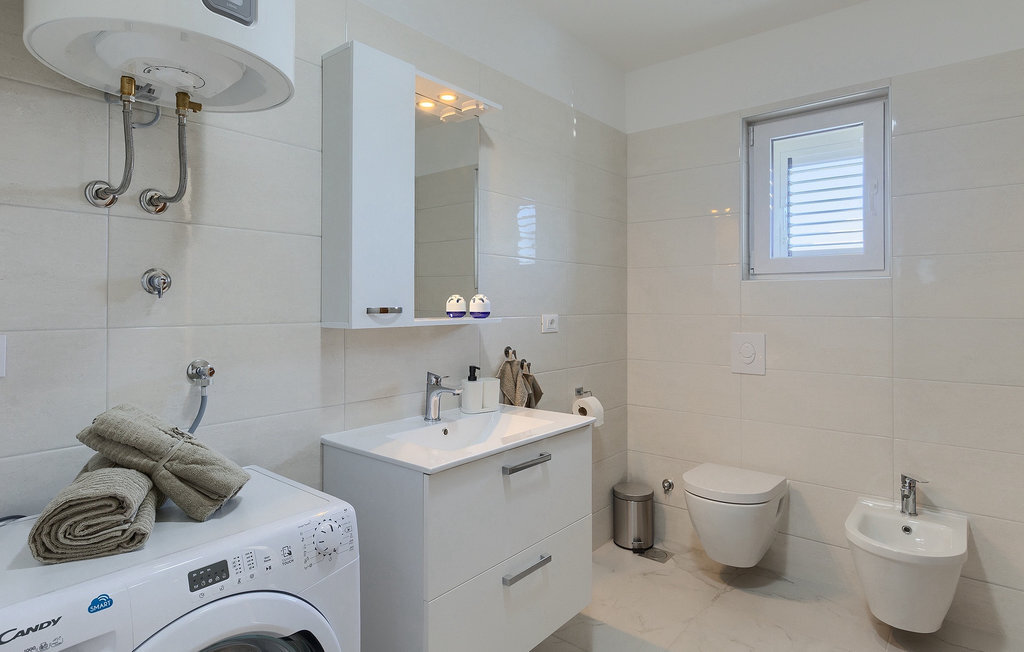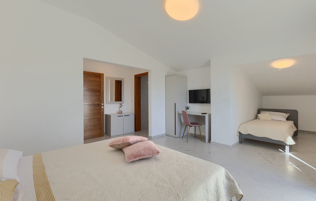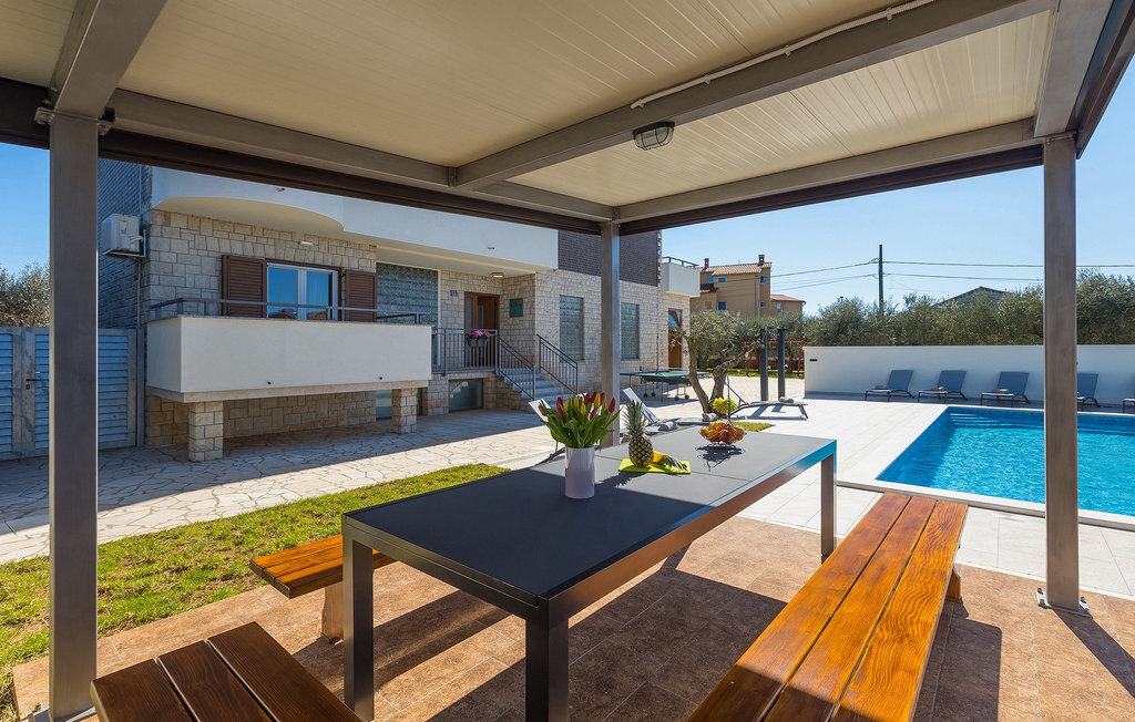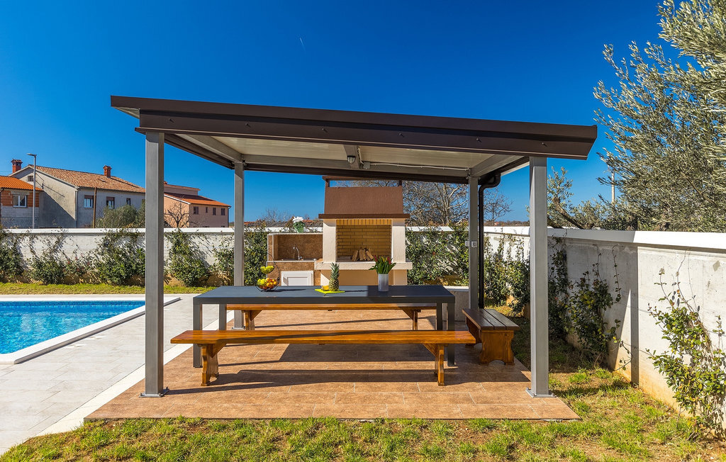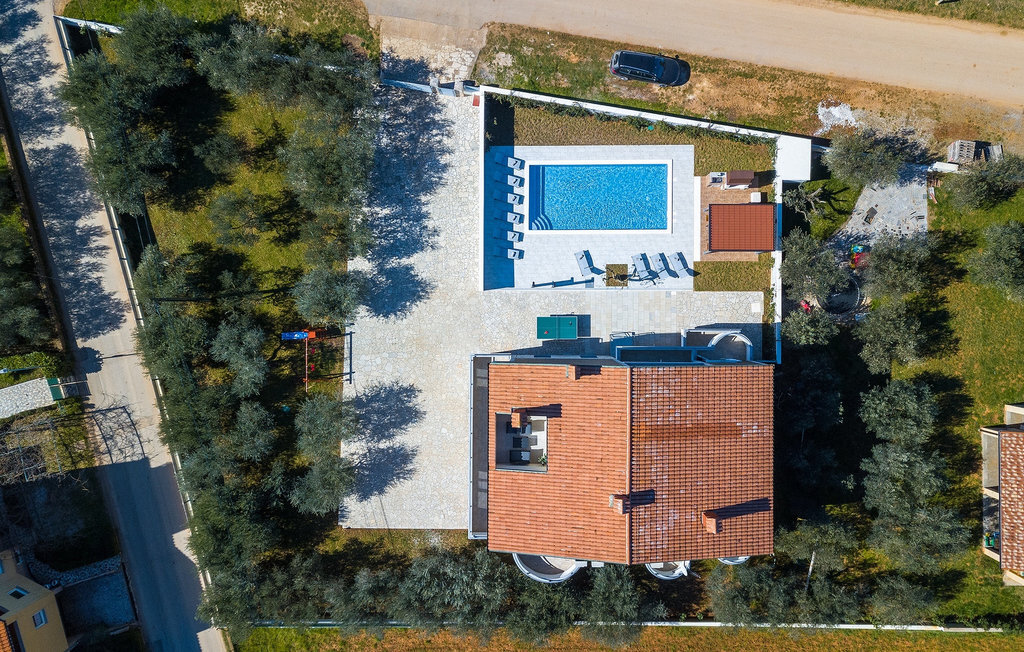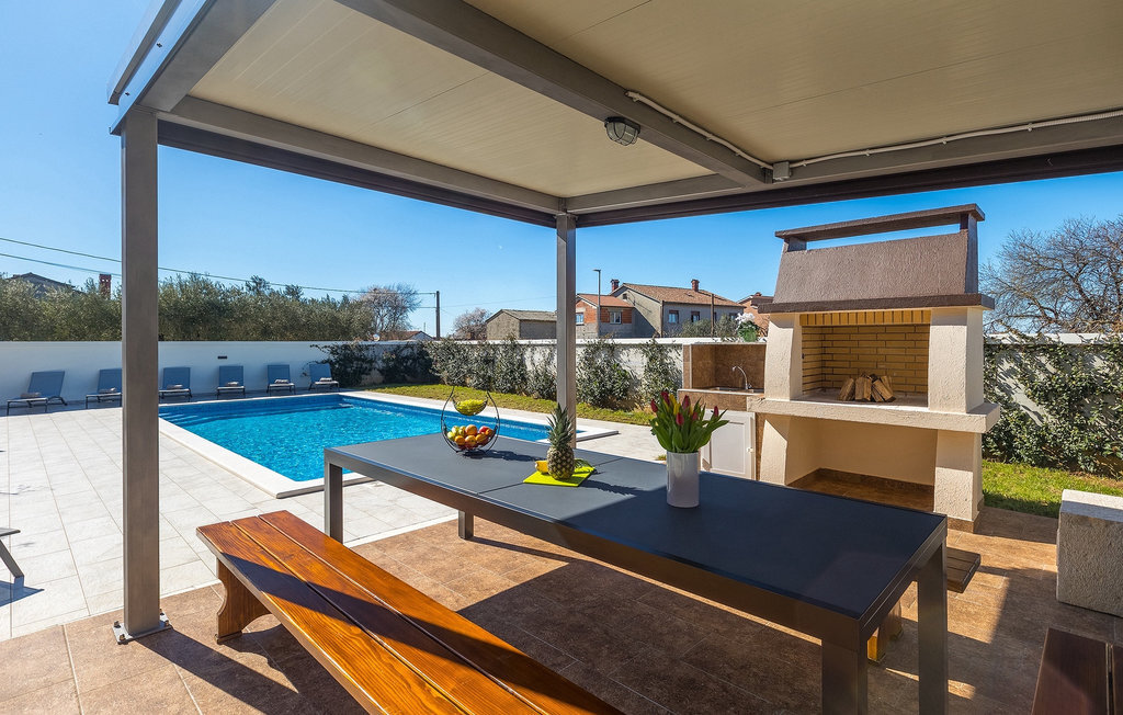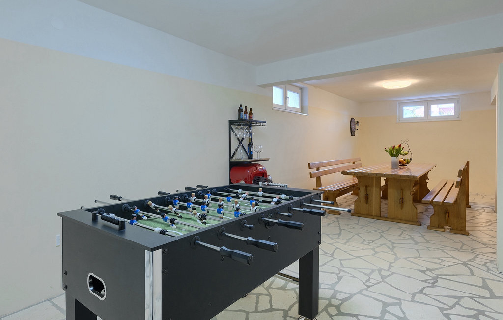En effet, une piscine de 43m2 vous attend dans le grand espace extérieur de la villa, où chacun trouvera facilement sa place. Pendant que vous vous installez confortablement sur l'une des chaises longues avec une boisson rafraîchissante, les enfants s'ébattent dans le jardin. Le déjeuner est déjà en train d'être préparé sur le barbecue, une odeur de poisson fraîchement grillé se dégage d'un coin repas couvert au bord de la piscine qui invite à passer de longues et agréables soirées d'été. Depuis la cave de la maison, on entend le gagnant de la partie de billard jubiler, quelqu'un d'autre est en train de perdre au tournoi de fléchettes. La famille et les amis se retrouvent ici et passent des vacances de rêve ensemble. Et pourtant, chacun a aussi la possibilité d'être seul et de se retirer de temps en temps. L'intérieur lumineux et moderne de la Villa Berg se compose de quatre niveaux. Au sous-sol se trouve la salle de jeux avec une table de ping-pong, un baby-foot et un billard. Le rez-de-chaussée se compose d'un salon, d'une salle à manger et d'une cuisine entièrement équipée, d'une chambre confortable et d'une salle de bains. Au premier étage, il y a un autre petit salon, une cuisine et une table à manger, 3 jolies chambres à coucher et 2 salles de bain modernes ainsi qu'un WC séparé. Au dernier étage, il y a 2 autres chambres confortables, 2 salles de bain et un coin repas avec une petite cuisine. Chaque niveau dispose de son propre balcon, où l'on peut aussi profiter de temps en temps de moments à soi. Il semble que vous ayez trouvé l'endroit idéal sous le soleil de la Croatie!Sur la côte ouest de l'Istrie, entre Vodnjan et Pula, se trouve le village de Valbandon, une partie de la commune de Fazana. Le romantique village de pêcheurs de Fazana, avec ses ruelles étroites et ses vieux bâtiments, vous enchantera immédiatement. La longue promenade en bord de mer, avec ses magnifiques plages de galets au bord d'une mer turquoise, orne la petite ville qui propose en outre une multitude de cafés et de restaurants. De là, vous pouvez vous rendre en bateau sur les célèbres îles Brijuni et leur parc safari, ou tout simplement vous rendre à Pula, où vous pourrez admirer le célèbre amphithéâtre, faire du shopping à volonté, visiter des musées, assister à des concerts ou à des festivals, ou simplement regarder l'animation autour d'un café ou d'une glace. Valbandon est l'endroit idéal si vous cherchez une oasis de calme loin de l'agitation touristique.