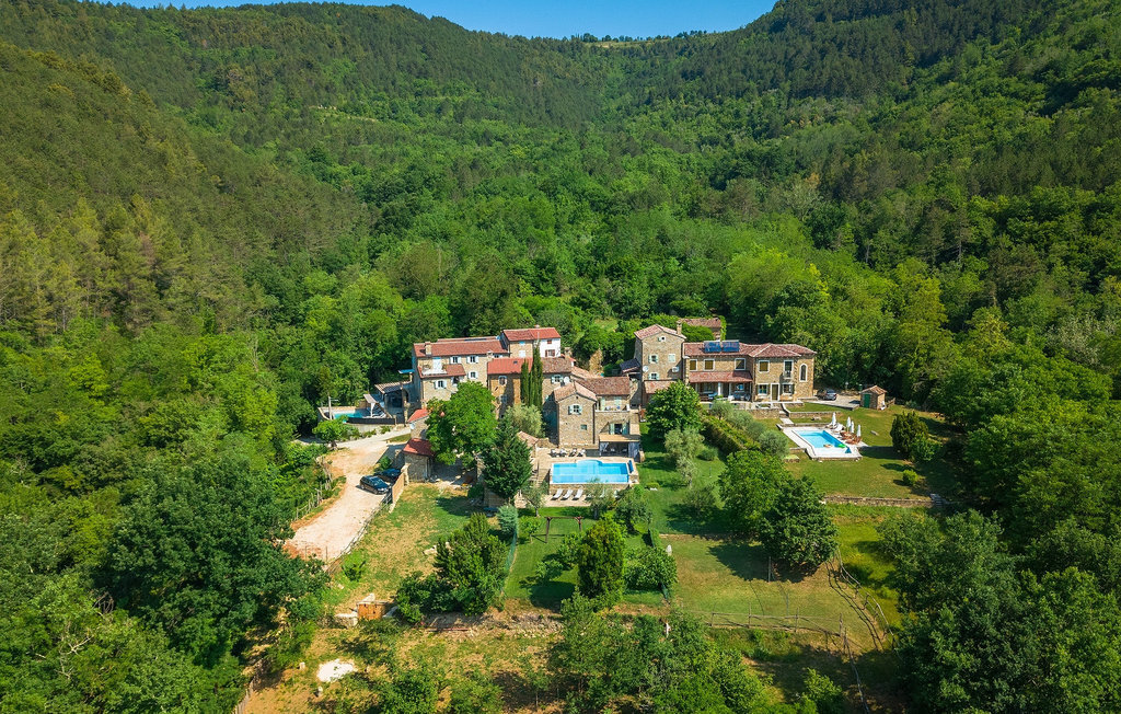 Villa Luigi & Luisa est un véritable refuge ! Ces deux anciennes maisons de campagne rénovées sont situées sur une petite colline avec seulement une poignée de maisons, ce qui vous donne l'impression d'être "très loin". L'espace extérieur offre une piscine à débordement de 50m2 et un beau jardin bien entretenu - idéal pour les familles avec enfants. Il y a une cuisine d'été couverte avec barbecue et table à manger, d'où vous pouvez profiter de la vue magnifique sur les collines verdoyantes, la vallée de la rivière Mirna et Motovun. Les maisons avec une répartition intéressante de l'espace sont louées en tant qu'unité pouvant accueillir jusqu'à 14 personnes avec 6 chambres à coucher. Une maison a deux chambres avec salle de bain privée, l'autre a quatre chambres de ce type. Des meubles du 19ème siècle combinés à la pierre et au bois dans le salon ouvert et la cuisine créent une atmosphère chaleureuse. Le balcon vous donne un petit coin privé supplémentaire où vous pouvez profiter du panorama.