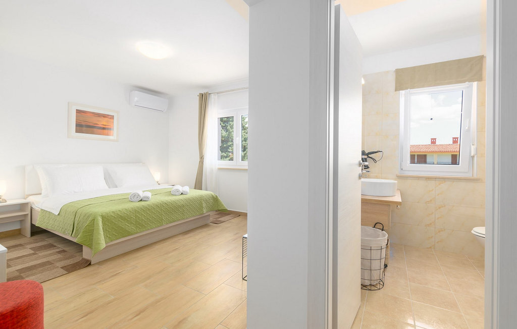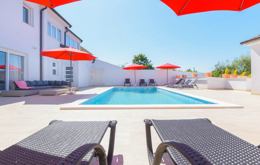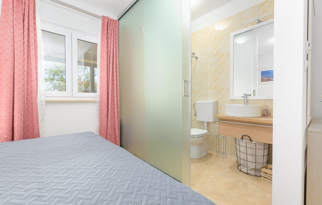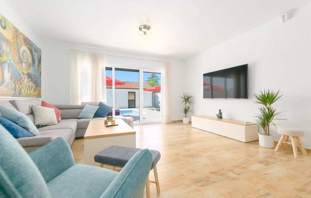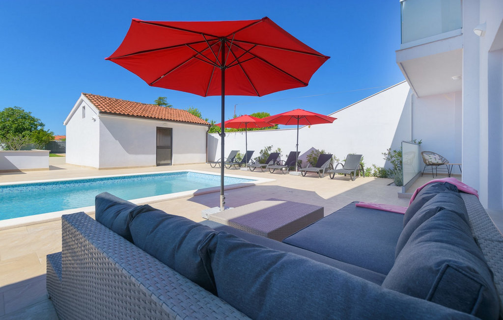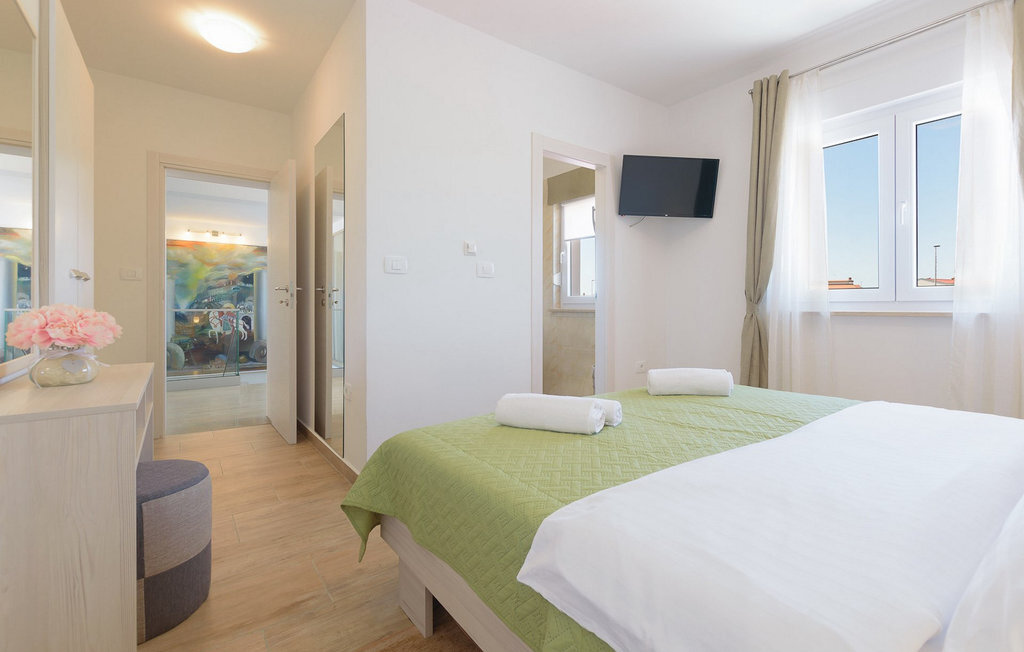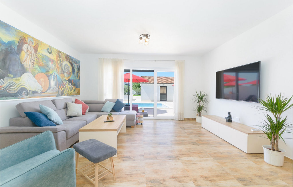La Villa Mala Vala, située sur la côte ouest de l'Istrie, vous invite à passer des vacances relaxantes à proximité de la mer. Le logement, qui peut accueillir jusqu'à 12 personnes, dispose au rez-de-chaussée d'un concept d'espace libre, grâce auquel le salon, la salle à manger et la cuisine sont reliés entre eux. La pièce spacieuse et lumineuse avec des accents de couleurs chaudes crée une atmosphère confortable. Outre le canapé, les fenêtres du sol au plafond vous offrent une belle vue et un accès direct au jardin et à la piscine privée. Dans la cuisine, vous pouvez vous préparer un espresso d'une excellente texture et le déguster sur la terrasse avec vue sur le jardin. Au rez-de-chaussée, vous trouverez également deux des six chambres à coucher, dont l'une a accès à la terrasse. À l'étage supérieur, les autres chambres à coucher vous attendent, dont une avec un balcon privé. Toutes les chambres de cette villa ont leur propre salle de bains avec douche à l'italienne. En outre, ce logement donnera à vos vacances un niveau de détente supplémentaire - un espace bien-être est à votre disposition à l'étage supérieur. Vous pourrez y profiter du sauna et du jacuzzi. Dehors, vous pouvez vous rafraîchir dans la piscine privée pendant les chaudes journées d'été, prendre un peu de soleil sur les chaises longues ou vous asseoir sur le confortable salon de jardin. Sur la terrasse, il y a un espace barbecue avec un gril et une table à manger, ce qui vous permet de préparer de délicieux repas en plein air. Si vous cherchez à vous amuser, le baby-foot est une bonne idée sur cette terrasse et les petits peuvent en plus profiter de l'aire de jeux. Rendez vos prochaines vacances agréables et mémorables - réservez la Villa Mala Vala dès maintenant.La Villa Mala Vala est située dans le village de Valbandon, à côté de la pittoresque ville de pêcheurs de Faana. Le littoral de Valbandon à Faana est particulièrement connu pour ses longues plages de galets, qui vous motiveront à y passer une belle journée de détente. Vous pouvez profiter du bord de mer aussi bien pour faire de longues promenades que pour pratiquer des activités sportives. Vous trouverez de nombreux restaurants dans les environs, notamment des tavernes traditionnelles - ne manquez pas de goûter aux spécialités istriennes. Vous aurez peut-être l'occasion de participer à la fête Valbandon ispod ripnje, où l'on propose des plats autochtones et locaux rôtis sous la cloche - faites-vous plaisir ! N'oubliez pas de visiter Faana, d'où vous pourrez rejoindre le parc national de Brijuni en bateau - une idée parfaite pour une excursion d'une journée. De plus, vous devriez vous promener dans la plus grande ville d'Istrie, Pula, pleine de monuments historiques comme le célèbre amphithéâtre, appelé Arena, et profiter de son atmosphère authentique.