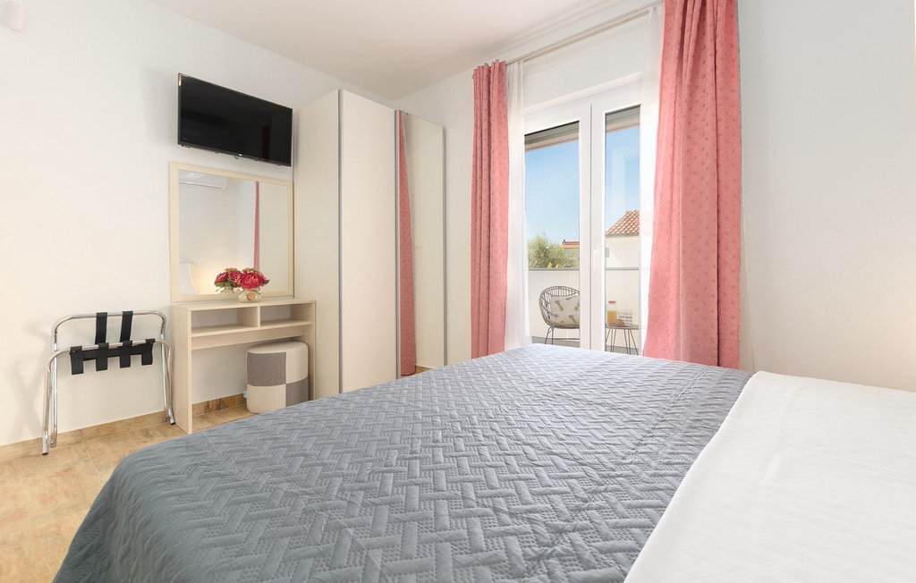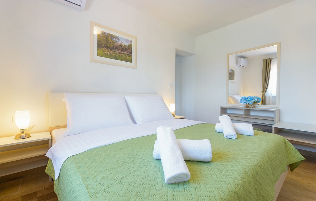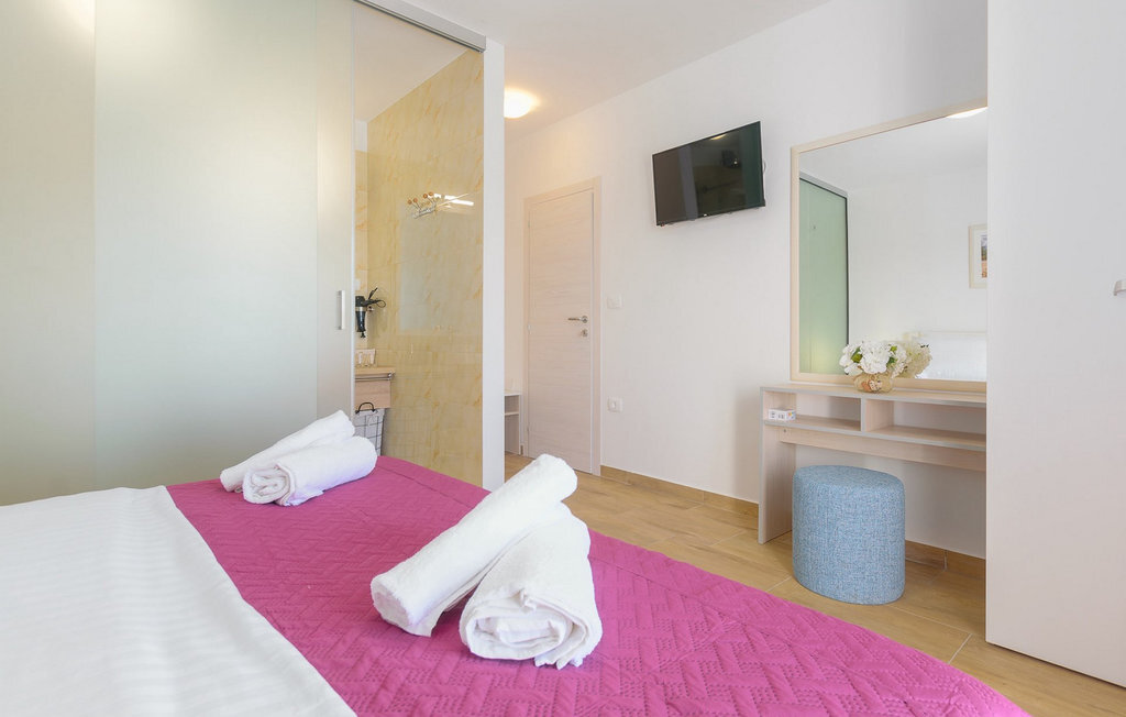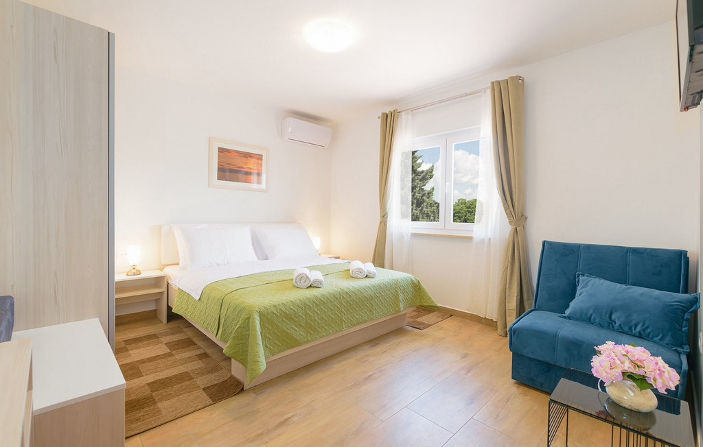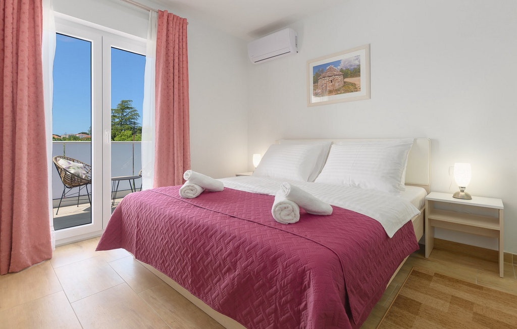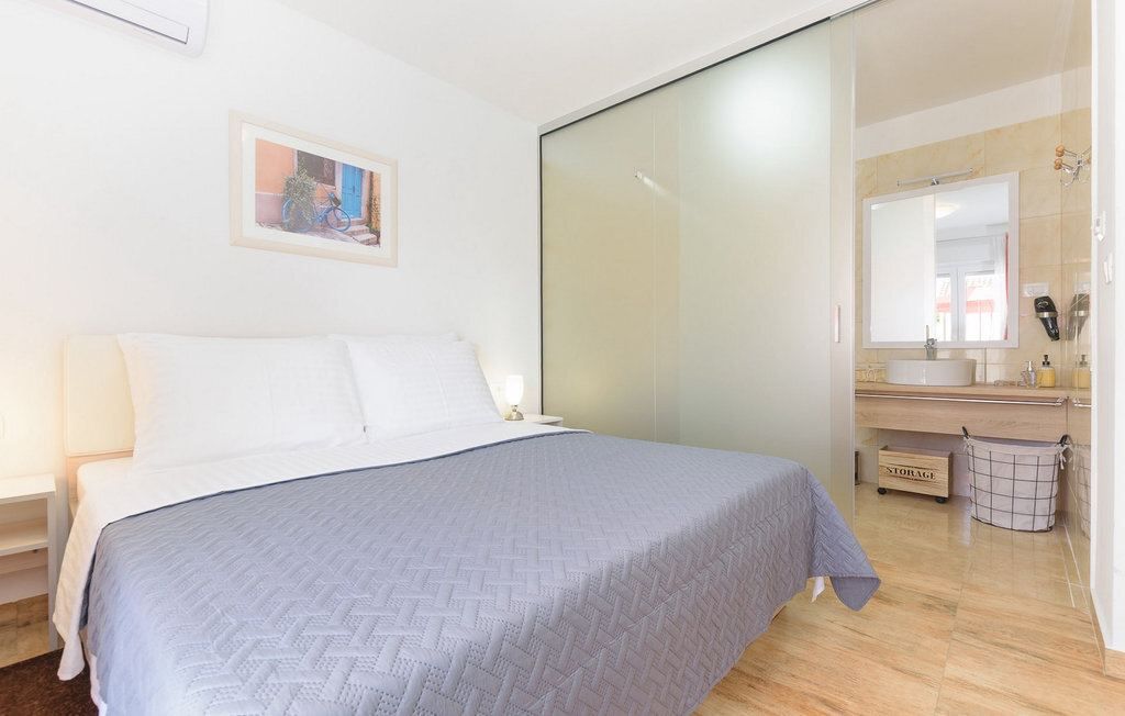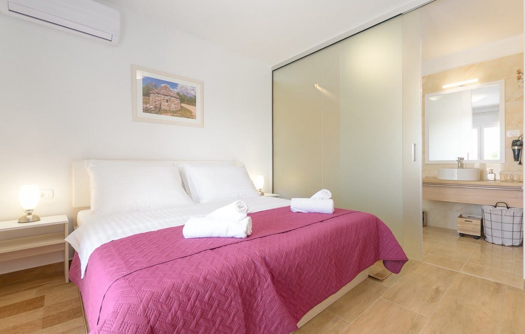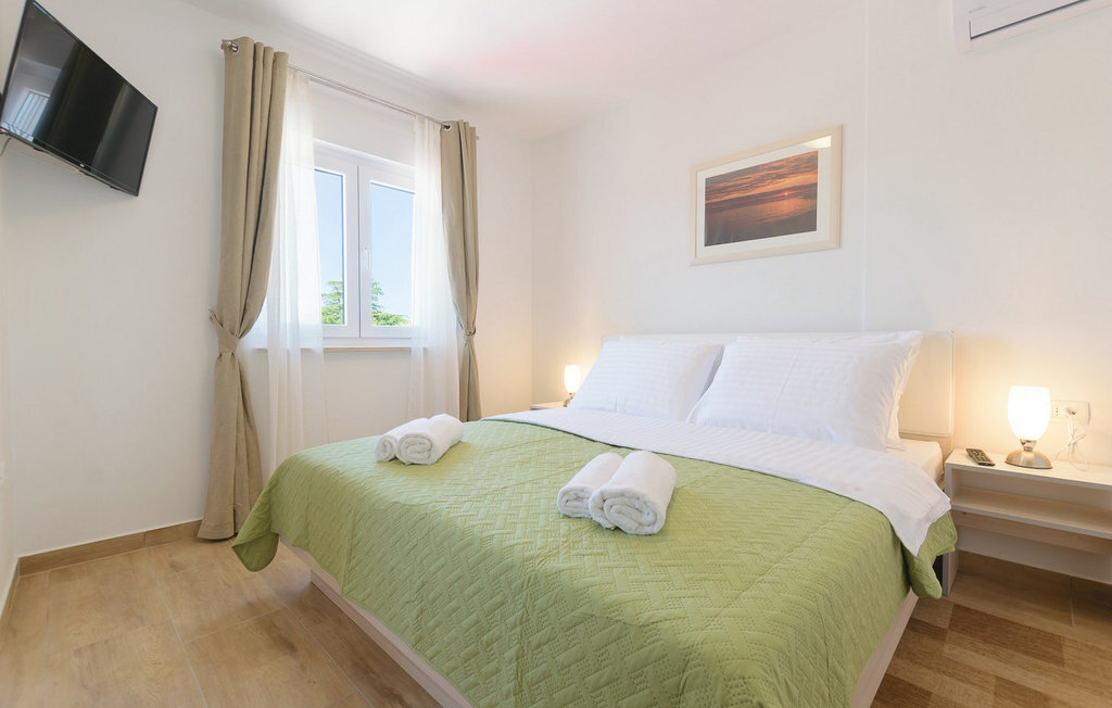 La Villa Mala Vala, située sur la côte ouest de l'Istrie, vous invite à passer des vacances relaxantes à proximité de la mer. Le logement, qui peut accueillir jusqu'à 12 personnes, dispose au rez-de-chaussée d'un concept d'espace libre, grâce auquel le salon, la salle à manger et la cuisine sont reliés entre eux. La pièce spacieuse et lumineuse avec des accents de couleurs chaudes crée une atmosphère confortable. Outre le canapé, les fenêtres du sol au plafond vous offrent une belle vue et un accès direct au jardin et à la piscine privée. Dans la cuisine, vous pouvez vous préparer un espresso d'une excellente texture et le déguster sur la terrasse avec vue sur le jardin. Au rez-de-chaussée, vous trouverez également deux des six chambres à coucher, dont l'une a accès à la terrasse. À l'étage supérieur, les autres chambres à coucher vous attendent, dont une avec un balcon privé. Toutes les chambres de cette villa ont leur propre salle de bains avec douche à l'italienne. En outre, ce logement donnera à vos vacances un niveau de détente supplémentaire - un espace bien-être est à votre disposition à l'étage supérieur. Vous pourrez y profiter du sauna et du jacuzzi. Dehors, vous pouvez vous rafraîchir dans la piscine privée pendant les chaudes journées d'été, prendre un peu de soleil sur les chaises longues ou vous asseoir sur le confortable salon de jardin. Sur la terrasse, il y a un espace barbecue avec un gril et une table à manger, ce qui vous permet de préparer de délicieux repas en plein air. Si vous cherchez à vous amuser, le baby-foot est une bonne idée sur cette terrasse et les petits peuvent en plus profiter de l'aire de jeux. Rendez vos prochaines vacances agréables et mémorables - réservez la Villa Mala Vala dès maintenant.La Villa Mala Vala est située dans le village de Valbandon, à côté de la pittoresque ville de pêcheurs de Faana. Le littoral de Valbandon à Faana est particulièrement connu pour ses longues plages de galets, qui vous motiveront à y passer une belle journée de détente. Vous pouvez profiter du bord de mer aussi bien pour faire de longues promenades que pour pratiquer des activités sportives. Vous trouverez de nombreux restaurants dans les environs, notamment des tavernes traditionnelles - ne manquez pas de goûter aux spécialités istriennes. Vous aurez peut-être l'occasion de participer à la fête Valbandon ispod ripnje, où l'on propose des plats autochtones et locaux rôtis sous la cloche - faites-vous plaisir ! N'oubliez pas de visiter Faana, d'où vous pourrez rejoindre le parc national de Brijuni en bateau - une idée parfaite pour une excursion d'une journée. De plus, vous devriez vous promener dans la plus grande ville d'Istrie, Pula, pleine de monuments historiques comme le célèbre amphithéâtre, appelé Arena, et profiter de son atmosphère authentique.