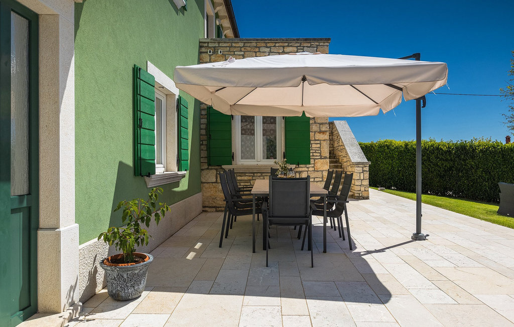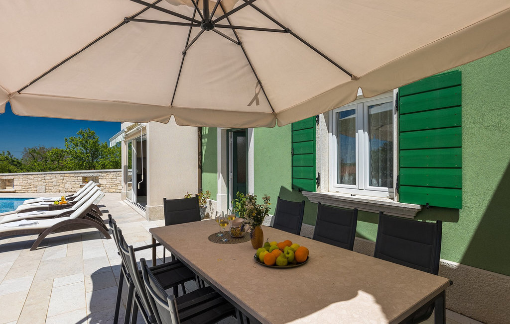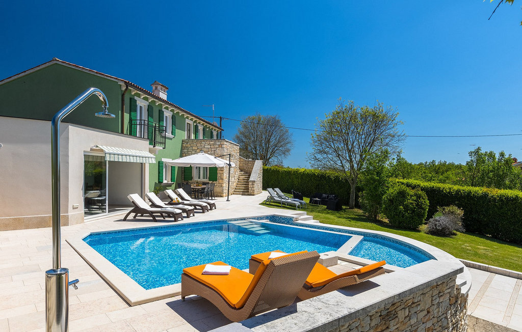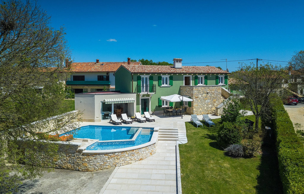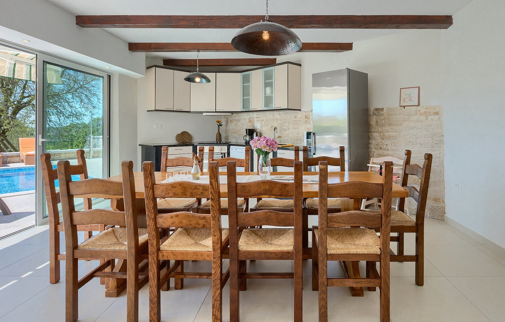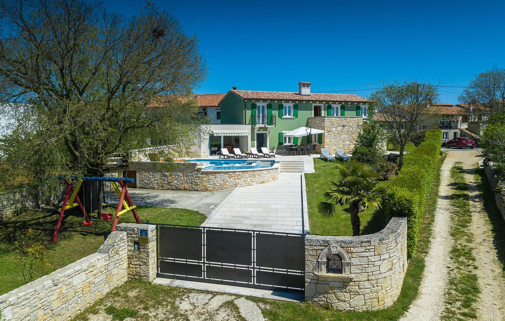 La Villa Silvana vous étonnera par sa taille, sa capacité d'hébergement et son jardin aménagé avec une attention particulière, que vous vous prépariez à passer des vacances en famille ou entre amis. La villa est une combinaison parfaite de design rustique et moderne, car elle combine des détails en pierre et des poutres en bois aux plafonds avec un intérieur neutre. Comme 2 chambres et 2 salles de bains se trouvent directement au rez-de-chaussée, les vacances dans cette villa sont une solution particulièrement pratique et un excellent choix pour les familles avec enfants. Mais des groupes de visiteurs de différentes compositions apprécieront également les vacances dans cette villa au plan ouvert, qui se distingue par la combinaison de l'espace intérieur et extérieur. En effet, le salon, la salle à manger et la cuisine se trouvent également au rez-de-chaussée, où seule une paroi vitrée vous sépare de la spacieuse terrasse extérieure avec piscine. Reposez-vous dans les 3 chambres et les 2 salles de bains restantes à l'étage, dont le design neutre et lumineux vous invite à la détente. À l'extérieur, rafraîchissez-vous dans la piscine au design intéressant sur deux niveaux, prenez le soleil sur les chaises longues ou savourez une boisson rafraîchissante à l'ombre d'un arbre. Pour les plus jeunes, il y a une aire de jeux et une surprise particulière sous la forme d'une cabane dans les arbres. En fin de journée, le jardin unique de cette villa vous offre la possibilité de profiter du dîner à la table à manger en plein air.La villa Silvana se trouve dans la petite ville istrienne appelée Sveti Petar u Sumi, dans le centre de l'Istrie. Ici, l'ambiance est calme et relaxante. Cependant, les centres touristiques animés de Porec et Rovinj, les plages, la mer propre et les nombreuses curiosités ne sont qu'à une courte distance en voiture. L'Istrie centrale est connue pour son paysage de petites villes médiévales pittoresques qui rappellent irrésistiblement la Toscane ou la Provence. De plus, l'Istrie centrale offre un riche patrimoine culturel.
