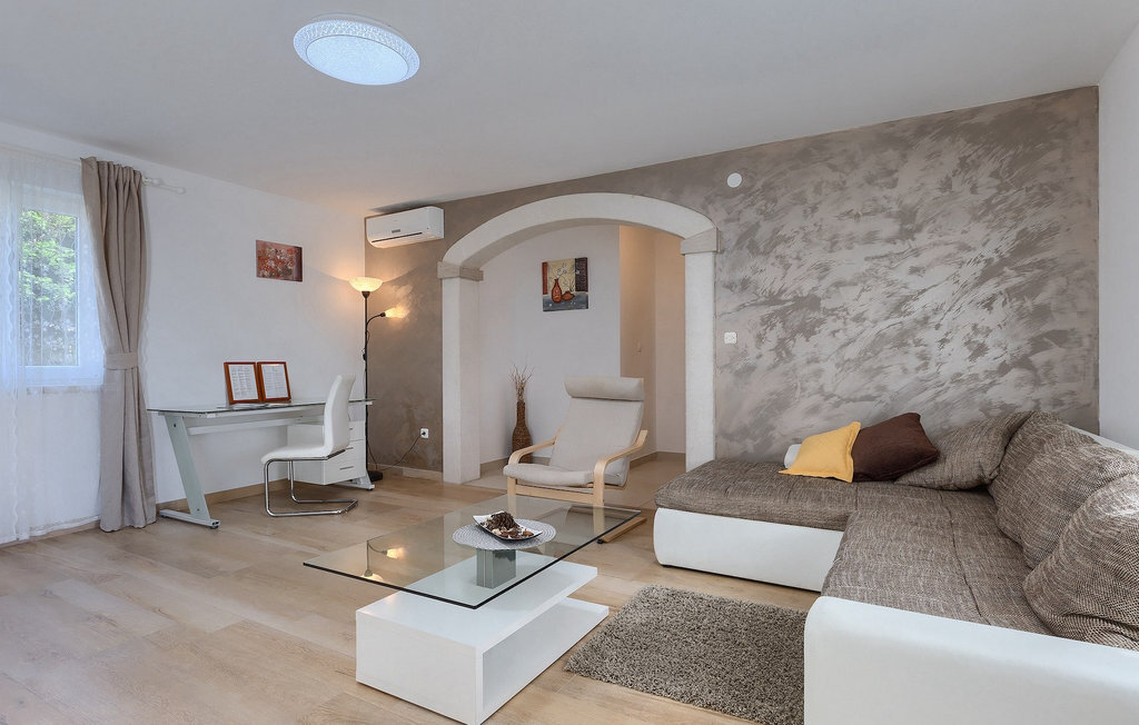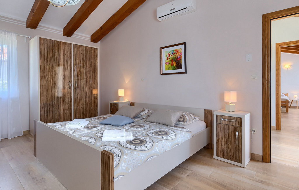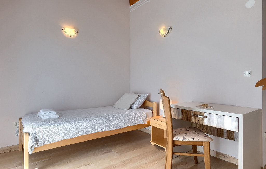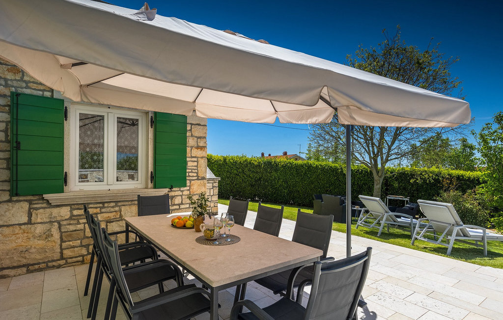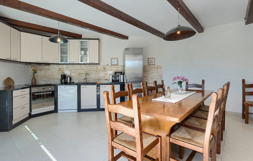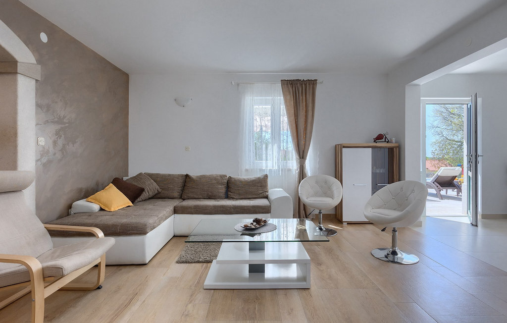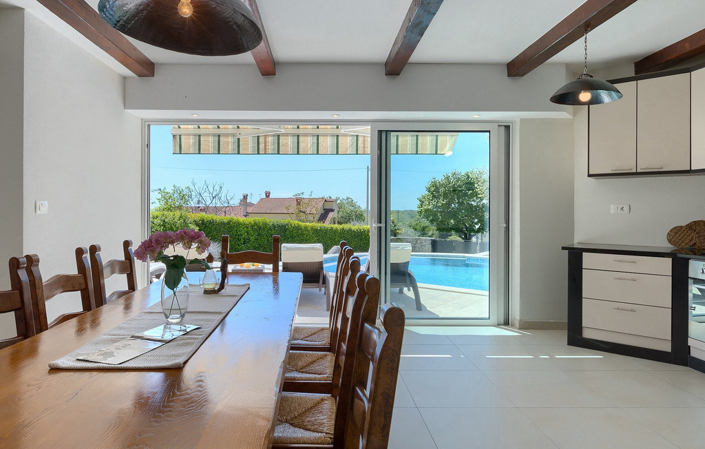 La Villa Silvana vous étonnera par sa taille, sa capacité d'hébergement et son jardin aménagé avec une attention particulière, que vous vous prépariez à passer des vacances en famille ou entre amis. La villa est une combinaison parfaite de design rustique et moderne, car elle combine des détails en pierre et des poutres en bois aux plafonds avec un intérieur neutre. Comme 2 chambres et 2 salles de bains se trouvent directement au rez-de-chaussée, les vacances dans cette villa sont une solution particulièrement pratique et un excellent choix pour les familles avec enfants. Mais des groupes de visiteurs de différentes compositions apprécieront également les vacances dans cette villa au plan ouvert, qui se distingue par la combinaison de l'espace intérieur et extérieur. En effet, le salon, la salle à manger et la cuisine se trouvent également au rez-de-chaussée, où seule une paroi vitrée vous sépare de la spacieuse terrasse extérieure avec piscine. Reposez-vous dans les 3 chambres et les 2 salles de bains restantes à l'étage, dont le design neutre et lumineux vous invite à la détente. À l'extérieur, rafraîchissez-vous dans la piscine au design intéressant sur deux niveaux, prenez le soleil sur les chaises longues ou savourez une boisson rafraîchissante à l'ombre d'un arbre. Pour les plus jeunes, il y a une aire de jeux et une surprise particulière sous la forme d'une cabane dans les arbres. En fin de journée, le jardin unique de cette villa vous offre la possibilité de profiter du dîner à la table à manger en plein air.La villa Silvana se trouve dans la petite ville istrienne appelée Sveti Petar u Sumi, dans le centre de l'Istrie. Ici, l'ambiance est calme et relaxante. Cependant, les centres touristiques animés de Porec et Rovinj, les plages, la mer propre et les nombreuses curiosités ne sont qu'à une courte distance en voiture. L'Istrie centrale est connue pour son paysage de petites villes médiévales pittoresques qui rappellent irrésistiblement la Toscane ou la Provence. De plus, l'Istrie centrale offre un riche patrimoine culturel.