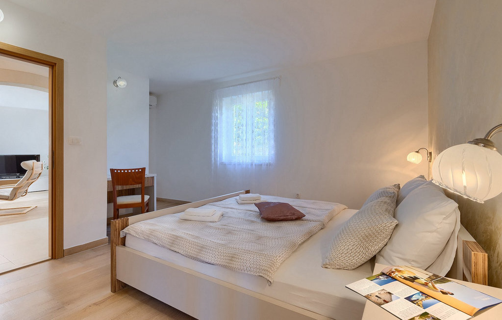Sveti Petar u Sumi tire son nom d'un monastère bénédictin du début du 12e siècle, mais a appartenu pendant des siècles aux Pauliciens - les moines blancs. C'est un lieu istrien inhabituel. Contrairement à d'autres lieux et villes d'Istrie, où les villages sont situés sur une montagne, Sv. Petar u Sumi se trouve sur un plateau vallonné, entouré de vieilles forêts. Dans les environs, il existe une piste cyclable de 18 km qui mène les visiteurs à travers une nature intacte. Le sentier de randonnée Krizni put, long de 4,2 km et comportant 14 stations avec des sculptures en pierre représentant des motifs sacrés, est également très attrayant. De nombreuses manifestations ont lieu à Sveti Petar u Sumi et attirent chaque année de nombreux visiteurs. La plus connue est la foire à la saucisse, où se déroule le championnat de farce traditionnelle à la saucisse. Non loin de la villa, vous trouverez de nombreuses tavernes où vous pourrez déguster les meilleurs mets d'Istrie. Nous vous recommandons de visiter d'autres destinations touristiques, comme les villes de Pula et Rovinj sur la côte et les villes médiévales de Motovun et Buzet en Istrie centrale.