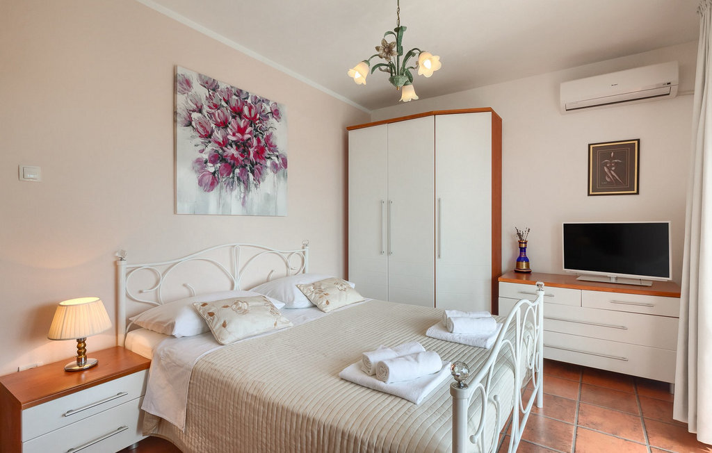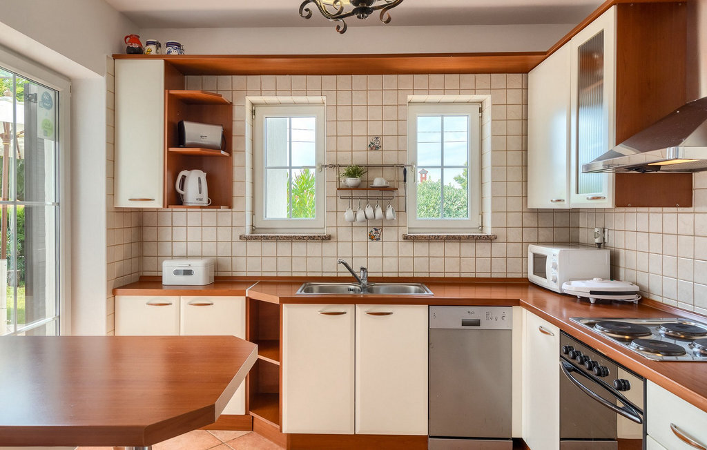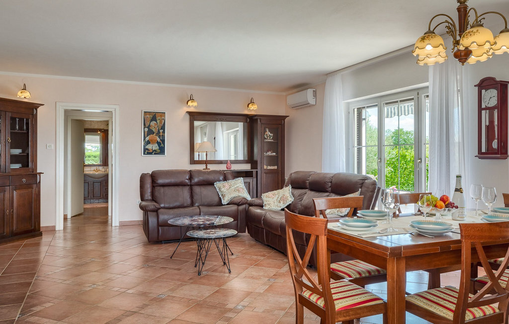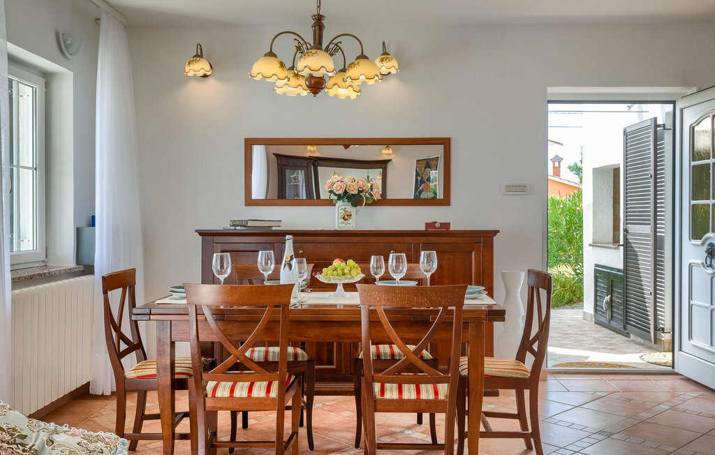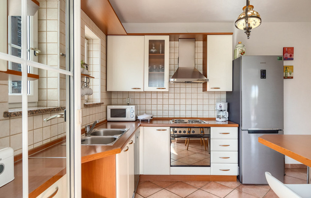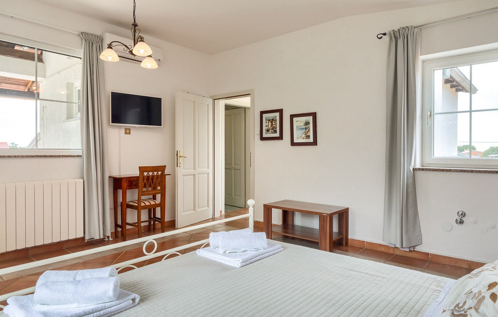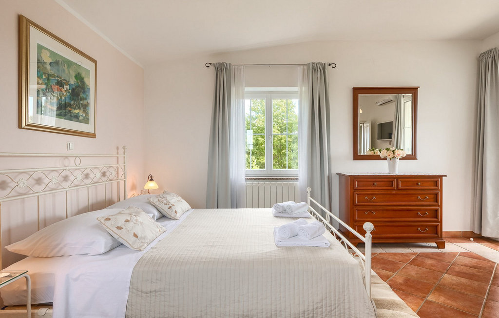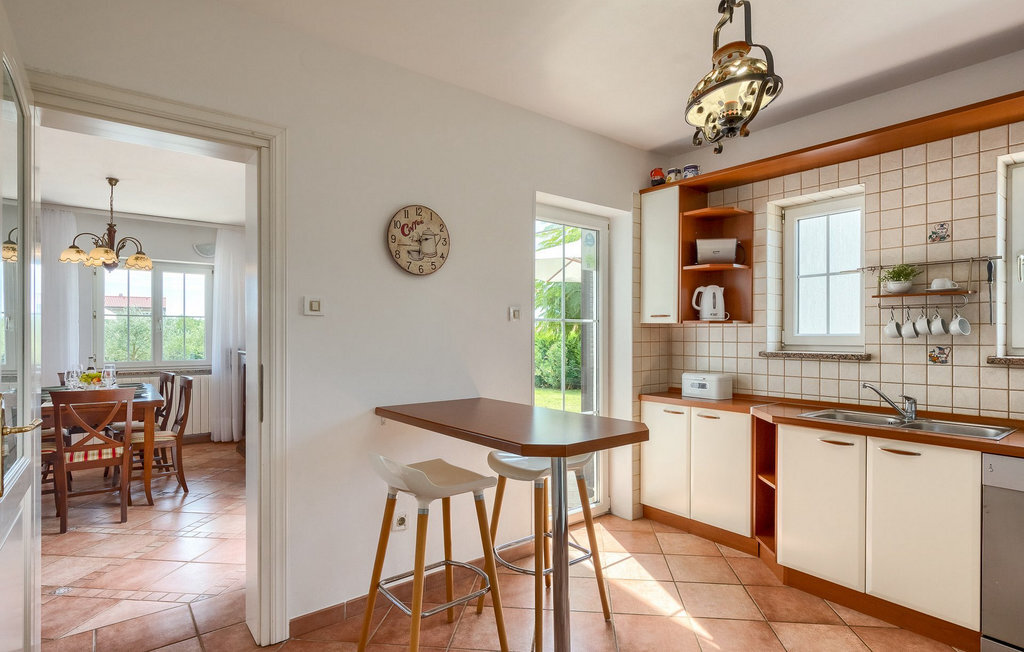 Bien que la villa ne soit qu'à 5 kilomètres de la plage, il est fort probable que vous passiez la majeure partie de vos vacances dans l'espace extérieur époustouflant de la villa. Essayez la piscine, puis abritez-vous à l'ombre d'un des parasols, prenez une tranche de pastèque et offrez-vous un verre de boisson rafraîchissante pour vous rafraîchir les chaudes journées d'été. Vos enfants peuvent jouer sur l'aire de jeux pendant que vous vous asseyez et vous détendez dans la salle à manger extérieure. Les plus aventureux trouveront que les 4 vélos mis à leur disposition dans la villa sont le meilleur moyen d'explorer les environs de la villa.La villa est située dans un petit village à proximité du hotspot touristique de Porec. Sa situation à proximité de la mer ravira tous les amateurs de plage, car la belle plage de Spadici et la célèbre station touristique de Zelena Laguna à Porec ne sont qu'à une courte distance en voiture de la villa. Porec offre une multitude de plages de pierres et de galets et la magnifique mer Adriatique turquoise vous coupera le souffle ! Si vous êtes plus intéressé par l'histoire et la culture, vous pouvez vous promener dans le centre historique et visiter la basilique d'Euphrasius, un site classé au patrimoine mondial de l'UNESCO. L'Istrie est également connue pour ses bonnes liaisons routières, ce qui vous permet de rejoindre rapidement en voiture toutes les autres destinations touristiques populaires comme Novigrad, Umag ou Pula. Pour ceux qui recherchent des vacances actives, il y a à proximité la magnifique piste cyclable en gravier Parenzana. Elle s'étend le long d'une ancienne voie ferrée de Porec à Trieste et offre certainement la meilleure possibilité de découvrir l'Istrie sur deux roues !