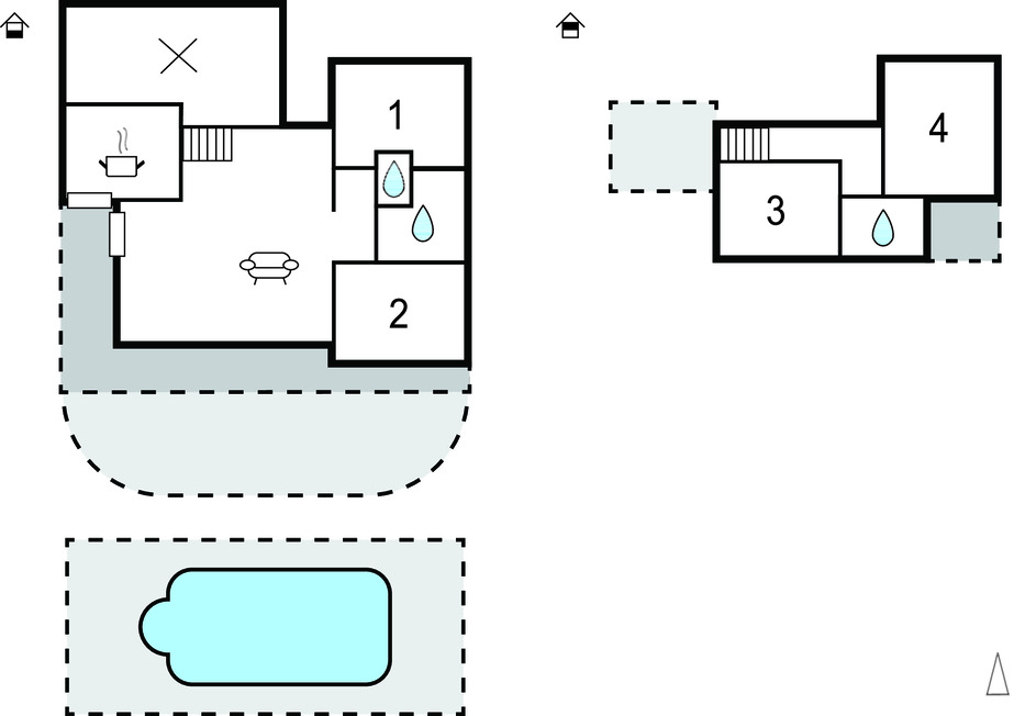 Deux chambres à coucher se trouvent au rez-de-chaussée, l'une est équipée d'un lit double et l'autre de deux lits simples. Les deux autres chambres se trouvent à l'étage, toutes deux équipées d'un lit double. À chaque étage se trouve une salle de bains avec douche. Oubliez les soucis quotidiens et le stress et offrez-vous enfin une nuit de sommeil réparatrice.