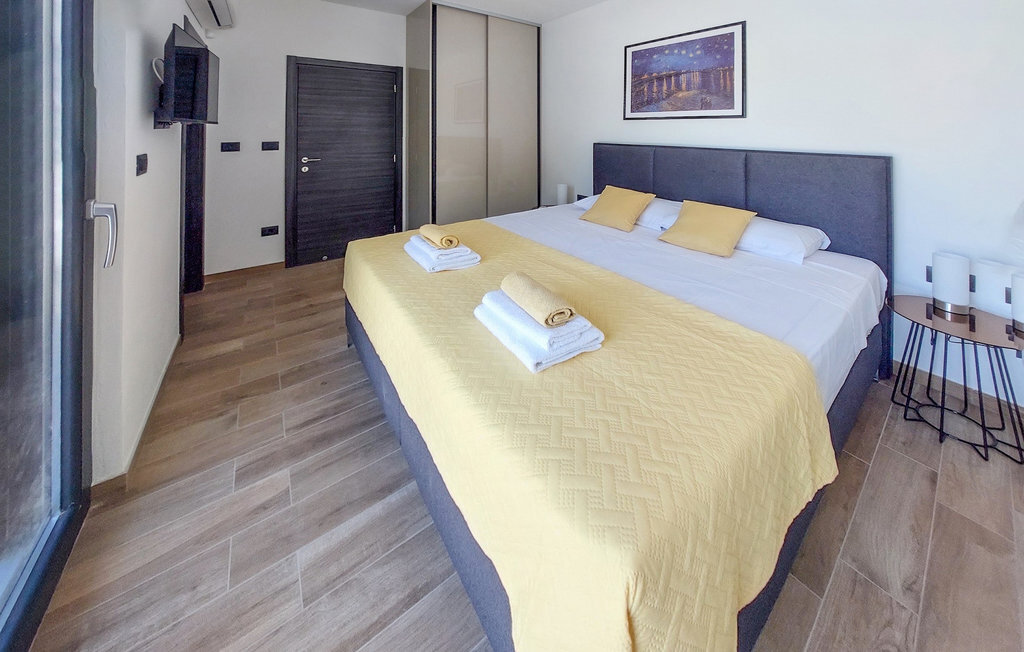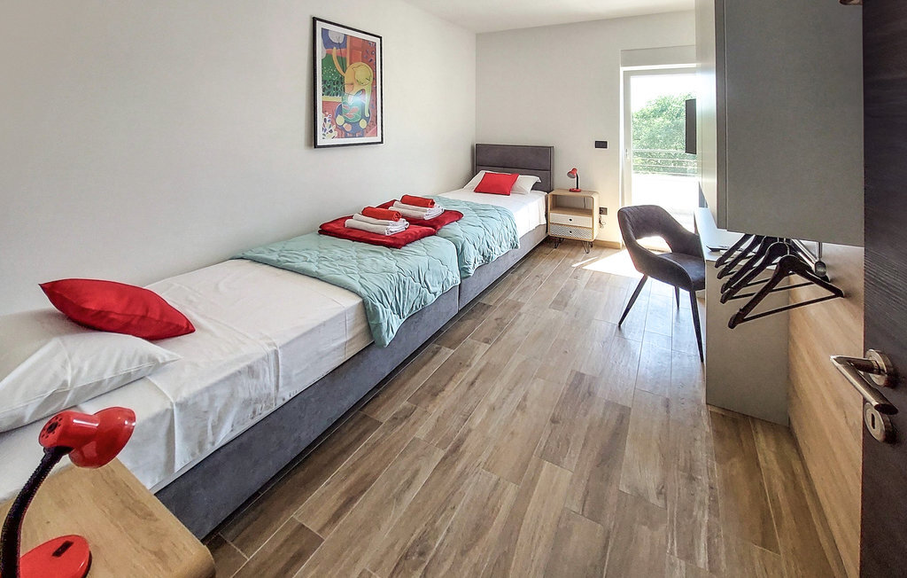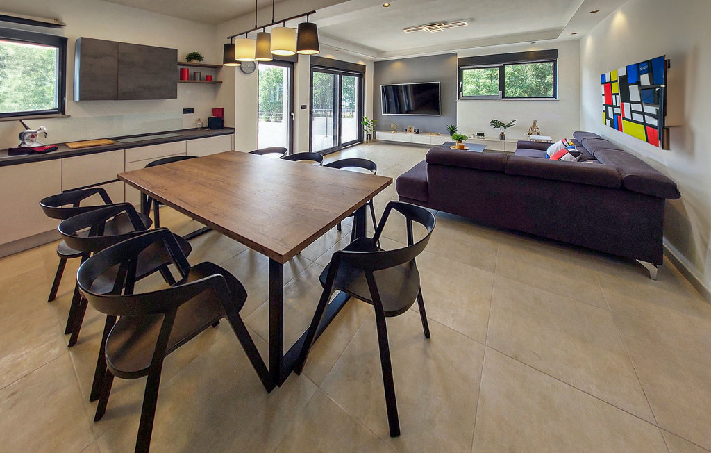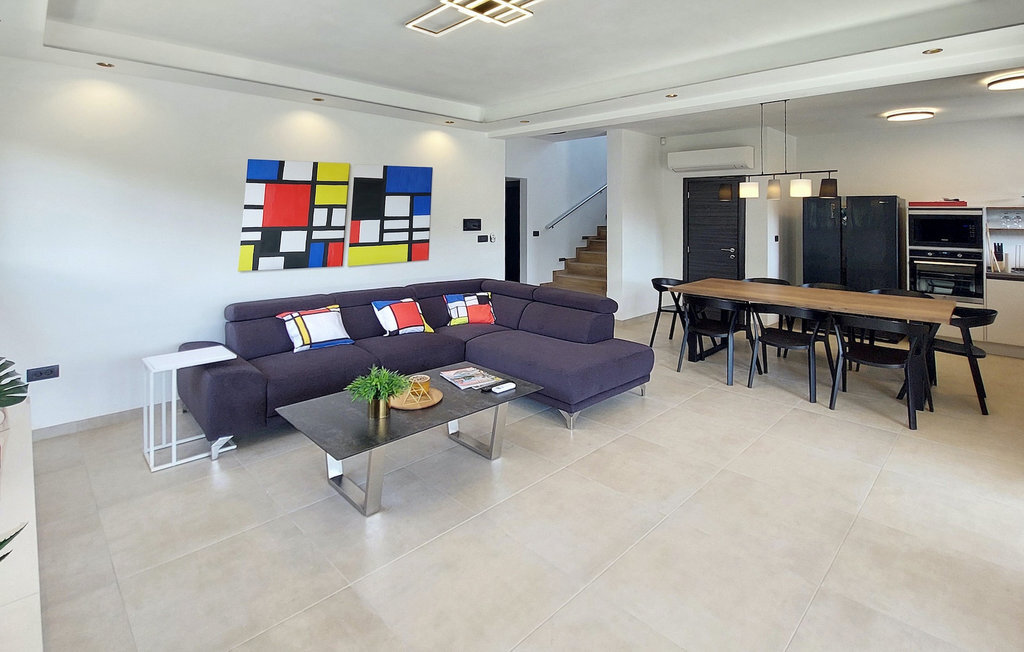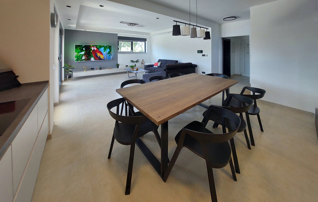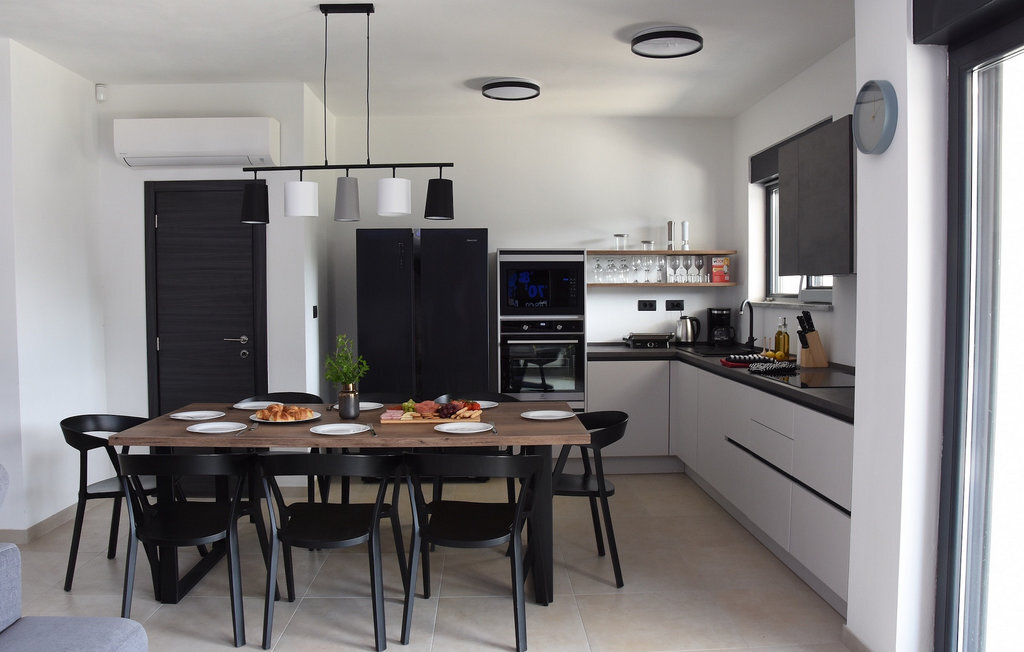 La magnifique villa Tara est un exemple d'architecture contemporaine avec des éléments de design moderne harmonieusement agencés. Elle se trouve dans le lotissement d'élite Mukalba à Medulin, à seulement 300 mètres de la mer. Elle peut accueillir jusqu'à 8 personnes dans 4 chambres et convient parfaitement pour des vacances reposantes avec vos proches. Le terrain est entièrement clôturé et offre une piscine privée qui vous invite à vous rafraîchir lors des chaudes journées d'été ainsi que des chaises longues sur lesquelles vous pouvez vous détendre. Passez la journée à la plage, qui se trouve à seulement 300 mètres de la villa. Un barbecue et un coin repas en plein air sont à votre disposition pour préparer de bons petits plats. Un parking privé pouvant accueillir jusqu'à 3 voitures est disponible. L'intérieur de la villa est aménagé avec style. Le grand espace de vie avec cuisine et salle à manger selon le concept "open space" est idéal pour les réunions d'amis ou de famille qui durent toute la journée. Au premier étage se trouvent quatre chambres confortables et deux salles de bains. La villa est entièrement climatisée et dispose d'un accès à Internet. La villa Tara est le choix idéal pour s'évader de la vie quotidienne.La villa Tara se trouve à Medulin, dans un excellent emplacement près de la mer. Le village se trouve à la pointe sud de la péninsule d'Istrie, à environ dix kilomètres de Pula. Pula est la plus grande ville historique d'Istrie, où se trouve le charmant amphithéâtre romain. De nombreuses manifestations cinématographiques y sont organisées, ainsi que des événements culturels et des concerts. La ville propose une excellente offre culinaire, une multitude de restaurants, de cafés et de boutiques. Pour tous les amoureux de la nature, une visite du parc national de Brijuni s'impose. Les magnifiques plages de sable et de galets des environs invitent à la détente. Explorez le riche monde sous-marin. Les villes médiévales comme Motovun, Groznjan et Buzet méritent une visite. Pour plus d'informations, parcourez notre guide MyIstria, où vous trouverez de nombreux conseils pour des excursions dans les environs.