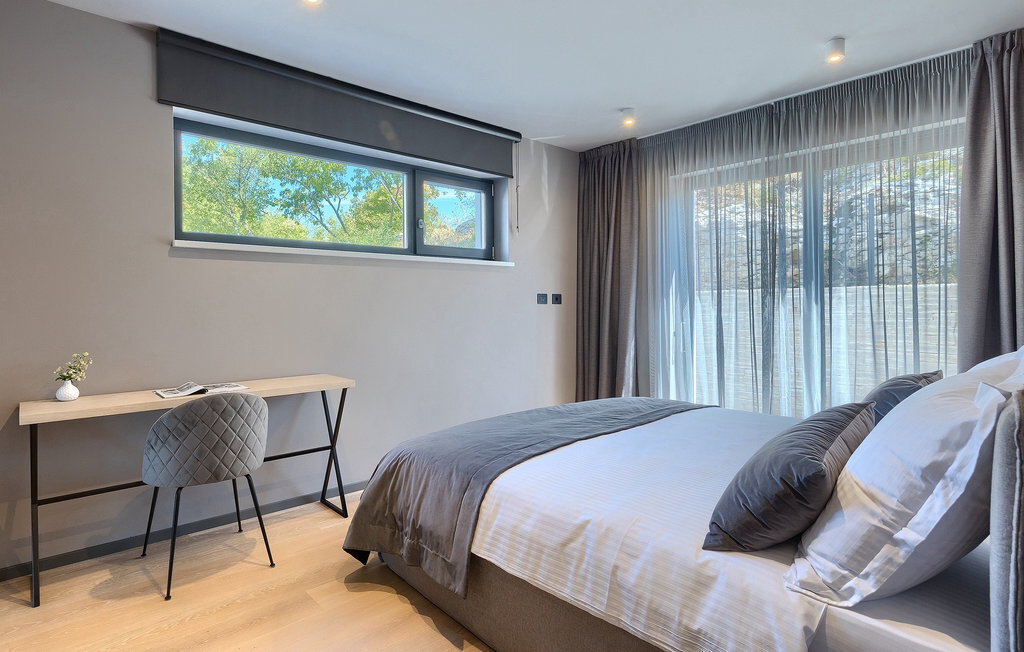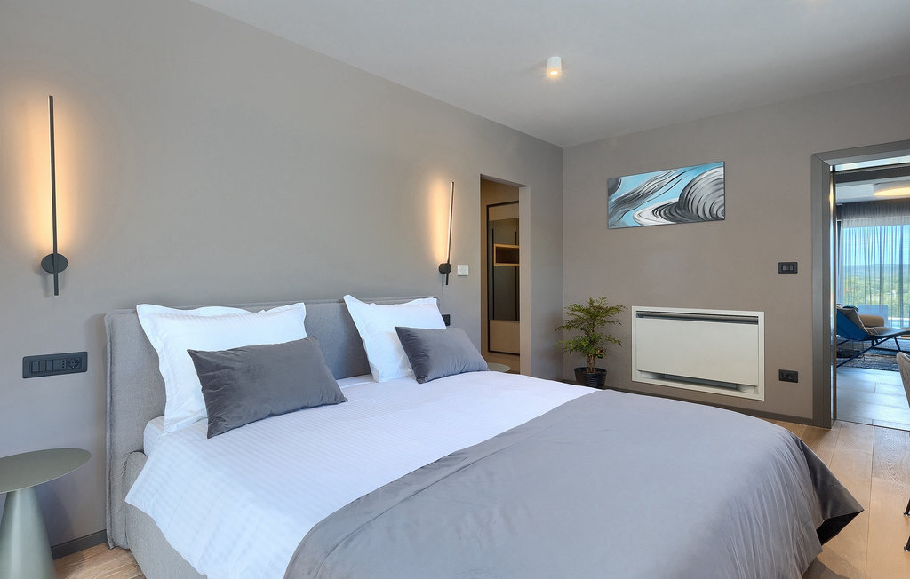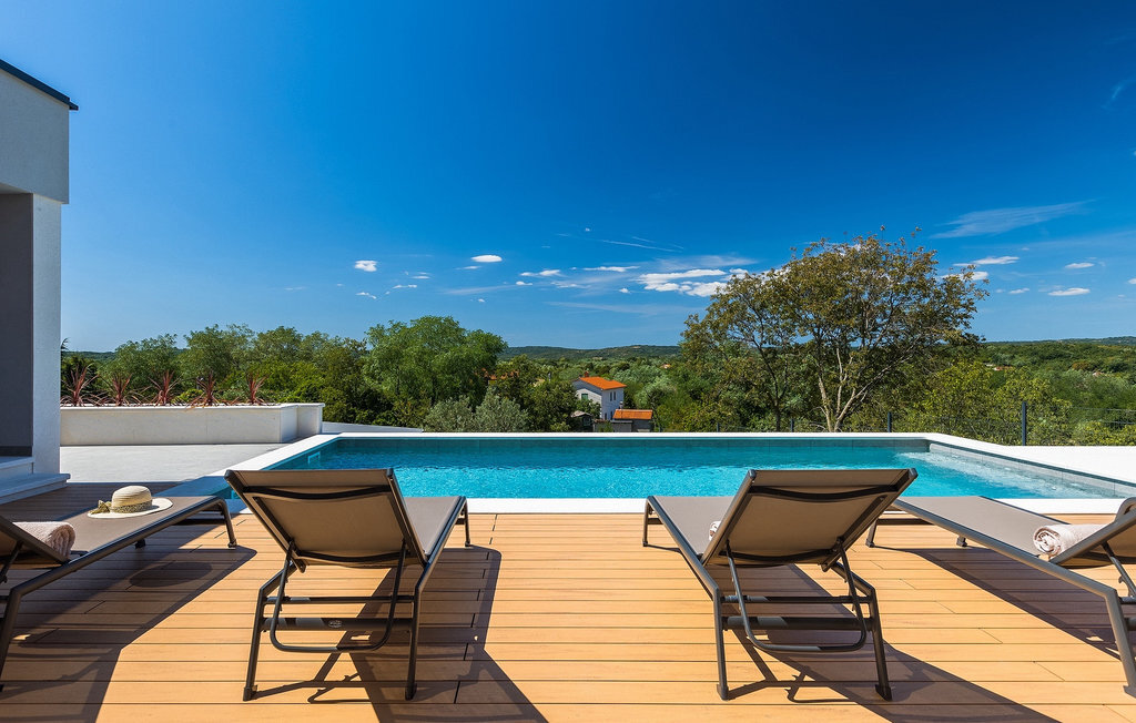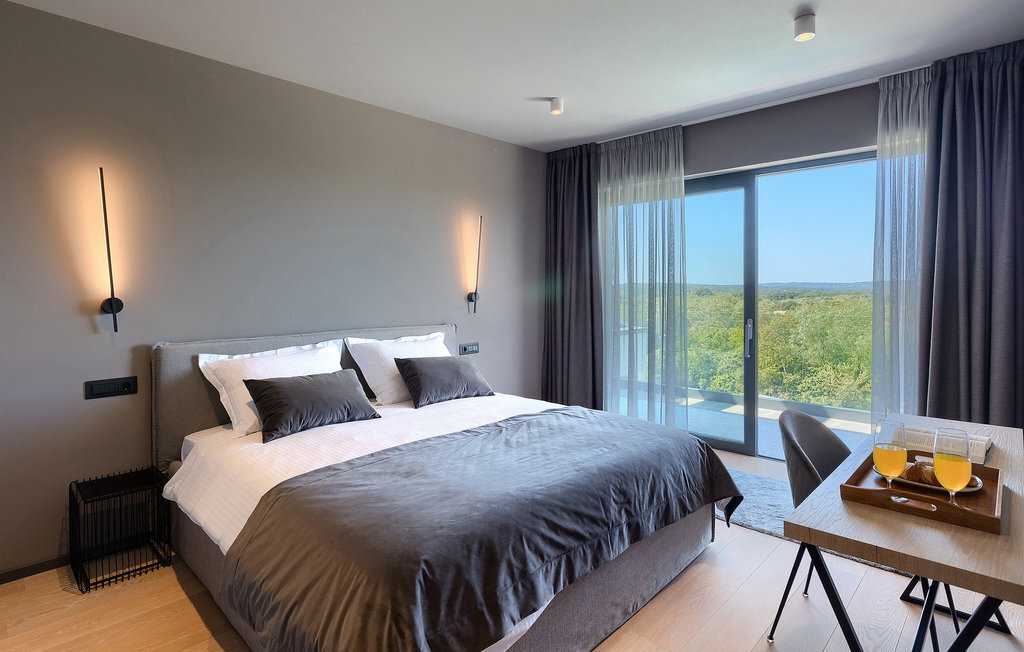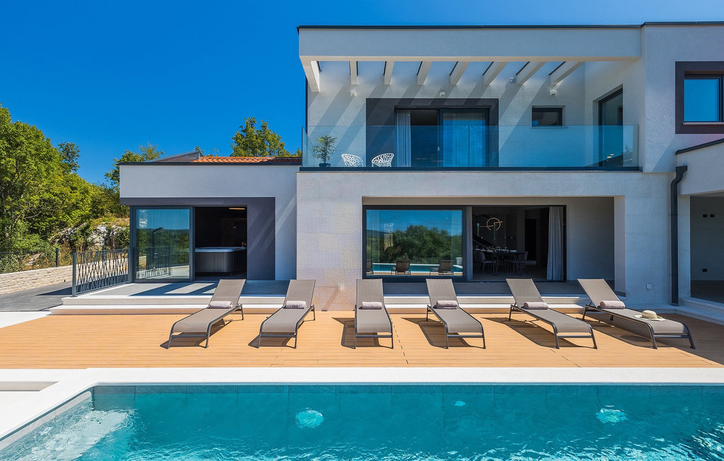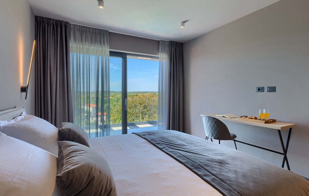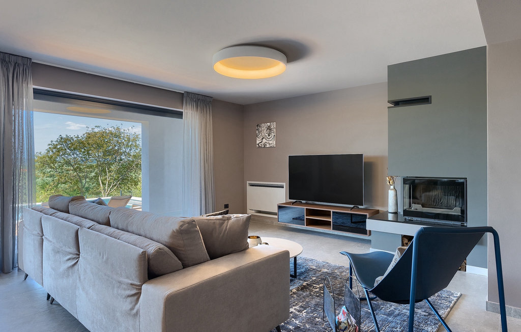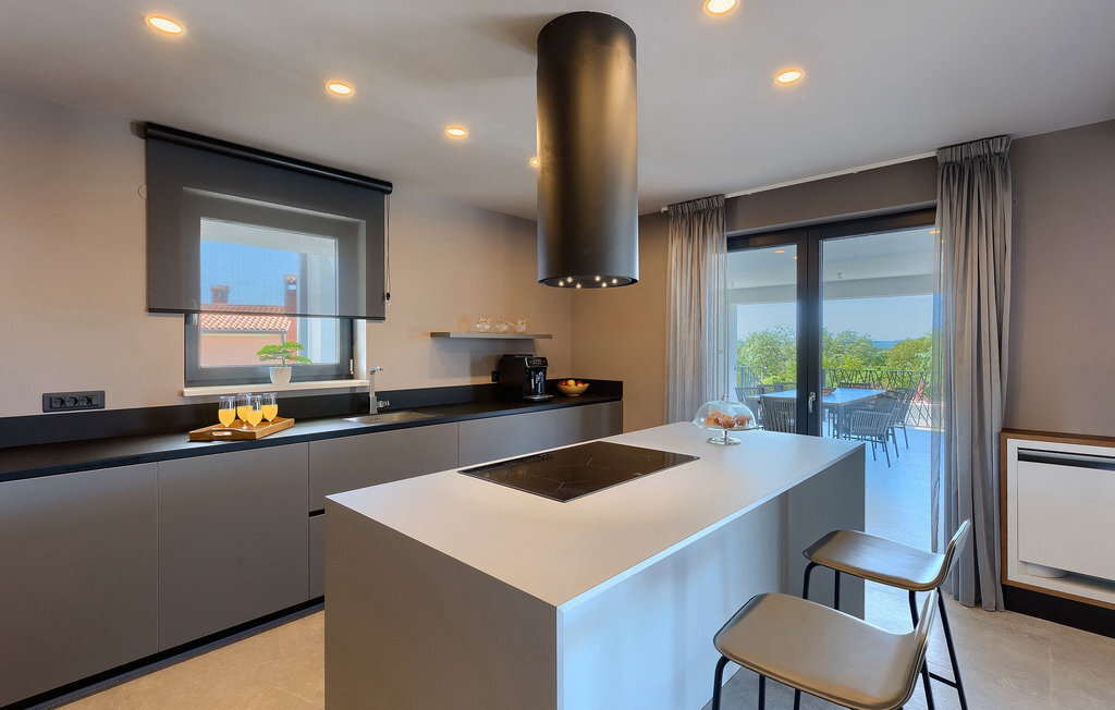 Offrez-vous un peu de luxe et passez vos vacances de rêve dans l'élégante villa La Guardia. Située dans un environnement calme et verdoyant près de Labin-Rabac, cette villa vous offre la détente à laquelle vous aspirez. La vue panoramique à couper le souffle sur le paysage verdoyant conquerra votre cœur. Votre deuxième regard se portera sur la magnifique piscine privée avec hydromassage qui se trouve au pied de la maison. Détendez-vous sur l'une des chaises longues au bord de la piscine ou dans l'espace bien-être de la Villa La Guardia - avec sauna et jacuzzi. Une grande terrasse couverte avec une petite cuisine d'été et un barbecue au charbon de bois est l'endroit idéal pour savourer de délicieux repas en famille ou entre amis et pour prolonger les longues soirées d'été. L'intérieur de la villa est élégant et aménagé avec goût. La grande baie vitrée de l'espace de vie ouvert rend la pièce à vivre lumineuse et aérée. Le rez-de-chaussée se compose de ce beau salon avec cheminée, d'une cuisine moderne entièrement équipée, d'une salle à manger pouvant accueillir jusqu'à 8 invités, d'une chambre confortable avec sa propre salle de bain chic et d'une oasis de bien-être avec sauna, jacuzzi et salle de bain correspondante. Au premier étage se trouvent trois chambres à coucher confortables, chacune avec sa propre salle de bain, ainsi qu'un agréable coin lecture. Les chambres climatisées sont toutes équipées de grands lits doubles confortables qui promettent un sommeil réparateur. Profitez de la vue fantastique depuis le balcon pour prendre votre première tasse de café le matin ou pour contempler les étoiles le soir. La Villa La Guardia est l'endroit que vous cherchez pour passer des vacances grandioses avec vos proches. N'hésitez plus, offrez-vous une touche de luxe et réservez la Villa La Guardia.La Villa La Guardia est située à umber, un quartier calme près de Labin-Rabac, à seulement 15 km de la plage la plus proche à Rabac. Entourée de collines et de champs verdoyants, vous trouverez ici la tranquillité que vous recherchez. Tout ce dont vous avez besoin pour la vie quotidienne se trouve à une distance d'environ 4-7 km. Le restaurant le plus proche se trouve à seulement 2 km. Découvrez cette belle région en vélo, explorez les plages et les baies de la côte est de l'Istrie ou visitez les nombreux petits villages environnants qui ont leur propre charme et où vous serez accueillis par des habitants accueillants. Faites une excursion à Pazin avec son célèbre château situé au bord d'une gorge profonde ou au parc naturel d'Ucka et profitez d'une vue à couper le souffle depuis son sommet. Ne manquez pas l'offre gastronomique variée et goûtez aux saveurs de l'Istrie.