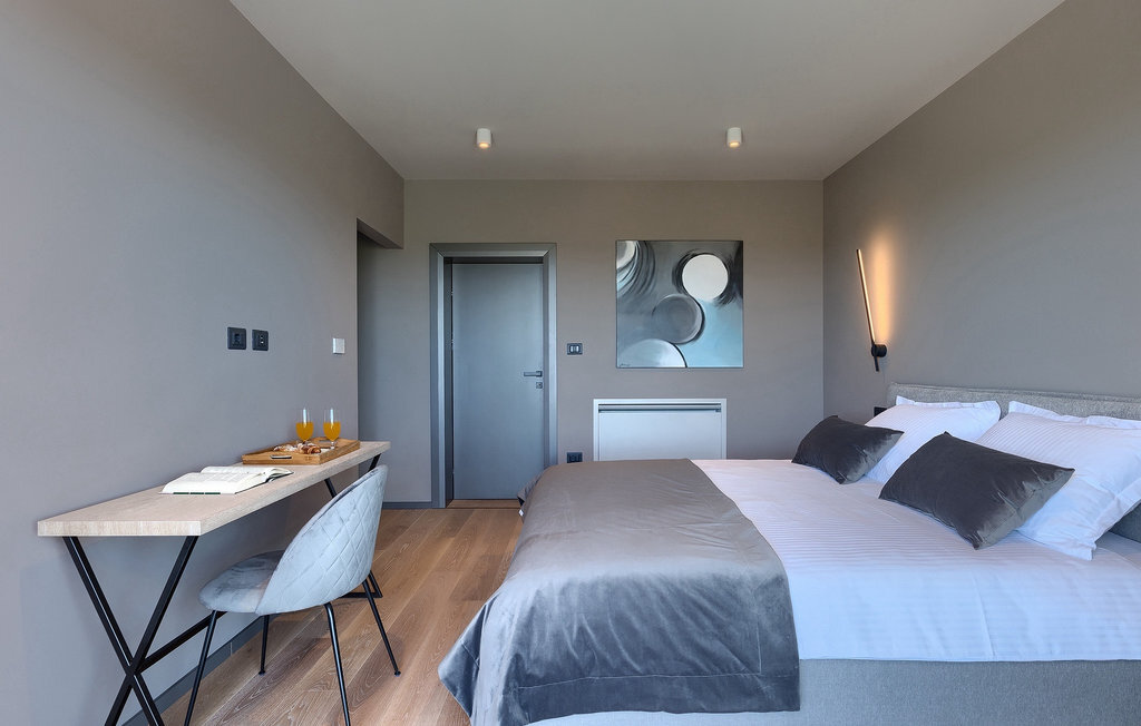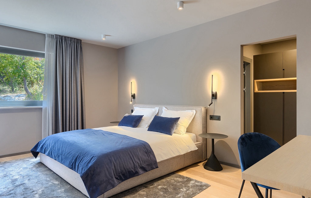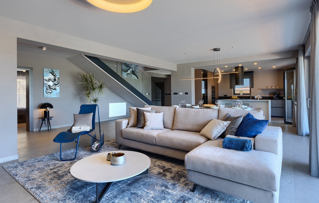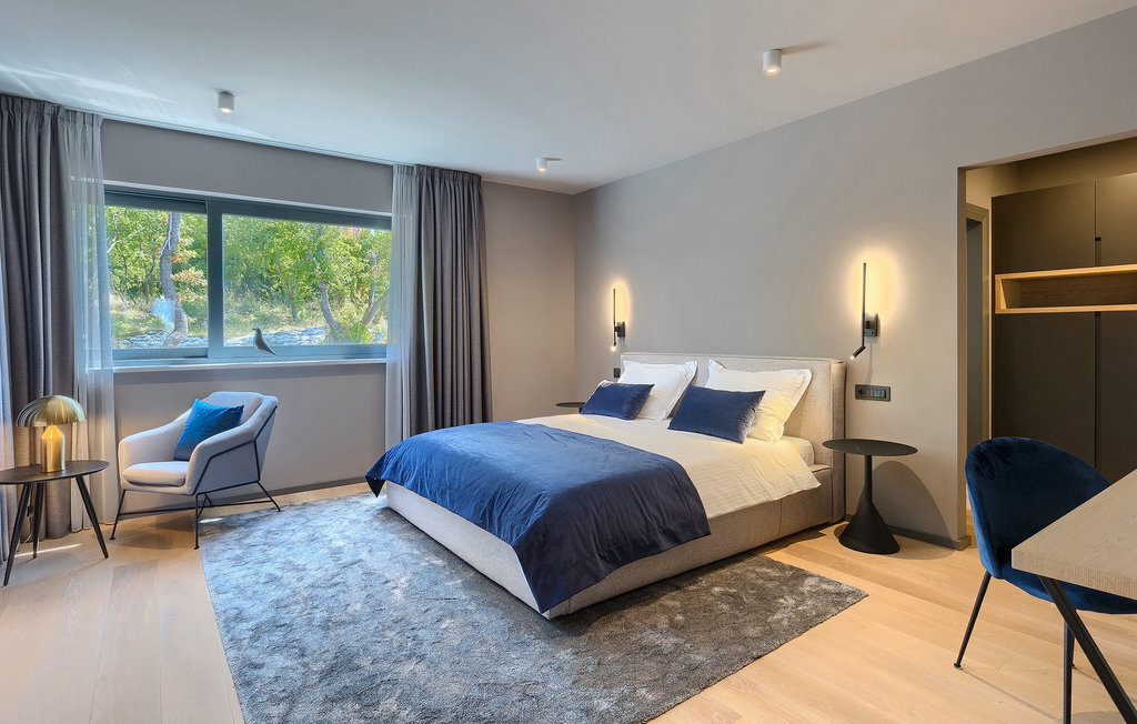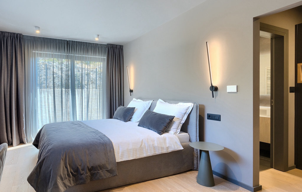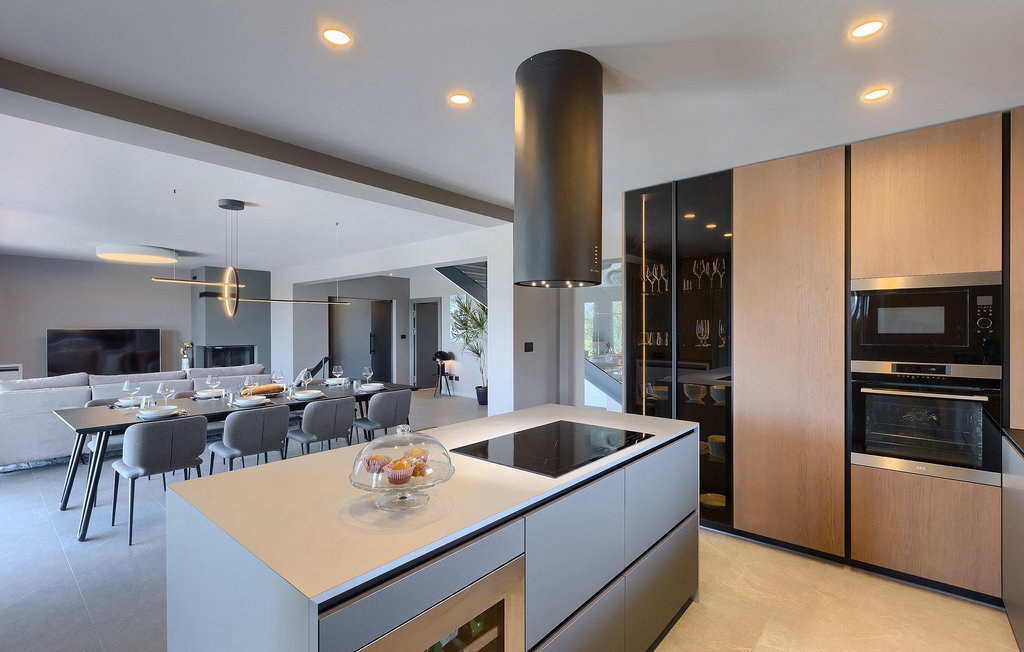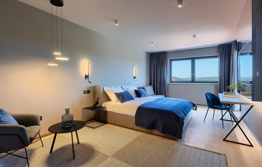 Offrez-vous un peu de luxe et passez vos vacances de rêve dans l'élégante villa La Guardia. Située dans un environnement calme et verdoyant près de Labin-Rabac, cette villa vous offre la détente à laquelle vous aspirez. La vue panoramique à couper le souffle sur le paysage verdoyant conquerra votre cœur. Votre deuxième regard se portera sur la magnifique piscine privée avec hydromassage qui se trouve au pied de la maison. Détendez-vous sur l'une des chaises longues au bord de la piscine ou dans l'espace bien-être de la Villa La Guardia - avec sauna et jacuzzi. Une grande terrasse couverte avec une petite cuisine d'été et un barbecue au charbon de bois est l'endroit idéal pour savourer de délicieux repas en famille ou entre amis et pour prolonger les longues soirées d'été. L'intérieur de la villa est élégant et aménagé avec goût. La grande baie vitrée de l'espace de vie ouvert rend la pièce à vivre lumineuse et aérée. Le rez-de-chaussée se compose de ce beau salon avec cheminée, d'une cuisine moderne entièrement équipée, d'une salle à manger pouvant accueillir jusqu'à 8 invités, d'une chambre confortable avec sa propre salle de bain chic et d'une oasis de bien-être avec sauna, jacuzzi et salle de bain correspondante. Au premier étage se trouvent trois chambres à coucher confortables, chacune avec sa propre salle de bain, ainsi qu'un agréable coin lecture. Les chambres climatisées sont toutes équipées de grands lits doubles confortables qui promettent un sommeil réparateur. Profitez de la vue fantastique depuis le balcon pour prendre votre première tasse de café le matin ou pour contempler les étoiles le soir. La Villa La Guardia est l'endroit que vous cherchez pour passer des vacances grandioses avec vos proches. N'hésitez plus, offrez-vous une touche de luxe et réservez la Villa La Guardia.La Villa La Guardia est située à umber, un quartier calme près de Labin-Rabac, à seulement 15 km de la plage la plus proche à Rabac. Entourée de collines et de champs verdoyants, vous trouverez ici la tranquillité que vous recherchez. Tout ce dont vous avez besoin pour la vie quotidienne se trouve à une distance d'environ 4-7 km. Le restaurant le plus proche se trouve à seulement 2 km. Découvrez cette belle région en vélo, explorez les plages et les baies de la côte est de l'Istrie ou visitez les nombreux petits villages environnants qui ont leur propre charme et où vous serez accueillis par des habitants accueillants. Faites une excursion à Pazin avec son célèbre château situé au bord d'une gorge profonde ou au parc naturel d'Ucka et profitez d'une vue à couper le souffle depuis son sommet. Ne manquez pas l'offre gastronomique variée et goûtez aux saveurs de l'Istrie.