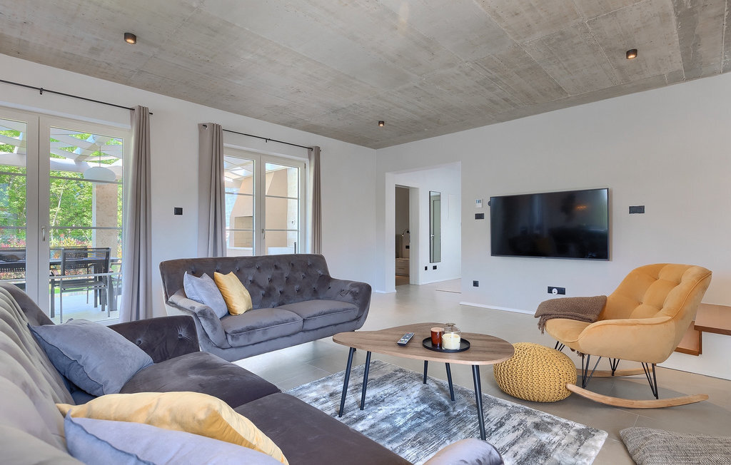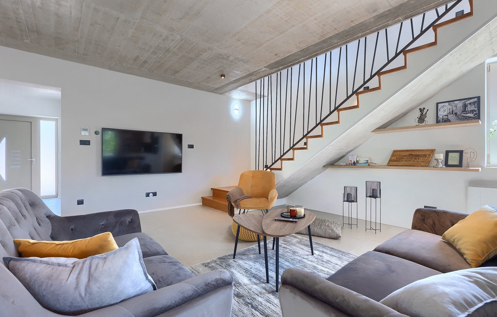 Le jardin est entouré d'arbres et de plantes et offre un cadre naturel idyllique dans lequel vous pourrez profiter d'une baignade rafraîchissante. Autour de la piscine, vous pouvez profiter du soleil sur 6 chaises longues ou vous détendre dans le coin salon ombragé à côté de la villa. Sur un côté de la villa se trouve une cuisine extérieure avec barbecue et table à manger pouvant accueillir jusqu'à 8 personnes, idéale pour les grillades en plein air. À l'intérieur de la villa, le salon élégamment meublé avec télévision est éclairé de tous côtés par la lumière naturelle grâce aux grandes fenêtres. Dans la même zone se trouve une cuisine entièrement équipée avec un îlot de cuisine et une autre table à manger pouvant accueillir jusqu'à 8 personnes. À cet étage, vous trouverez l'une des chambres doubles confortables avec télévision et climatisation ainsi qu'une des salles de bains. Un étage plus haut, en empruntant l'escalier, il y a 3 autres chambres doubles avec TV et climatisation ainsi que 2 autres salles de bain. Le grand balcon couvert est parfait pour passer une belle matinée avec une tasse de café et une vue sur la piscine et le jardin. Villa Legro est l'endroit parfait pour des vacances reposantes avec votre famille.