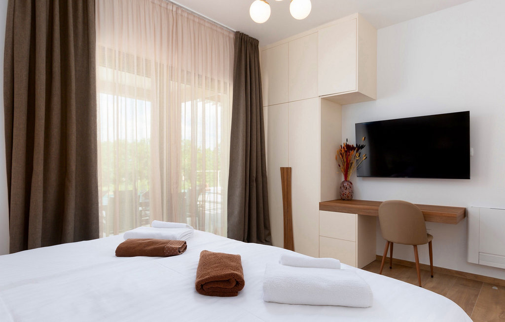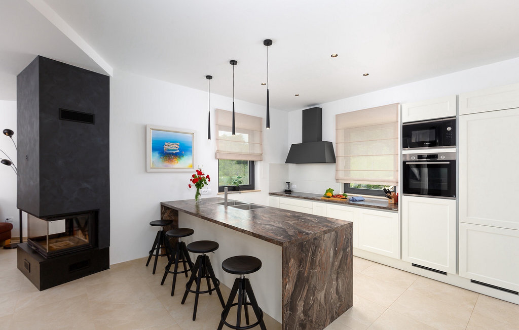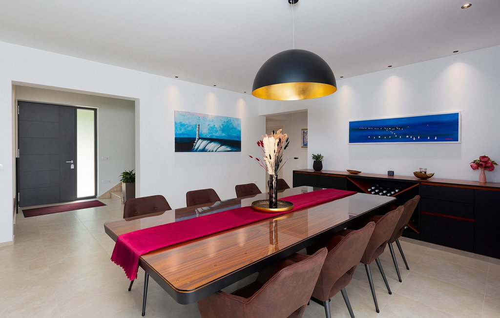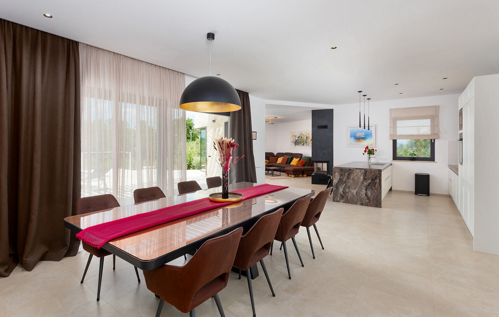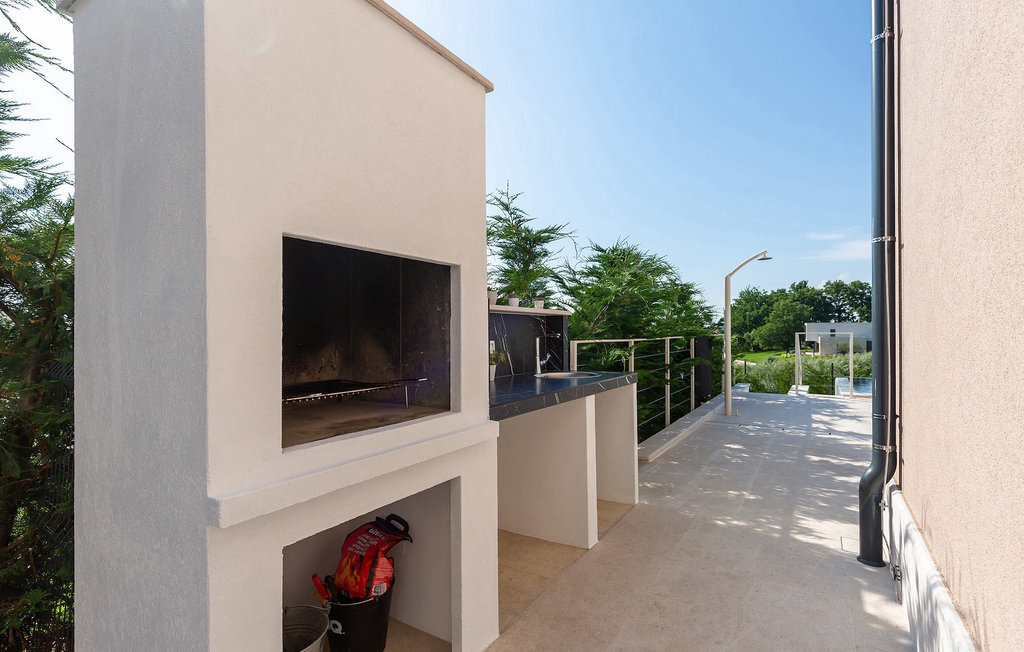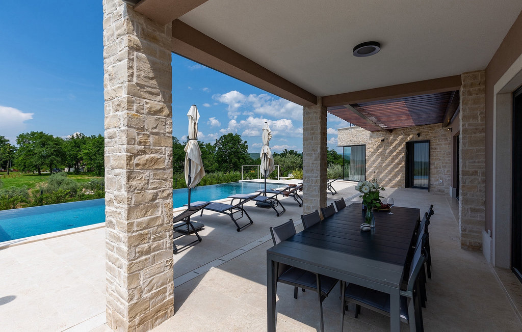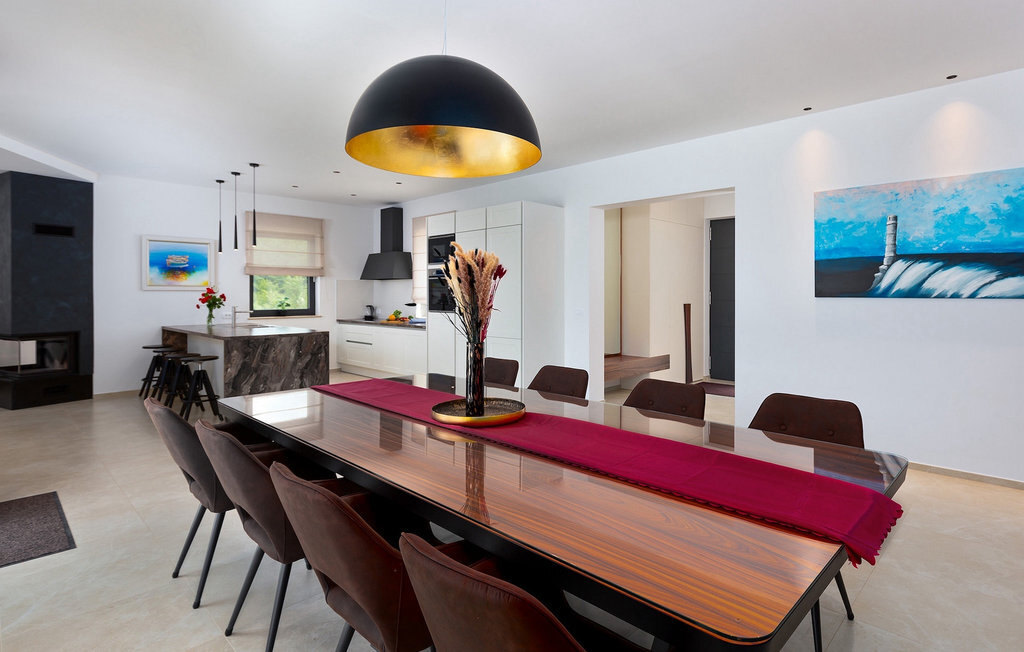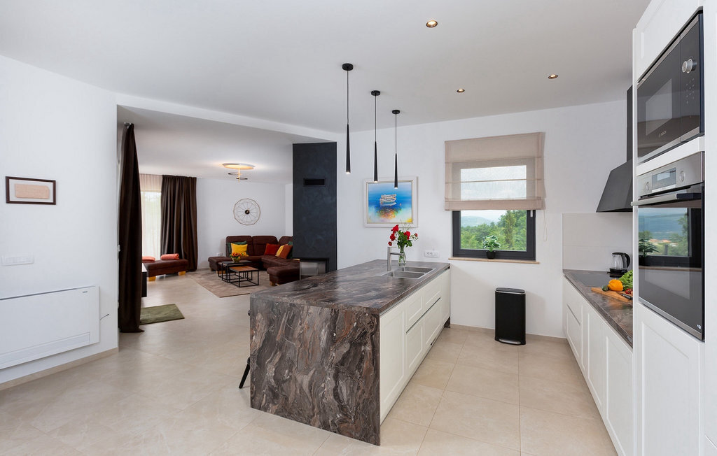 La Villa Faloniga est une magnifique villa de vacances située dans le pittoresque village de Vizinada en Istrie. La villa est idéale pour des vacances tranquilles en famille ou entre amis. Cette villa se caractérise par une impressionnante piscine avec vue sur la verdure, d'une superficie de 68 m2. La piscine se trouve sur la terrasse principale et est idéale pour se détendre et se rafraîchir pendant la chaleur de l'été. Profitez du soleil d'Istrie sur les chaises longues au bord de la piscine. Préparez des plats traditionnels d'Istrie sur le barbecue pour toute la famille. Passez des réunions inoubliables dans l'espace couvert au bord de la piscine autour d'une table de 8 places. L'intérieur de la villa, avec son bel aménagement moderne, ne vous décevra certainement pas. Au rez-de-chaussée de la villa, vous trouverez un espace ouvert avec une cuisine entièrement équipée pour la préparation de spécialités de fruits de mer, une salle à manger et un salon spacieux. La première chambre est conçue pour le repos et les rêves paisibles, elle est équipée d'un lit double et d'une salle de bain privée au rez-de-chaussée. Il y a également des toilettes séparées au rez-de-chaussée. Le premier étage abrite les autres chambres à coucher. Deux chambres disposent de lits doubles et de salles de bain privées, tandis que la dernière chambre dispose de deux lits simples. Sur les terrasses du premier étage, vous pourrez profiter de la matinée en buvant un café et en admirant la vue sur la verdure. Passez des vacances parfaites avec vos proches à la Villa Faloniga dans la magie de l'Istrie. La Villa Faloniga se trouve dans le village de Vizinada en Istrie. Ce village pittoresque est situé sur une colline surplombant la vallée de la rivière Mirna et est riche en monuments culturels et en offre gastronomique unique. Goûtez à l'huile d'olive extra-vierge, au prosciutto d'Istrie et aux fugues faites maison. Faites connaissance avec la population locale et assistez aux nombreuses manifestations de Vizinad. Les amoureux de la nature seront ravis de la beauté naturelle que vous pourrez découvrir en empruntant les nombreux sentiers de vélo et de randonnée. Explorez cette région en empruntant le célèbre sentier de randonnée Parenzana. Visitez la charmante ville de Motovun, qui vous séduira par ses monuments, ses ruelles étroites et ses maisons en pierre. Ne manquez pas le festival du film de Motovun. Ne manquez pas de visiter les principaux centres touristiques d'Istrie : Rovinj, Porec et Pula. À Rovinj, vous verrez l'église baroque de St. À Porec, visitez la basilique byzantine d'Euphrasius, inscrite au patrimoine mondial de l'UNESCO. Ne manquez pas de visiter la plus grande ville d'Istrie, Pula, où vous pourrez voir l'arène de Pula, le temple d'Auguste, la Porte d'Or et de nombreux autres monuments culturels et historiques. Pour finir, explorez l'archipel de Brijuni avec le célèbre parc national de Brijuni.