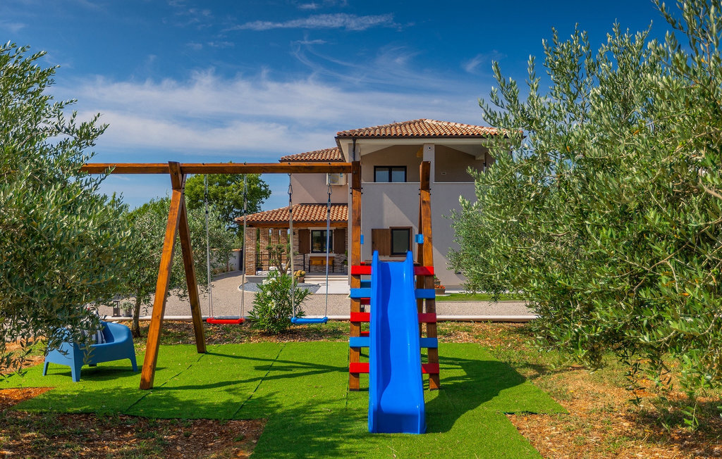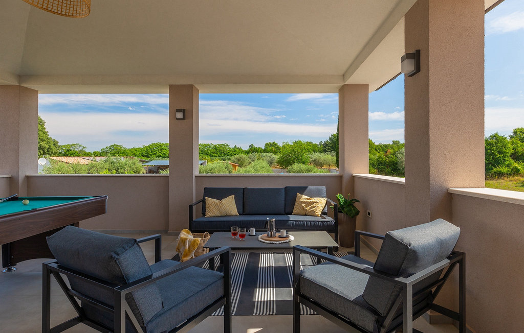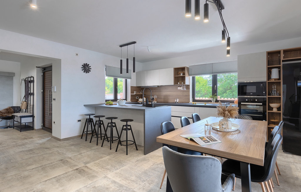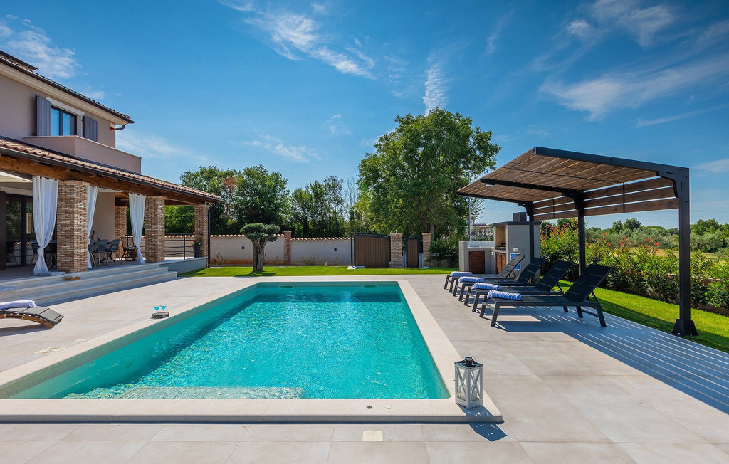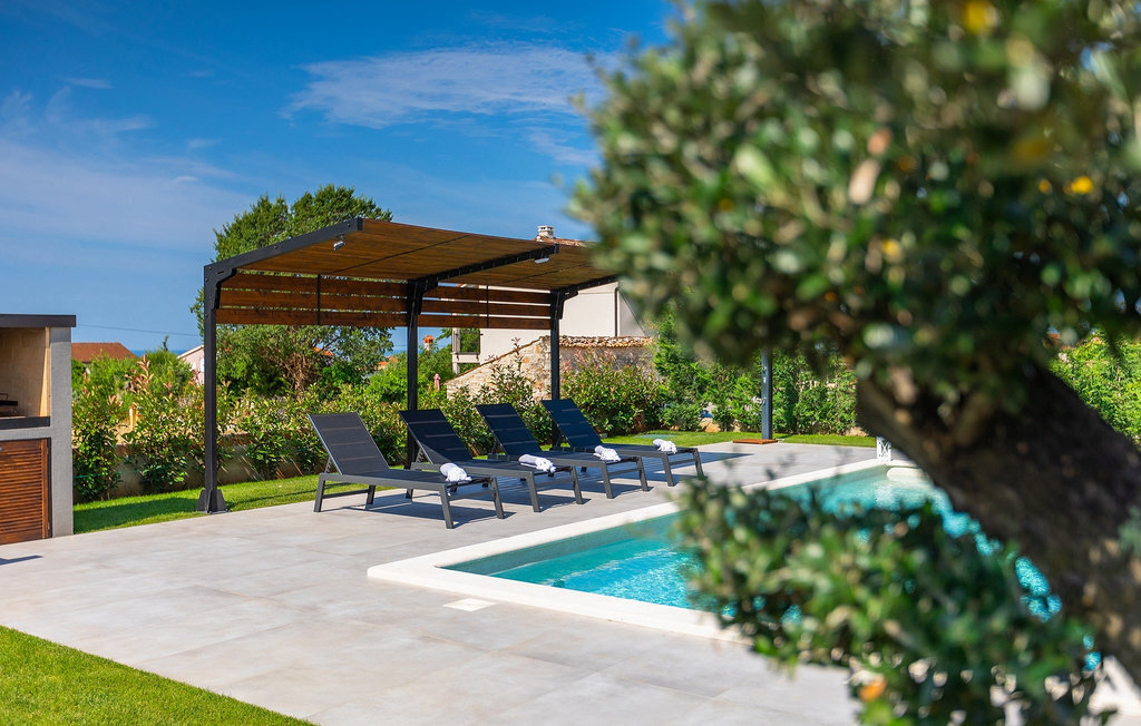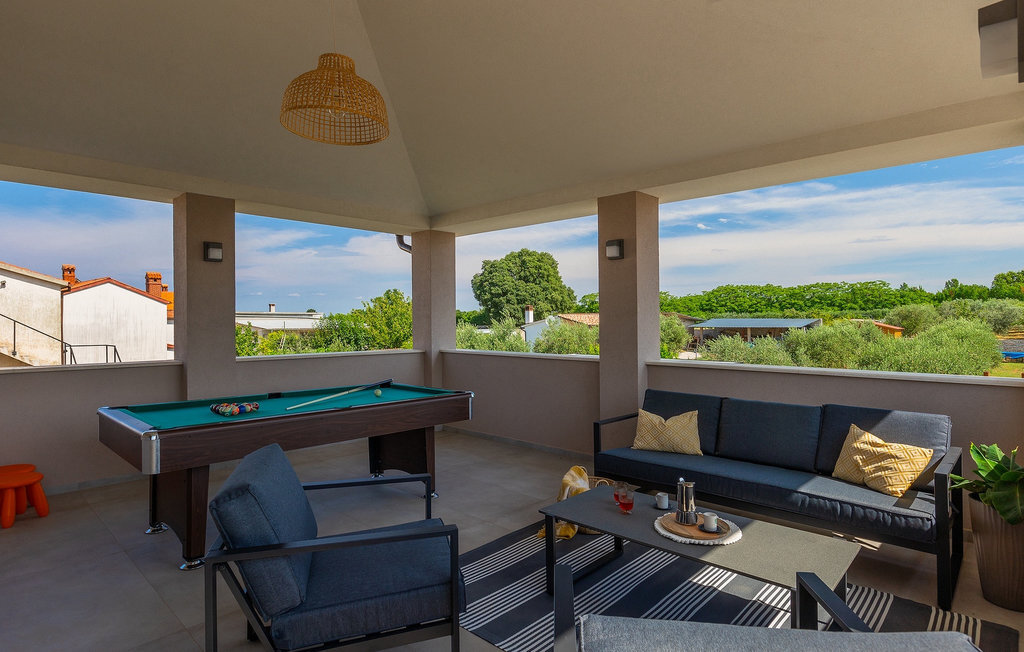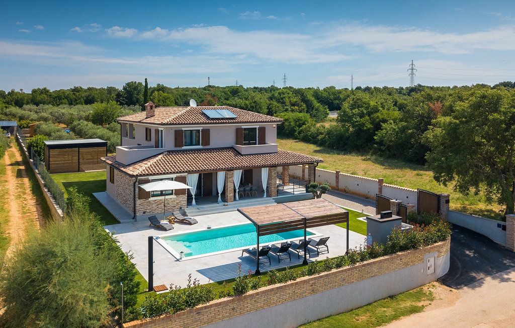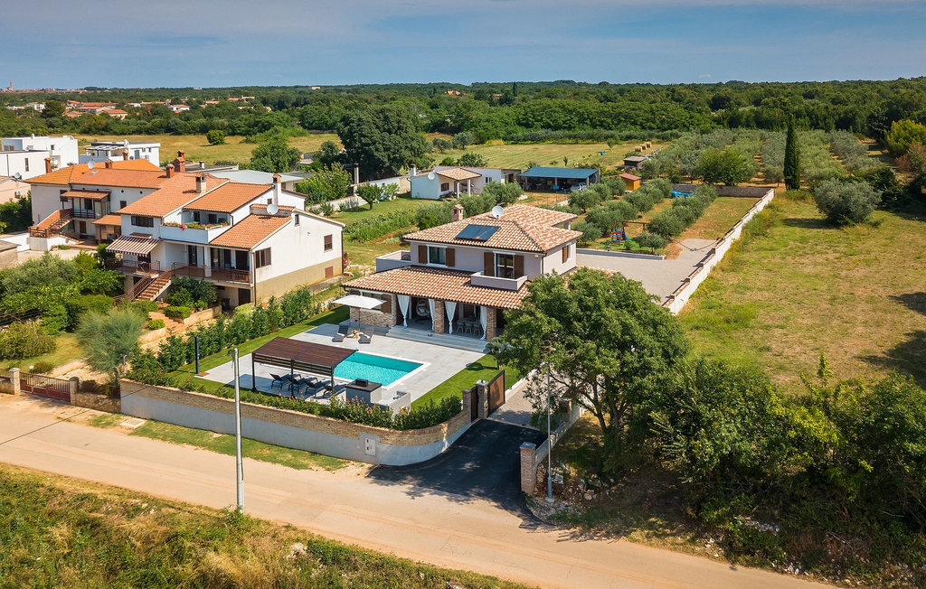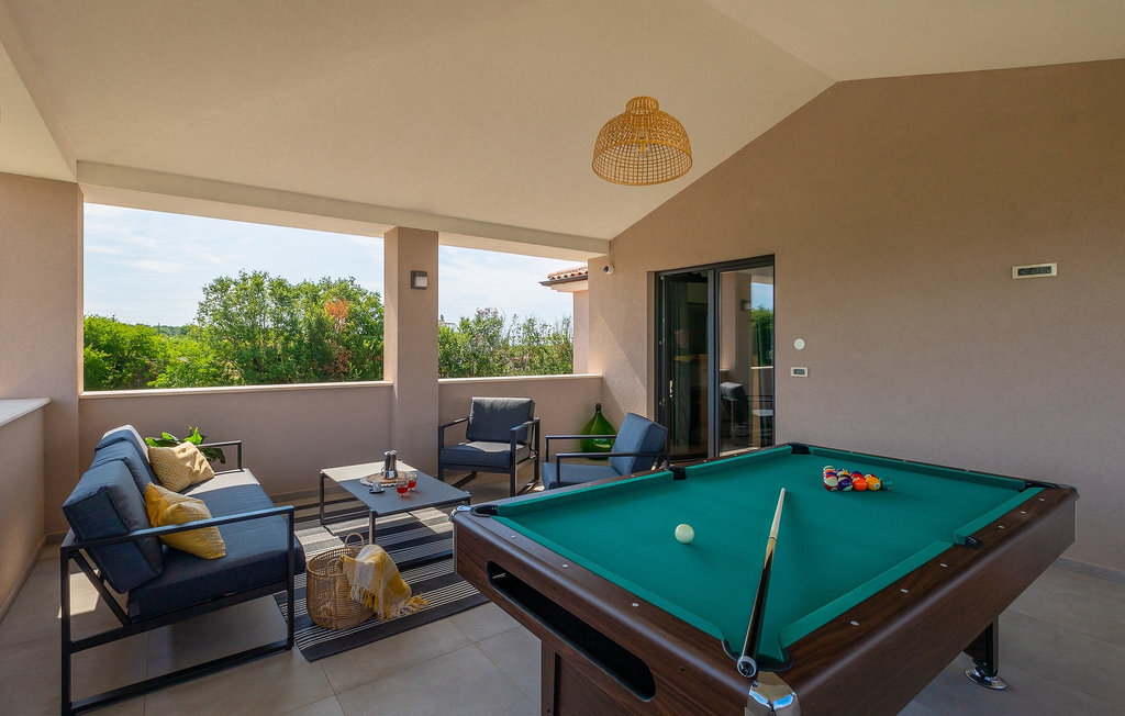 Située à Galizana, près de Pula, la Villa Delfar est la villa qu'il vous faut si vous êtes à la recherche de vacances luxueuses, calmes et actives. Elle vous offre en premier lieu une fantastique piscine privée. En outre, vous disposez d'un sauna et d'une salle de fitness privée avec tapis roulant et vélo d'appartement. Les propriétaires de la villa ont également accordé beaucoup d'importance à votre confort, car toute la villa est équipée du chauffage au sol et de trois chambres confortables avec salle de bain privée et télévision par satellite. Au rez-de-chaussée, vous trouverez une cuisine moderne, élégante et entièrement équipée ainsi qu'un espace ouvert avec un salon et une salle à manger modernes et confortables pour 8 personnes. Même si tout cela est étonnant, vous passerez probablement quand même la plupart de votre temps à l'extérieur, où vous trouverez une table à manger en plein air, un barbecue, une table de billard, une aire de jeux pour enfants et bien plus encore. Détendez-vous et profitez-en ! Galizana est une petite localité située près de Pula, la plus grande ville d'Istrie, connue pour ses sites historiques. L'histoire de Galizana remonte à l'époque romaine. Aujourd'hui, c'est un petit village de 1500 habitants, avec l'église paroissiale Saint-Roch datant du 17e siècle au centre du village. Comme il s'agit d'une région agricole, la population pratique principalement la viticulture, l'oléiculture et l'élevage, et produit de l'huile d'olive, du fromage de chèvre et d'autres produits locaux. L'avantage de Galizana est sa situation tranquille dans le paysage typique de l'Istrie et sa proximité avec de nombreuses commodités attrayantes qui ne sont qu'à une courte distance en voiture. Certaines d'entre elles sont l'amphithéâtre romain du 1er siècle, le parc national des îles Brijuni. Choisissez votre place idéale sur une plage de galets, de pierres ou de sable sur la côte entre Fazana et Valbadon ou visitez les plages escarpées du parc naturel de Kamenjak, l'endroit le plus au sud de l'Istrie. Découvrez l'intérieur de l'Istrie et ses villes de montagne médiévales au riche patrimoine, aux traditions et aux spécialités gastronomiques.