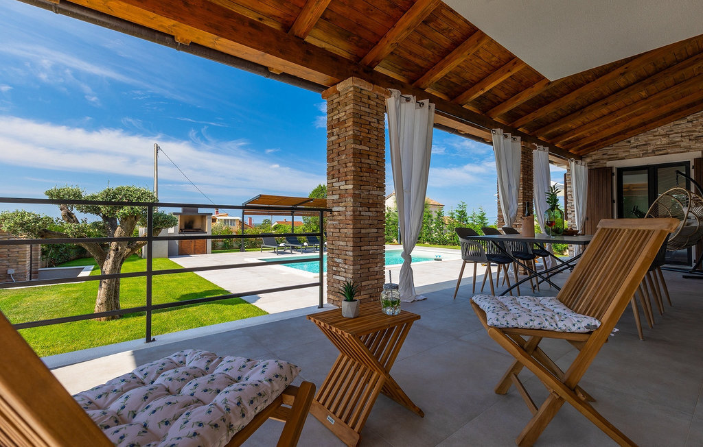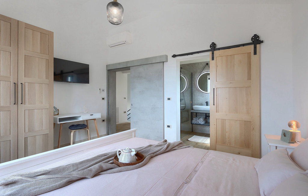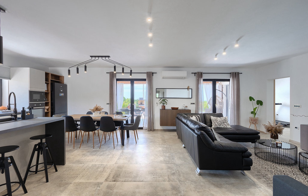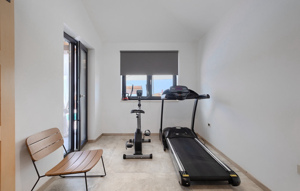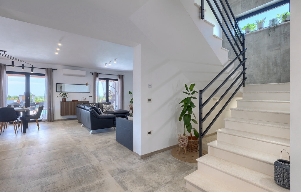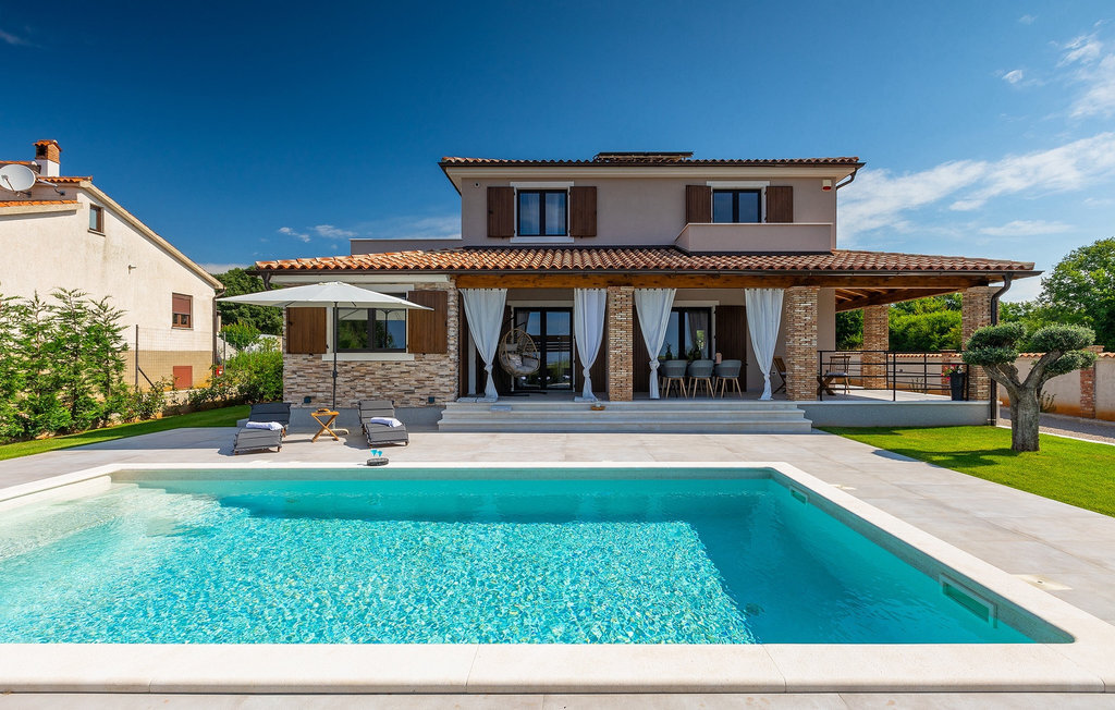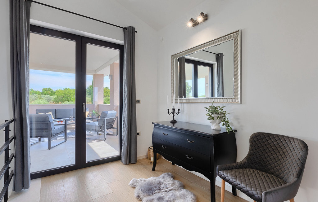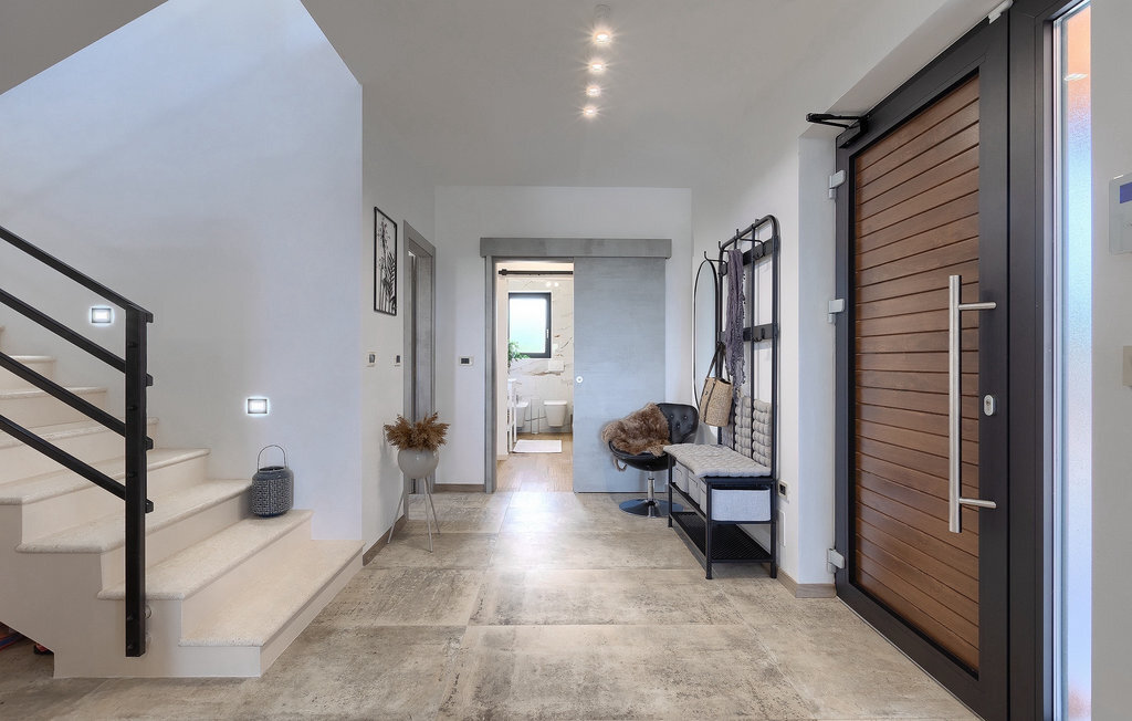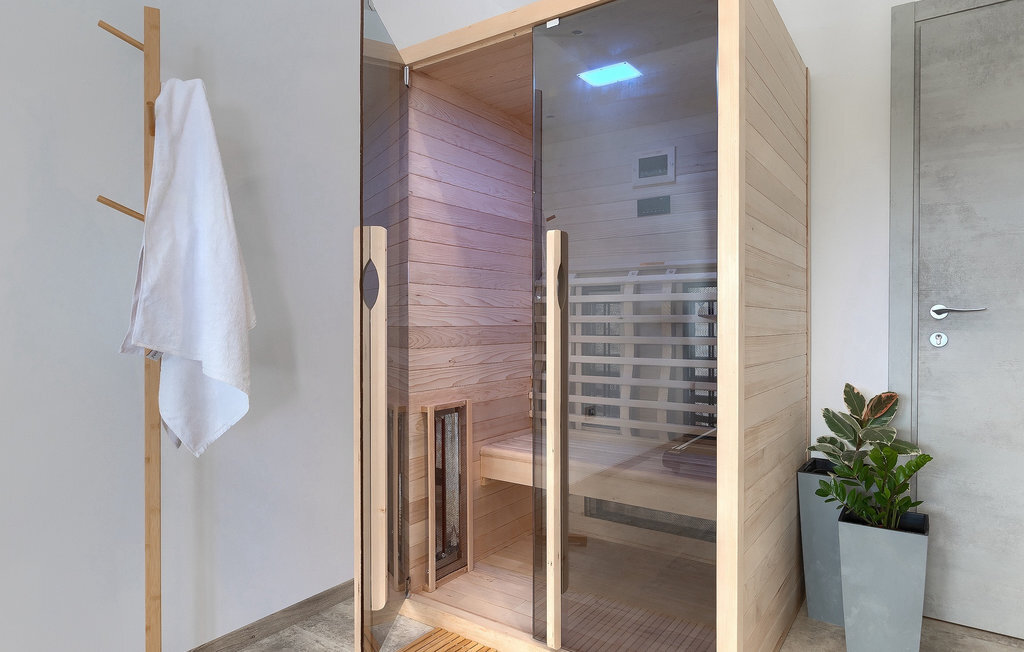 Située à Galizana, près de Pula, la Villa Delfar est la villa qu'il vous faut si vous êtes à la recherche de vacances luxueuses, calmes et actives. Elle vous offre en premier lieu une fantastique piscine privée. En outre, vous disposez d'un sauna et d'une salle de fitness privée avec tapis roulant et vélo d'appartement. Les propriétaires de la villa ont également accordé beaucoup d'importance à votre confort, car toute la villa est équipée du chauffage au sol et de trois chambres confortables avec salle de bain privée et télévision par satellite. Au rez-de-chaussée, vous trouverez une cuisine moderne, élégante et entièrement équipée ainsi qu'un espace ouvert avec un salon et une salle à manger modernes et confortables pour 8 personnes. Même si tout cela est étonnant, vous passerez probablement quand même la plupart de votre temps à l'extérieur, où vous trouverez une table à manger en plein air, un barbecue, une table de billard, une aire de jeux pour enfants et bien plus encore. Détendez-vous et profitez-en ! Galizana est une petite localité située près de Pula, la plus grande ville d'Istrie, connue pour ses sites historiques. L'histoire de Galizana remonte à l'époque romaine. Aujourd'hui, c'est un petit village de 1500 habitants, avec l'église paroissiale Saint-Roch datant du 17e siècle au centre du village. Comme il s'agit d'une région agricole, la population pratique principalement la viticulture, l'oléiculture et l'élevage, et produit de l'huile d'olive, du fromage de chèvre et d'autres produits locaux. L'avantage de Galizana est sa situation tranquille dans le paysage typique de l'Istrie et sa proximité avec de nombreuses commodités attrayantes qui ne sont qu'à une courte distance en voiture. Certaines d'entre elles sont l'amphithéâtre romain du 1er siècle, le parc national des îles Brijuni. Choisissez votre place idéale sur une plage de galets, de pierres ou de sable sur la côte entre Fazana et Valbadon ou visitez les plages escarpées du parc naturel de Kamenjak, l'endroit le plus au sud de l'Istrie. Découvrez l'intérieur de l'Istrie et ses villes de montagne médiévales au riche patrimoine, aux traditions et aux spécialités gastronomiques.