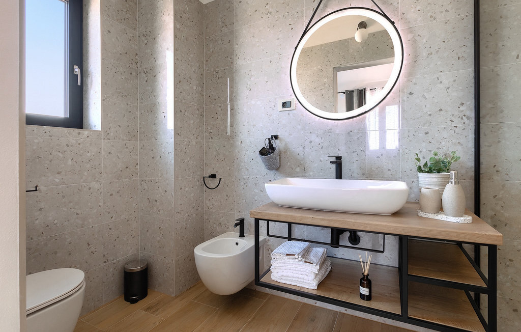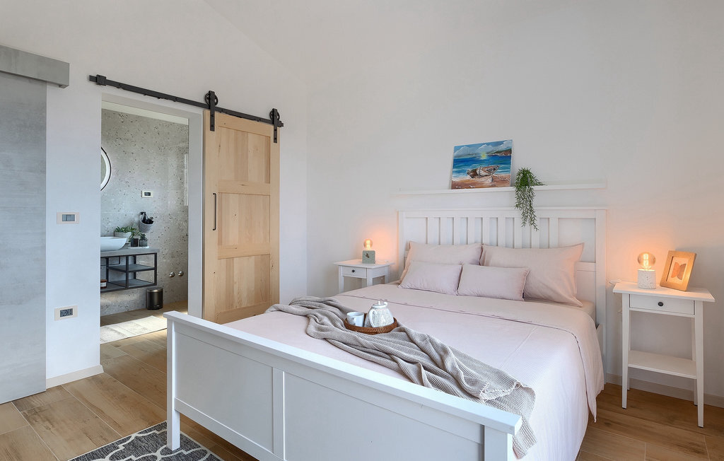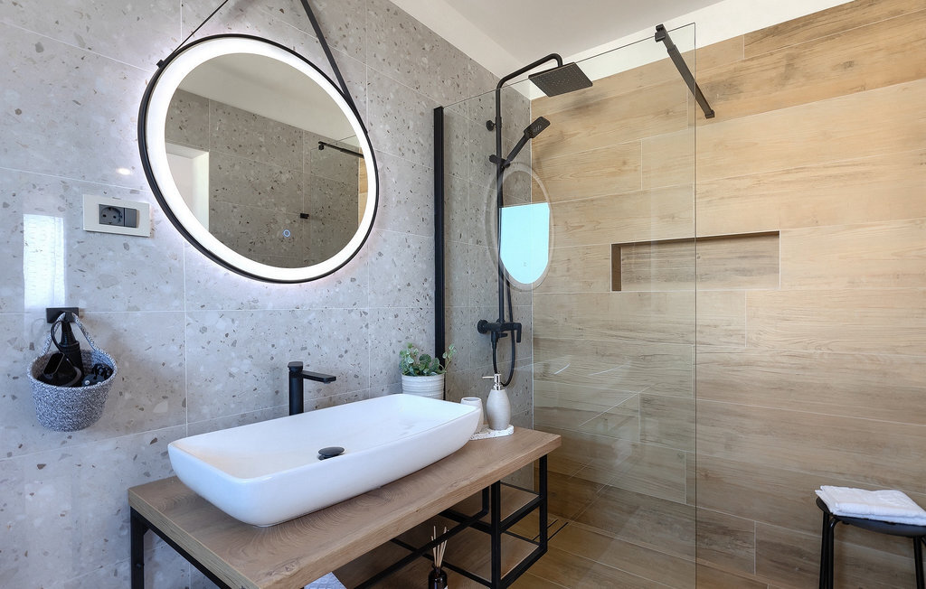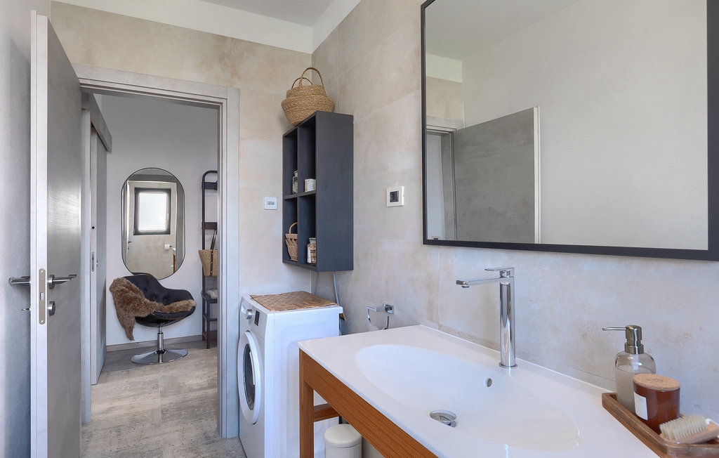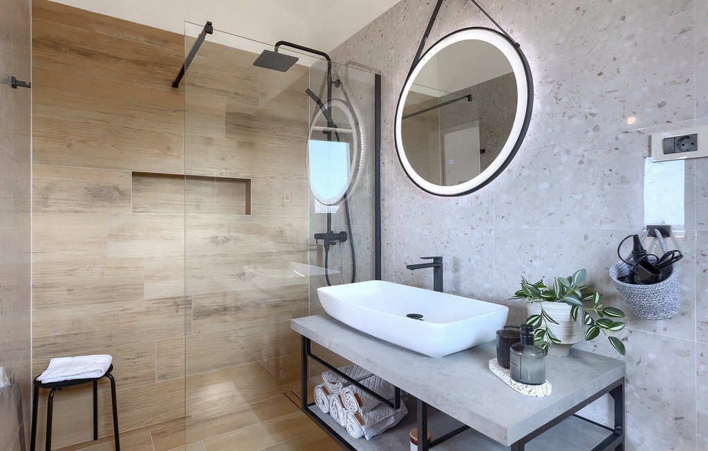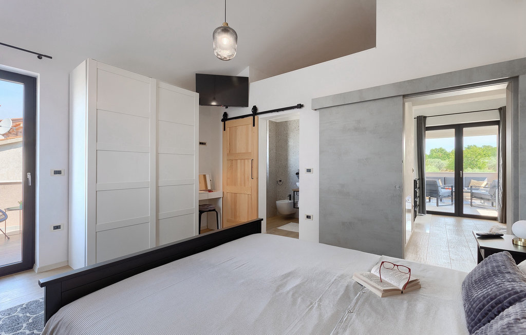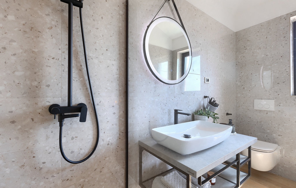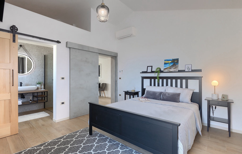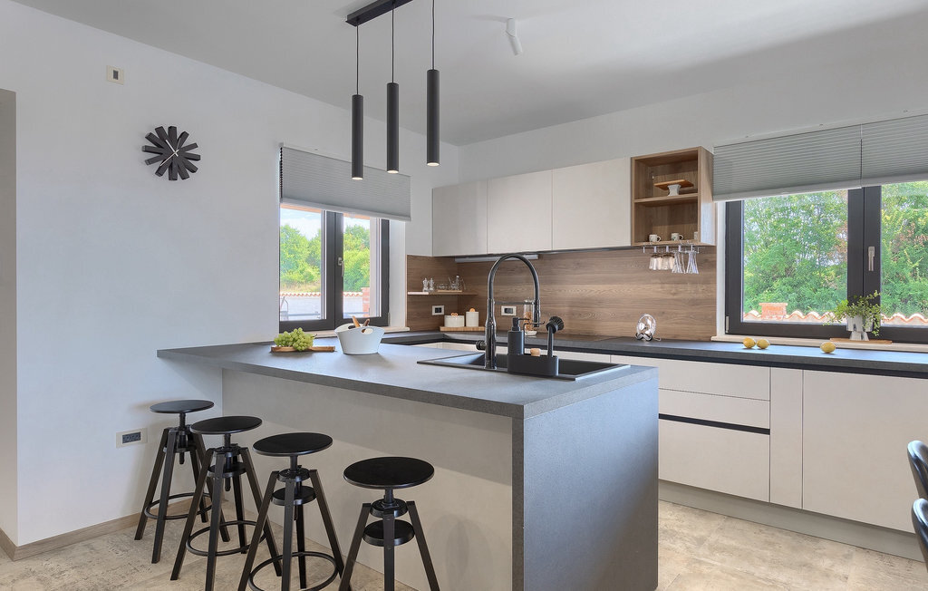 Située à Galizana, près de Pula, la Villa Delfar est la villa qu'il vous faut si vous êtes à la recherche de vacances luxueuses, calmes et actives. Elle vous offre en premier lieu une fantastique piscine privée. En outre, vous disposez d'un sauna et d'une salle de fitness privée avec tapis roulant et vélo d'appartement. Les propriétaires de la villa ont également accordé beaucoup d'importance à votre confort, car toute la villa est équipée du chauffage au sol et de trois chambres confortables avec salle de bain privée et télévision par satellite. Au rez-de-chaussée, vous trouverez une cuisine moderne, élégante et entièrement équipée ainsi qu'un espace ouvert avec un salon et une salle à manger modernes et confortables pour 8 personnes. Même si tout cela est étonnant, vous passerez probablement quand même la plupart de votre temps à l'extérieur, où vous trouverez une table à manger en plein air, un barbecue, une table de billard, une aire de jeux pour enfants et bien plus encore. Détendez-vous et profitez-en ! Galizana est une petite localité située près de Pula, la plus grande ville d'Istrie, connue pour ses sites historiques. L'histoire de Galizana remonte à l'époque romaine. Aujourd'hui, c'est un petit village de 1500 habitants, avec l'église paroissiale Saint-Roch datant du 17e siècle au centre du village. Comme il s'agit d'une région agricole, la population pratique principalement la viticulture, l'oléiculture et l'élevage, et produit de l'huile d'olive, du fromage de chèvre et d'autres produits locaux. L'avantage de Galizana est sa situation tranquille dans le paysage typique de l'Istrie et sa proximité avec de nombreuses commodités attrayantes qui ne sont qu'à une courte distance en voiture. Certaines d'entre elles sont l'amphithéâtre romain du 1er siècle, le parc national des îles Brijuni. Choisissez votre place idéale sur une plage de galets, de pierres ou de sable sur la côte entre Fazana et Valbadon ou visitez les plages escarpées du parc naturel de Kamenjak, l'endroit le plus au sud de l'Istrie. Découvrez l'intérieur de l'Istrie et ses villes de montagne médiévales au riche patrimoine, aux traditions et aux spécialités gastronomiques.