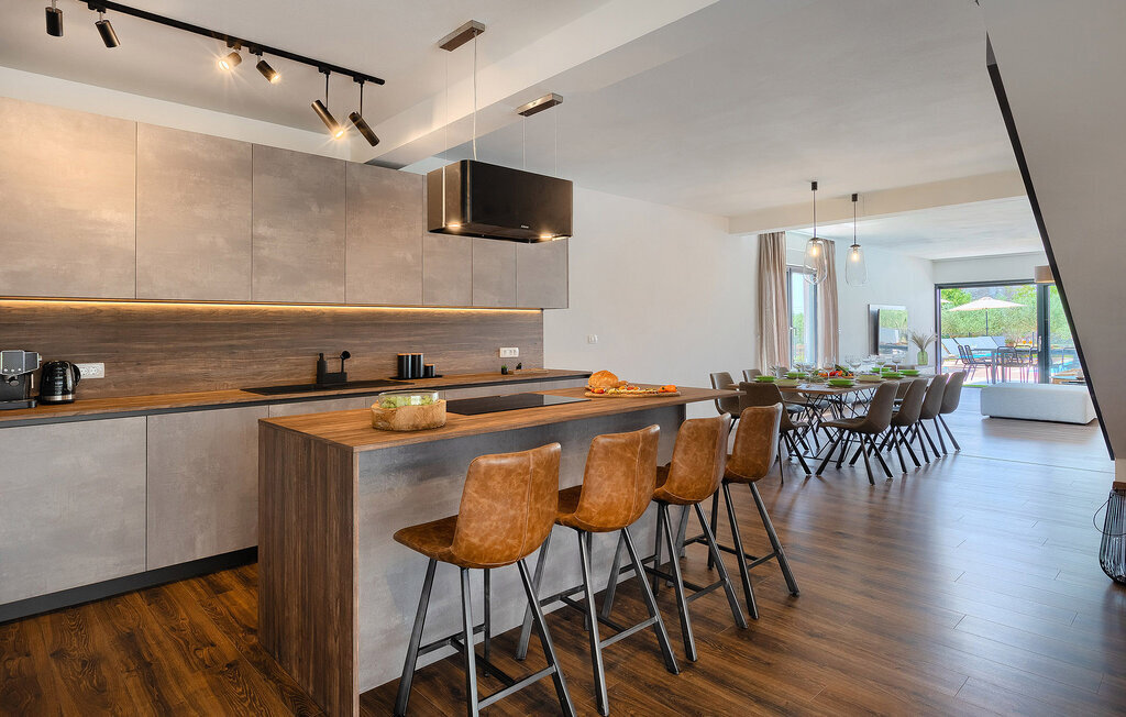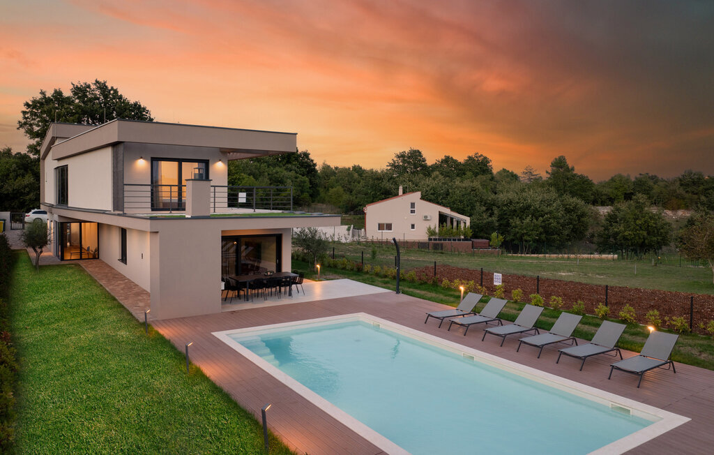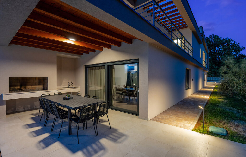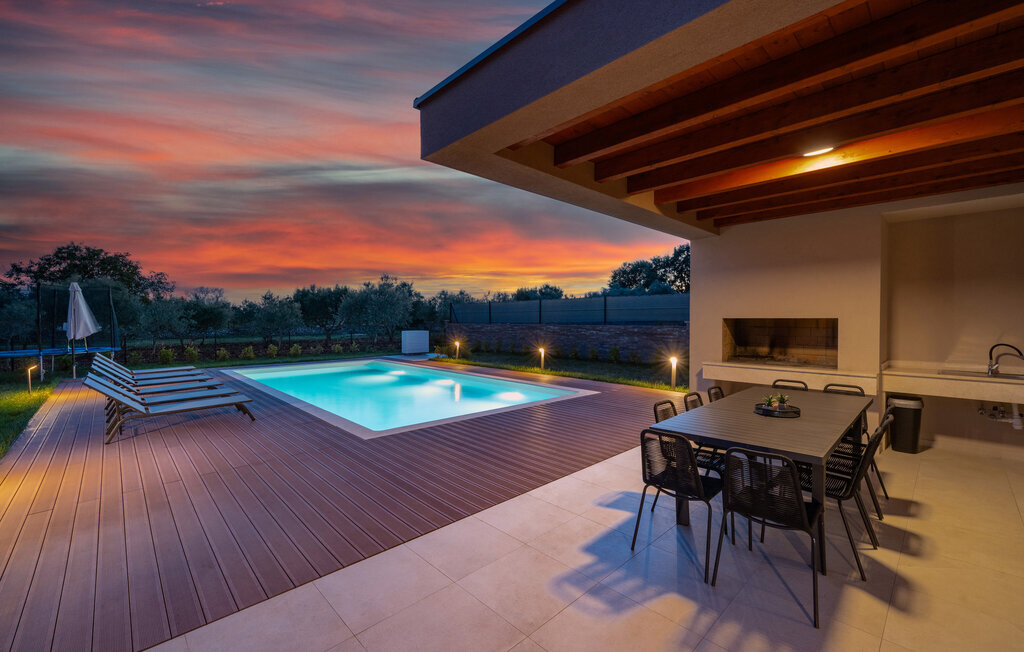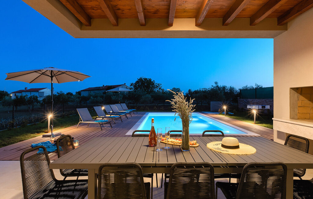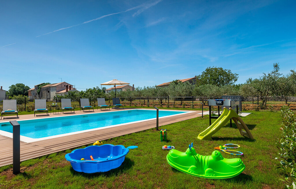 La belle villa familiale Artsi est située dans la ville médiévale de Svetvincenat. La villa entièrement clôturée vous offre des vacances intimes avec votre famille, vos amis et vos animaux domestiques. Devant la villa se trouve une impressionnante piscine chauffée de 50 m2. Profitez d'un bain de soleil sur les chaises longues ou passez des moments inoubliables au bord de la piscine dans l'espace couvert autour d'une table de dix places. Préparez des plats traditionnels d'Istrie sur le barbecue pour toute la famille. Amusez-vous en plein air avec vos proches en jouant au baby-foot et au ping-pong. Les plus jeunes s'amuseront volontiers sur l'aire de jeux pour enfants avec toboggan. L'intérieur de la villa est aménagé de façon moderne. Au rez-de-chaussée de la villa se trouve un espace ouvert avec un salon spacieux, une cuisine entièrement équipée où toute la famille peut participer à la préparation des repas et une salle à manger de dix places où vous pouvez passer du temps ensemble. Au rez-de-chaussée de la villa se trouvent des toilettes séparées ainsi que la première chambre avec des lits doubles et une salle de bain privée. Les quatre autres chambres à coucher avec lits doubles et salle de bain privée se trouvent au premier étage. Toutes les chambres à coucher disposent d'une télévision et de la climatisation, idéales pour un sommeil paisible et la tranquillité souhaitée. Les chambres ont accès à la terrasse de la villa, où vous pourrez savourer votre café du matin ou une boisson rafraîchissante tout en admirant la vue magnifique sur la nature intacte. Choisissez cette magnifique villa, idéale pour des vacances en famille avec des amis et des animaux domestiques dans un cadre champêtre. Profitez de vacances uniques dans l'intérieur de l'Istrie. La Villa Artsi est située à proximité de la ville médiévale de Svetvincenat, dans le village de Stokovci, au sud de l'Istrie centrale.Svetvincenat vous séduira par sa place Renaissance Placa avec le château Morosini-Grimani, l'emblème de la localité. Les vestiges conservés de fresques murales dans l'église Saint-Vincent, près du cimetière de la ville, et dans l'église Sainte-Catherine constituent une partie importante du patrimoine culturel de Svetvincenat. Cette ville particulière attire les visiteurs avec des événements locaux intéressants et variés. La plus remarquable est la fête médiévale, au cours de laquelle vous pourrez vous essayer à des jeux médiévaux. Vous serez impressionné par l'hospitalité de la population locale, la riche cuisine traditionnelle d'Istrie et l'huile d'olive extra-vierge. Découvrez la beauté de cette région en empruntant les nombreuses pistes cyclables et sentiers de randonnée. Visitez les principaux centres touristiques d'Istrie : Rovinj, Porec, Labin, Pula. À Rovinj, visitez l'église baroque de Sainte Euphémie, tandis qu'à Porec, visitez la basilique byzantine d'Euphrasius, classée au patrimoine mondial de l'UNESCO. Ne manquez pas de visiter la plus grande ville d'Istrie, Pula, où vous pourrez voir l'arène de Pula, le temple d'Auguste, la Porte d'Or et de nombreux autres monuments culturels et historiques. Pour finir, explorez l'archipel de Brijuni avec le célèbre parc national de Brijuni. La température de la piscine chauffée dépend de facteurs extérieurs, y compris des conditions météorologiques, et la température de l'eau ne peut donc pas être garantie.