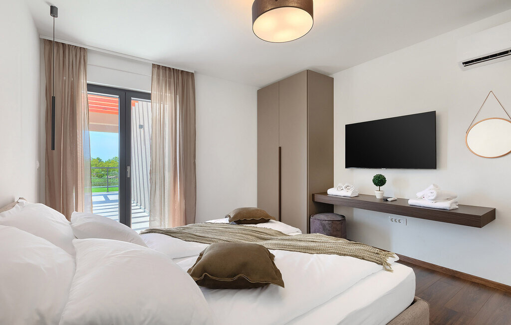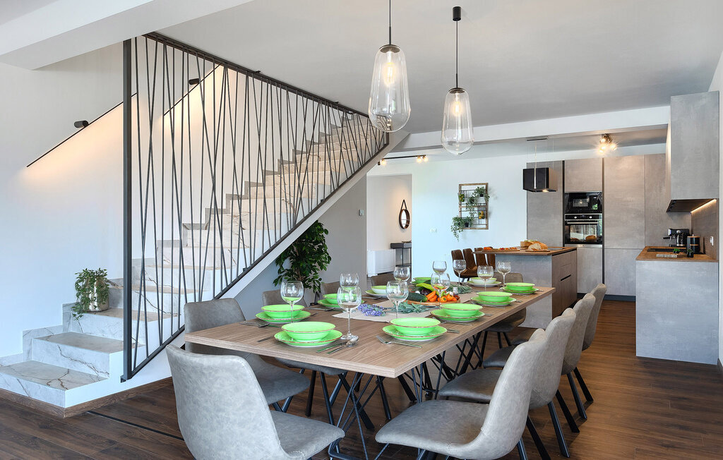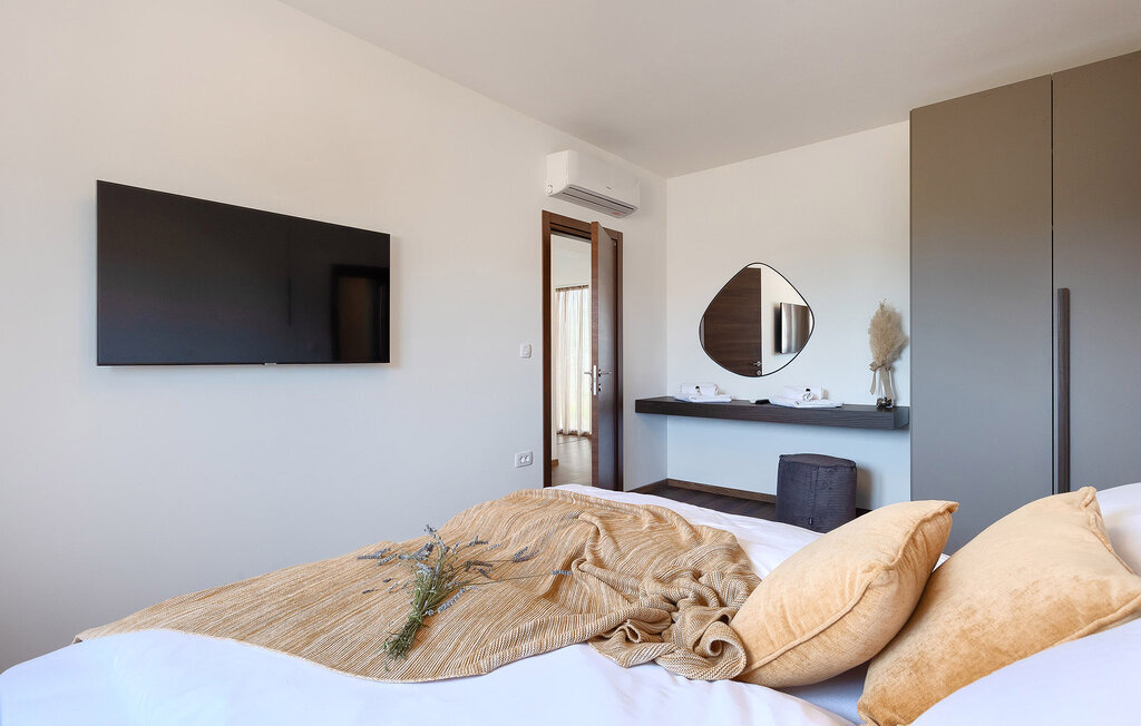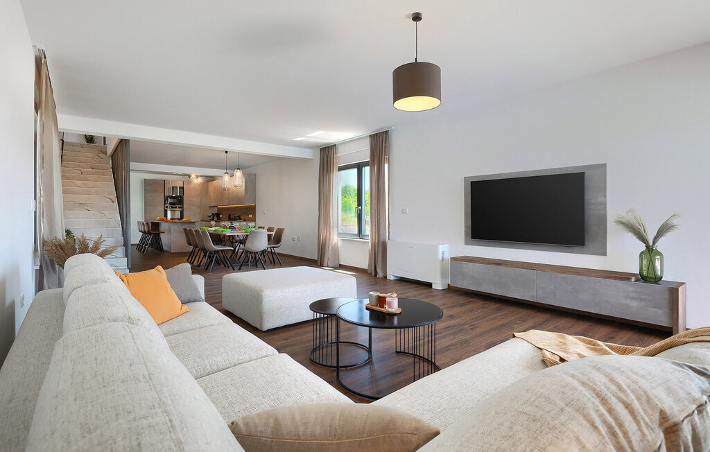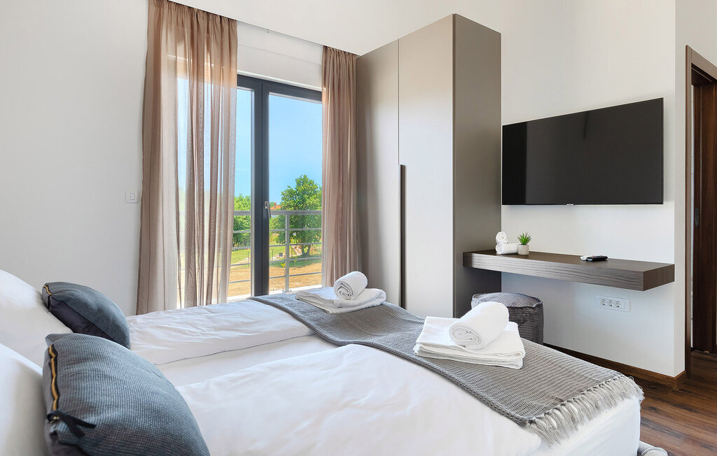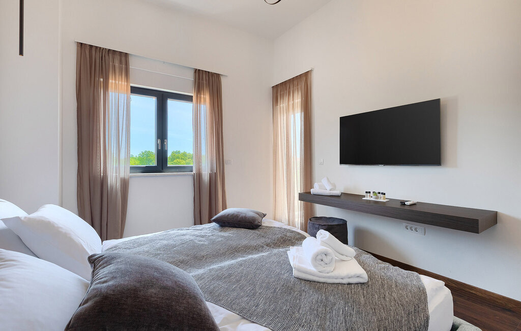La belle villa familiale Artsi est située dans la ville médiévale de Svetvincenat. La villa entièrement clôturée vous offre des vacances intimes avec votre famille, vos amis et vos animaux domestiques. Devant la villa se trouve une impressionnante piscine chauffée de 50 m2. Profitez d'un bain de soleil sur les chaises longues ou passez des moments inoubliables au bord de la piscine dans l'espace couvert autour d'une table de dix places. Préparez des plats traditionnels d'Istrie sur le barbecue pour toute la famille. Amusez-vous en plein air avec vos proches en jouant au baby-foot et au ping-pong. Les plus jeunes s'amuseront volontiers sur l'aire de jeux pour enfants avec toboggan. L'intérieur de la villa est aménagé de façon moderne. Au rez-de-chaussée de la villa se trouve un espace ouvert avec un salon spacieux, une cuisine entièrement équipée où toute la famille peut participer à la préparation des repas et une salle à manger de dix places où vous pouvez passer du temps ensemble. Au rez-de-chaussée de la villa se trouvent des toilettes séparées ainsi que la première chambre avec des lits doubles et une salle de bain privée. Les quatre autres chambres à coucher avec lits doubles et salle de bain privée se trouvent au premier étage. Toutes les chambres à coucher disposent d'une télévision et de la climatisation, idéales pour un sommeil paisible et la tranquillité souhaitée. Les chambres ont accès à la terrasse de la villa, où vous pourrez savourer votre café du matin ou une boisson rafraîchissante tout en admirant la vue magnifique sur la nature intacte. Choisissez cette magnifique villa, idéale pour des vacances en famille avec des amis et des animaux domestiques dans un cadre champêtre. Profitez de vacances uniques dans l'intérieur de l'Istrie. La Villa Artsi est située à proximité de la ville médiévale de Svetvincenat, dans le village de Stokovci, au sud de l'Istrie centrale.Svetvincenat vous séduira par sa place Renaissance Placa avec le château Morosini-Grimani, l'emblème de la localité. Les vestiges conservés de fresques murales dans l'église Saint-Vincent, près du cimetière de la ville, et dans l'église Sainte-Catherine constituent une partie importante du patrimoine culturel de Svetvincenat. Cette ville particulière attire les visiteurs avec des événements locaux intéressants et variés. La plus remarquable est la fête médiévale, au cours de laquelle vous pourrez vous essayer à des jeux médiévaux. Vous serez impressionné par l'hospitalité de la population locale, la riche cuisine traditionnelle d'Istrie et l'huile d'olive extra-vierge. Découvrez la beauté de cette région en empruntant les nombreuses pistes cyclables et sentiers de randonnée. Visitez les principaux centres touristiques d'Istrie : Rovinj, Porec, Labin, Pula. À Rovinj, visitez l'église baroque de Sainte Euphémie, tandis qu'à Porec, visitez la basilique byzantine d'Euphrasius, classée au patrimoine mondial de l'UNESCO. Ne manquez pas de visiter la plus grande ville d'Istrie, Pula, où vous pourrez voir l'arène de Pula, le temple d'Auguste, la Porte d'Or et de nombreux autres monuments culturels et historiques. Pour finir, explorez l'archipel de Brijuni avec le célèbre parc national de Brijuni. La température de la piscine chauffée dépend de facteurs extérieurs, y compris des conditions météorologiques, et la température de l'eau ne peut donc pas être garantie.