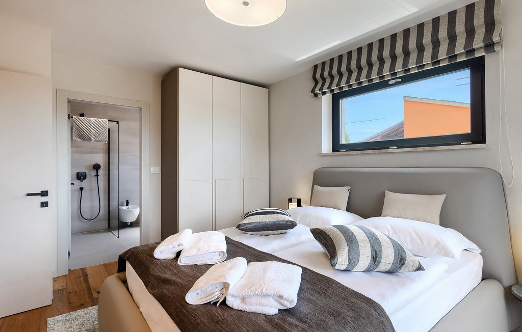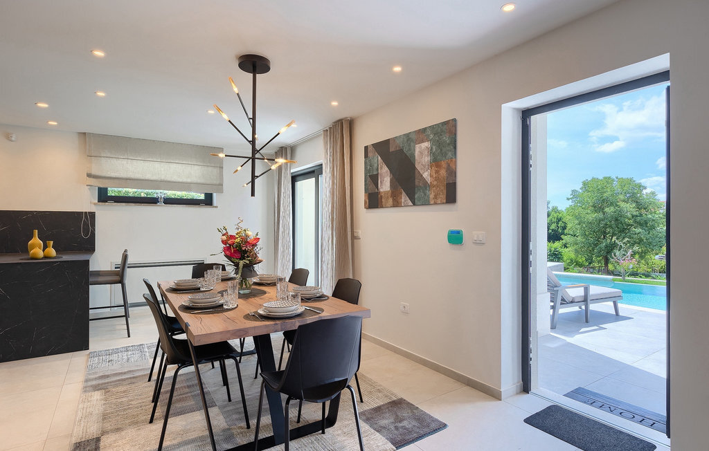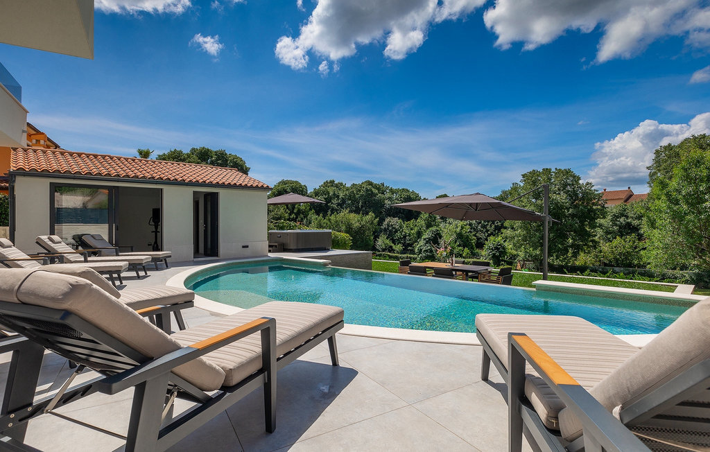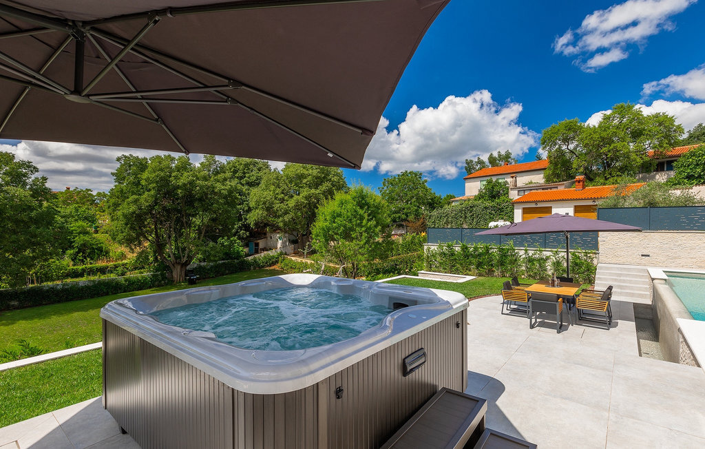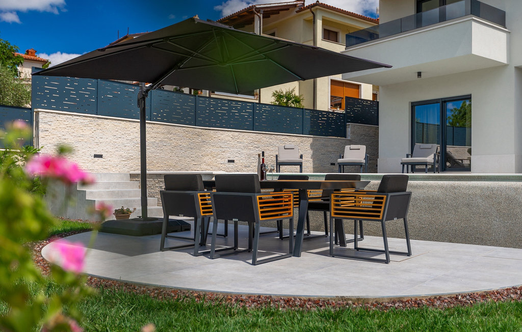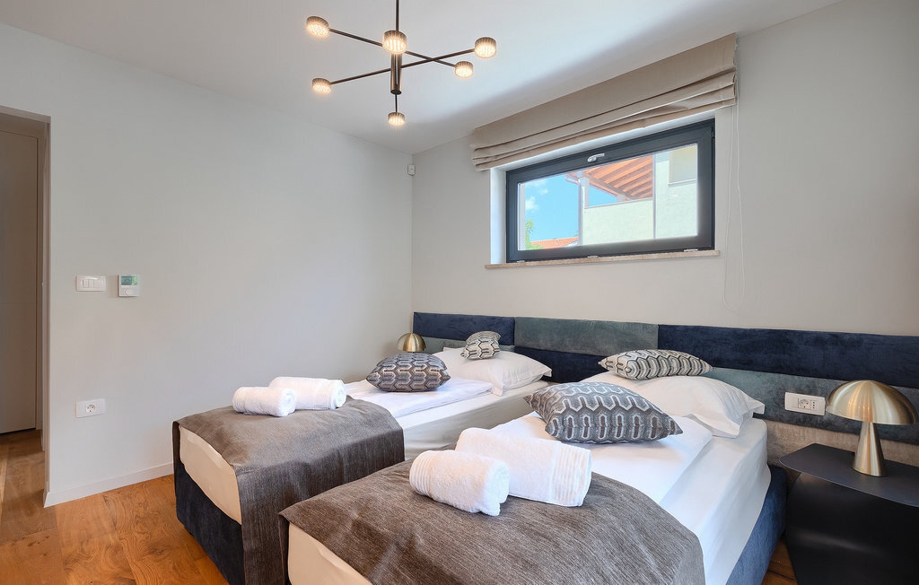 La Villa Cascada est située dans la petite ville de Munti, à la périphérie de Pula et à seulement 5 km de l'aéroport international. Elle vous offre un accès facile à la ville tout en vous permettant de vivre une expérience multiculturelle à portée de main. Enrichie d'un intérieur et d'un extérieur modernes et d'une touche de rusticité istrienne, la villa vous offre une ambiance qui vous coupera le souffle ! Construite au début de l'année 2023, elle est prête à ouvrir ses portes aux hôtes qui recherchent des vacances luxueuses et tranquilles entre amis ou en famille. Vous logerez confortablement dans 3 chambres doubles (dont une avec deux lits simples qui peuvent être réunis sur demande). Chaque chambre dispose de sa propre salle de bain avec des cabines de douche entièrement équipées. Les hôtes ont également à leur disposition une machine à laver, un sèche-linge et un fer à repasser. Dans le salon spacieux, il y a un canapé trois places avec un lit queen-size, une télévision LED et des détails modernes. Il est bien sûr important de mentionner que la cuisine offre une vue impressionnante sur la verdure grâce aux parois coulissantes en verre ! La cuisine est entièrement équipée et dotée de touches minimalistes qui facilitent la préparation d'un déjeuner léger et d'un dîner copieux, ce qui est effectivement une tradition en Istrie. Devant la villa se trouve une magnifique piscine, également enrichie d'espaces verts, où vous pourrez trouver de l'ombre rafraîchissante pendant les chaleurs estivales ou profiter du soleil istrien sur les chaises longues au bord de la piscine. En plus de la piscine, cette villa dispose d'un espace bien-être relaxant et d'un jacuzzi en plein air. Une aire de jeux pour enfants avec toboggan et balançoires vous attend à l'ombre du palmier, ainsi qu'un barbecue à gaz pour cuisiner en plein air. La Villa Cascada vous offre un repos pour le corps et l'âme, tandis que le charmant village de Muntic vous séduira par son ambiance istrienne incomparable. La Villa Cascada se trouve dans le village de Muntic, dans la commune de Liznjan, au sud-est de l'Istrie. Ce village haut en couleur a une histoire riche qui remonte à l'époque romaine. Il est mentionné pour la première fois au 14e siècle et c'est au 16e siècle que l'actuelle église Saint-Jérôme de style gothique a été construite. Faites connaissance avec la charmante population locale et ses produits faits maison, avec lesquels vous pourrez préparer des plats istriens. Des chanteurs et musiciens traditionnels de Muntic vous divertiront. Visitez les centres touristiques de Medulin et de Pula. Medulin est un ancien village de pêcheurs et un centre touristique moderne. Explorez les plages de sable de la côte sud de l'Istrie et goûtez à la cuisine traditionnelle de la région dans les restaurants et les tavernes. Les aventuriers trouveront un parc d'adrénaline, tandis que les amateurs d'histoire pourront visiter le parc archéologique de Vizula, le parc historique de la commune de Medulin. Mettez les voiles en direction des îles de l'archipel de Medulin, Ceja, Levan ou Bodulas. Explorez également le charmant village de Marcane. À proximité immédiate de Marcana se trouve Duga Uvala, où vous pourrez profiter de la plage de 300 mètres de long. Vous pouvez explorer le sous-sol de la Riviera de Marcana dans la grotte de Ljubic, la grotte de Golubinka ou la grotte de Peresin. Pula est définitivement une destination incontournable. Dans la plus grande ville d'Istrie, vous pourrez visiter l'amphithéâtre de Pula, le temple d'Auguste, la Porte d'Or et de nombreux autres monuments culturels et historiques. Profitez des magnifiques plages et des paysages à couper le souffle.