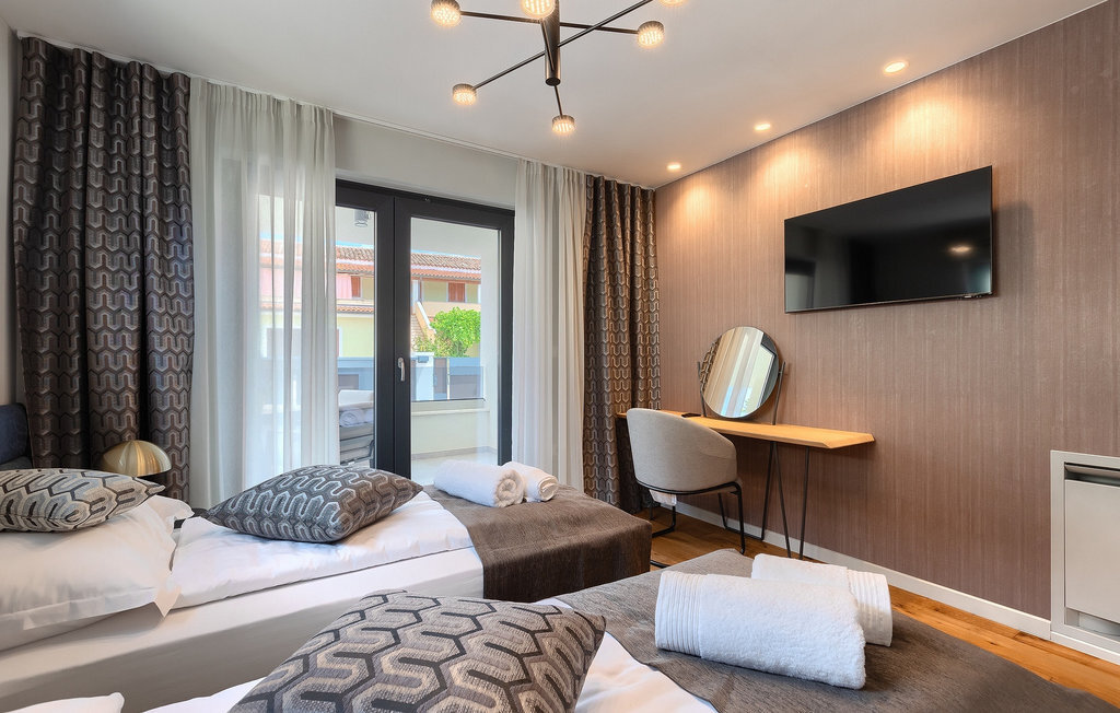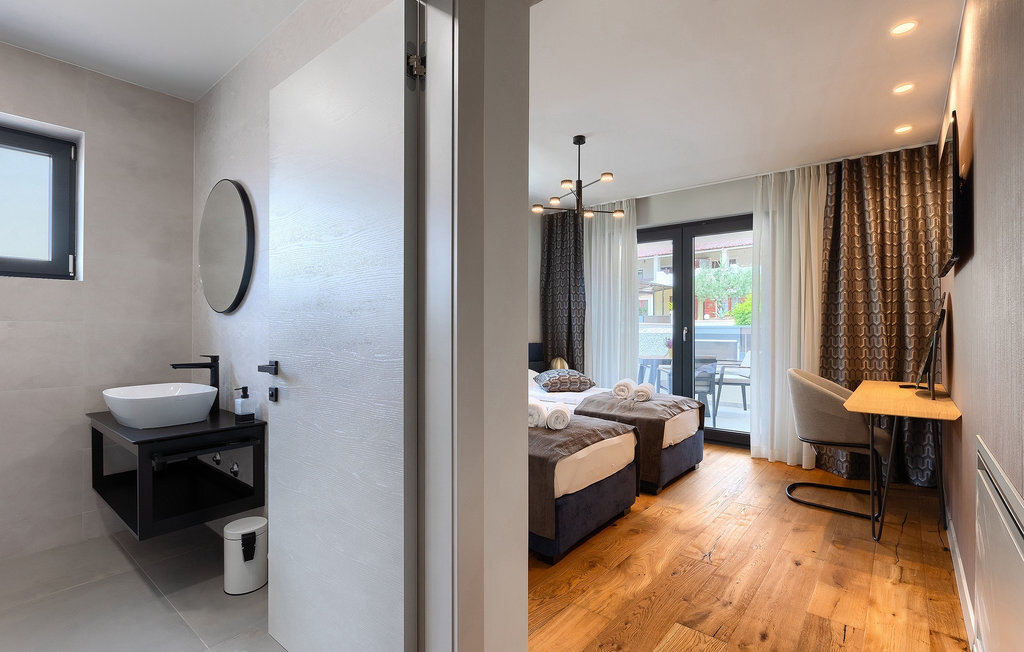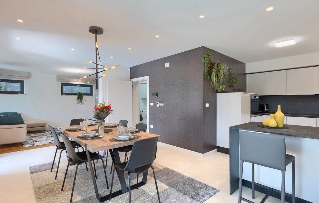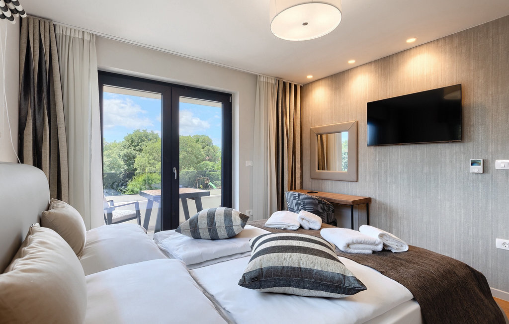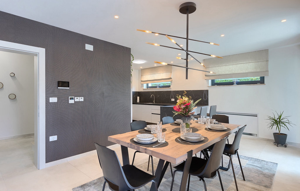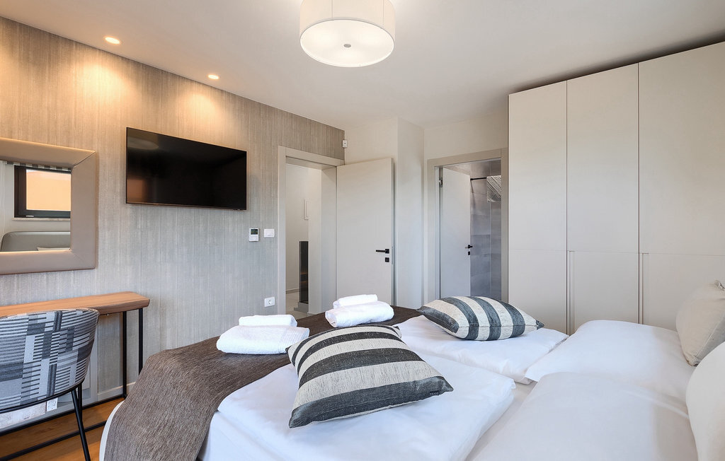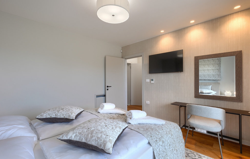 La Villa Cascada est située dans la petite ville de Munti, à la périphérie de Pula et à seulement 5 km de l'aéroport international. Elle vous offre un accès facile à la ville tout en vous permettant de vivre une expérience multiculturelle à portée de main. Enrichie d'un intérieur et d'un extérieur modernes et d'une touche de rusticité istrienne, la villa vous offre une ambiance qui vous coupera le souffle ! Construite au début de l'année 2023, elle est prête à ouvrir ses portes aux hôtes qui recherchent des vacances luxueuses et tranquilles entre amis ou en famille. Vous logerez confortablement dans 3 chambres doubles (dont une avec deux lits simples qui peuvent être réunis sur demande). Chaque chambre dispose de sa propre salle de bain avec des cabines de douche entièrement équipées. Les hôtes ont également à leur disposition une machine à laver, un sèche-linge et un fer à repasser. Dans le salon spacieux, il y a un canapé trois places avec un lit queen-size, une télévision LED et des détails modernes. Il est bien sûr important de mentionner que la cuisine offre une vue impressionnante sur la verdure grâce aux parois coulissantes en verre ! La cuisine est entièrement équipée et dotée de touches minimalistes qui facilitent la préparation d'un déjeuner léger et d'un dîner copieux, ce qui est effectivement une tradition en Istrie. Devant la villa se trouve une magnifique piscine, également enrichie d'espaces verts, où vous pourrez trouver de l'ombre rafraîchissante pendant les chaleurs estivales ou profiter du soleil istrien sur les chaises longues au bord de la piscine. En plus de la piscine, cette villa dispose d'un espace bien-être relaxant et d'un jacuzzi en plein air. Une aire de jeux pour enfants avec toboggan et balançoires vous attend à l'ombre du palmier, ainsi qu'un barbecue à gaz pour cuisiner en plein air. La Villa Cascada vous offre un repos pour le corps et l'âme, tandis que le charmant village de Muntic vous séduira par son ambiance istrienne incomparable. La Villa Cascada se trouve dans le village de Muntic, dans la commune de Liznjan, au sud-est de l'Istrie. Ce village haut en couleur a une histoire riche qui remonte à l'époque romaine. Il est mentionné pour la première fois au 14e siècle et c'est au 16e siècle que l'actuelle église Saint-Jérôme de style gothique a été construite. Faites connaissance avec la charmante population locale et ses produits faits maison, avec lesquels vous pourrez préparer des plats istriens. Des chanteurs et musiciens traditionnels de Muntic vous divertiront. Visitez les centres touristiques de Medulin et de Pula. Medulin est un ancien village de pêcheurs et un centre touristique moderne. Explorez les plages de sable de la côte sud de l'Istrie et goûtez à la cuisine traditionnelle de la région dans les restaurants et les tavernes. Les aventuriers trouveront un parc d'adrénaline, tandis que les amateurs d'histoire pourront visiter le parc archéologique de Vizula, le parc historique de la commune de Medulin. Mettez les voiles en direction des îles de l'archipel de Medulin, Ceja, Levan ou Bodulas. Explorez également le charmant village de Marcane. À proximité immédiate de Marcana se trouve Duga Uvala, où vous pourrez profiter de la plage de 300 mètres de long. Vous pouvez explorer le sous-sol de la Riviera de Marcana dans la grotte de Ljubic, la grotte de Golubinka ou la grotte de Peresin. Pula est définitivement une destination incontournable. Dans la plus grande ville d'Istrie, vous pourrez visiter l'amphithéâtre de Pula, le temple d'Auguste, la Porte d'Or et de nombreux autres monuments culturels et historiques. Profitez des magnifiques plages et des paysages à couper le souffle.