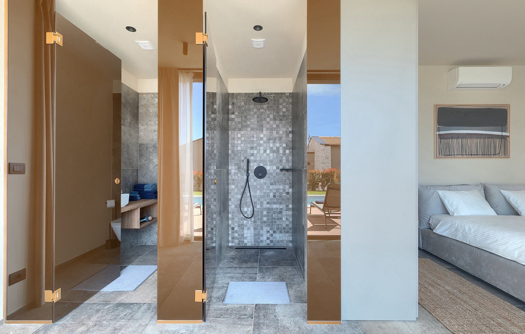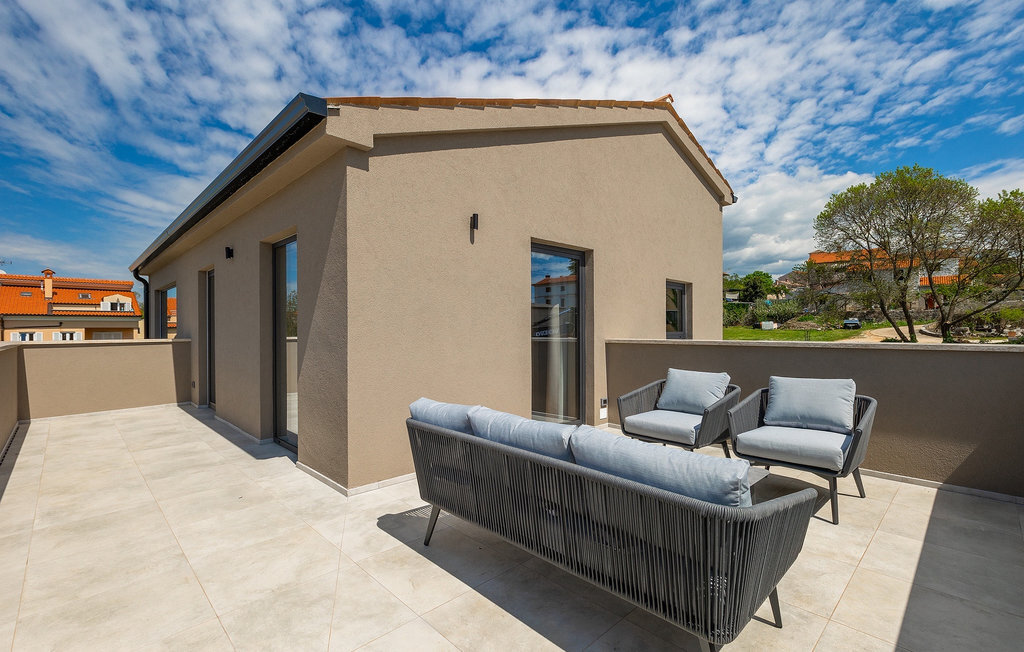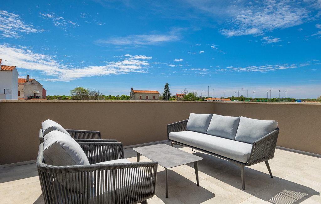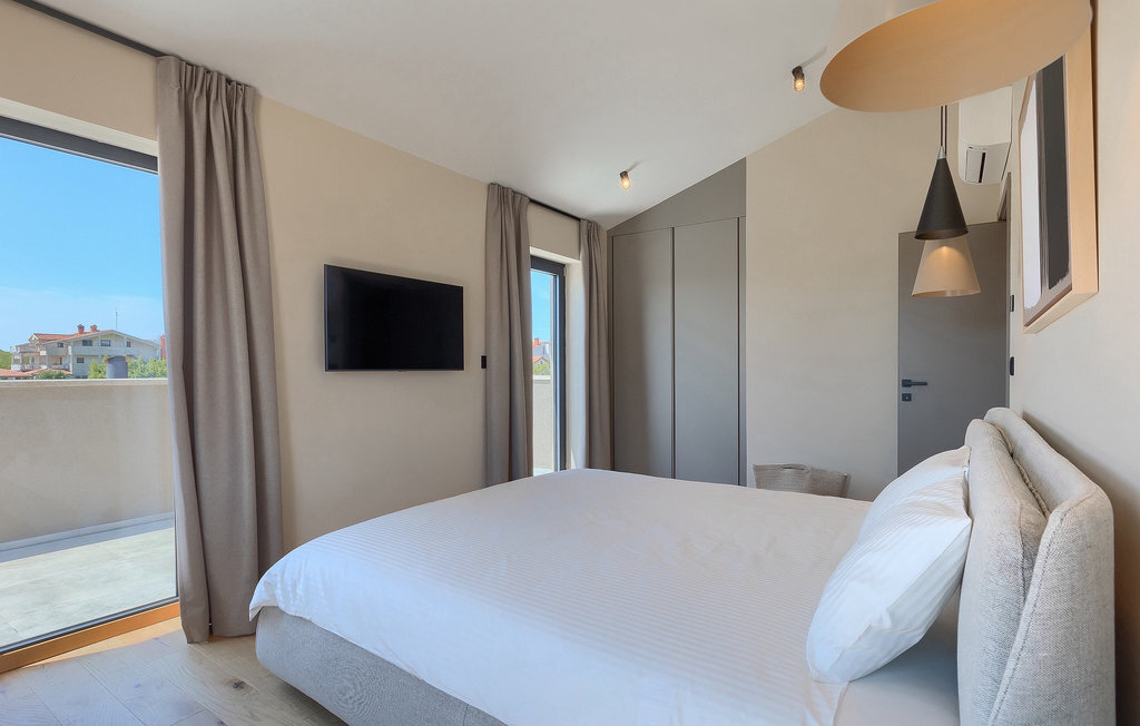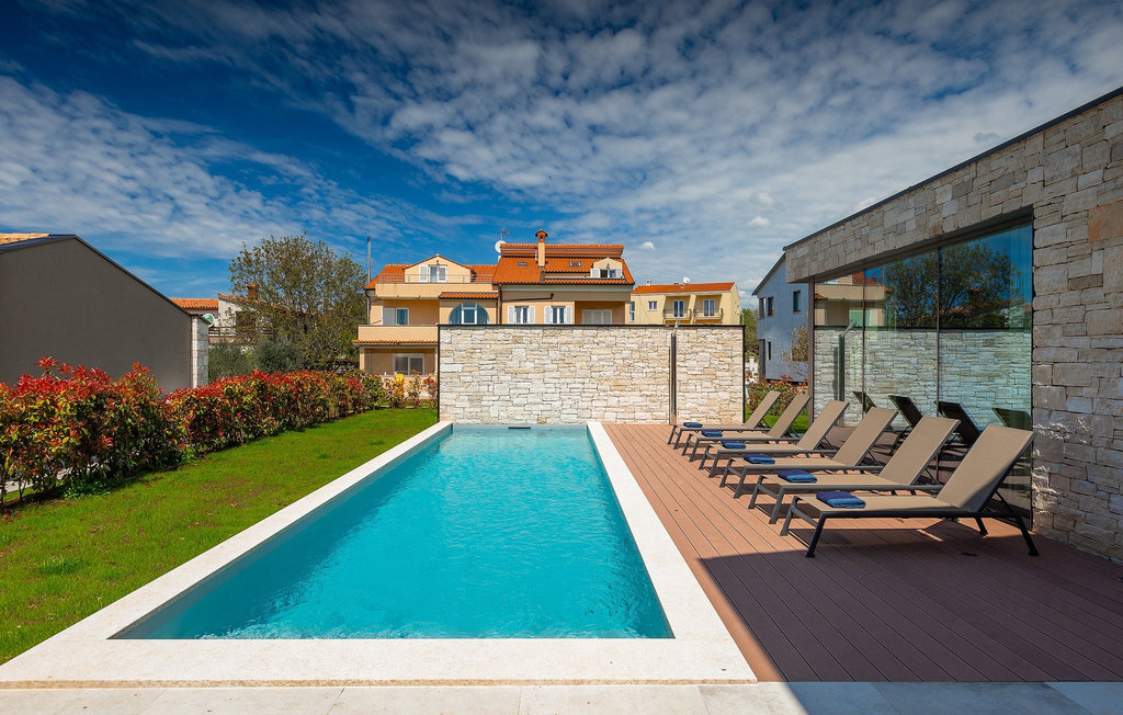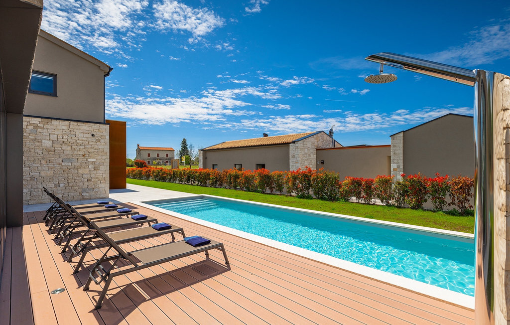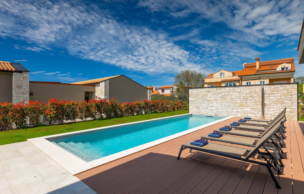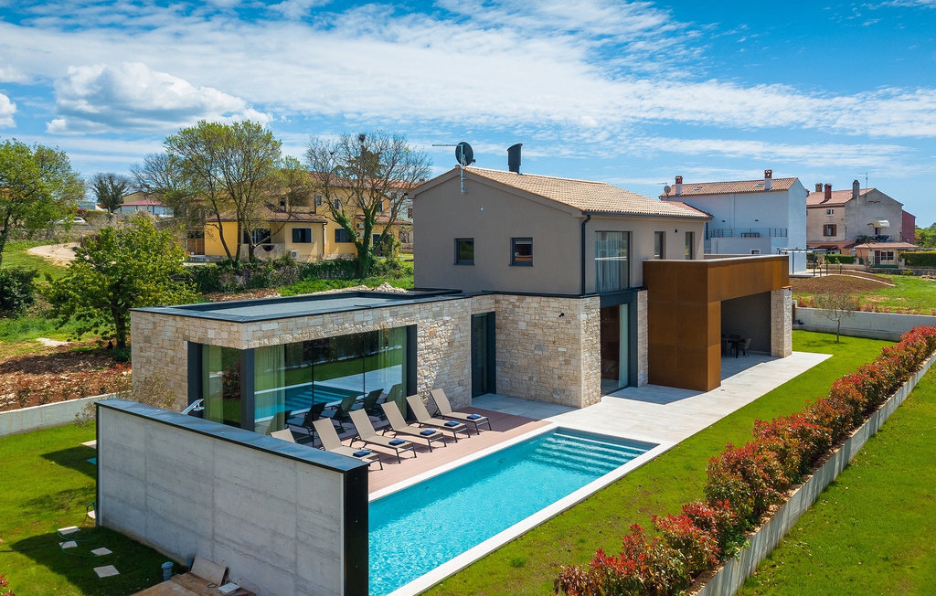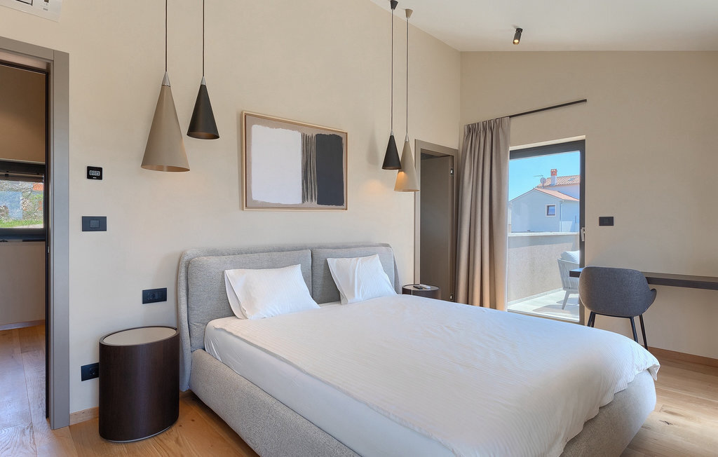 Si vous rêvez de vacances tranquilles en famille dans la campagne istrienne, non loin de la côte, la villa Palmeta est le choix idéal pour vous ! Cette excellente villa moderne se trouve à Bale, près de Rovinj, et peut accueillir jusqu'à 8 personnes. À l'extérieur, une piscine privée est à votre disposition, près de laquelle vous passerez des journées ensoleillées, votre boisson préférée à la main. Pour vous détendre complètement, des chaises longues et des parasols sont disponibles à côté de la piscine. Nous sommes certains que vous passerez d'agréables soirées d'été en famille ou entre amis sur la terrasse couverte, où une cuisine d'été avec table à manger est à votre disposition pour vous détendre tout en profitant du cadre romantique sous le ciel étoilé. L'intérieur de cette villa ne manquera pas de vous séduire. Une combinaison harmonieuse de design moderne et de matériaux naturels se retrouve à l'intérieur de la villa. Au rez-de-chaussée, vous disposez d'un salon spacieux avec vue sur la terrasse et la piscine, d'une salle à manger et d'une cuisine entièrement équipée. Grâce aux grandes baies vitrées du salon, l'intérieur est merveilleusement connecté à l'environnement. Au rez-de-chaussée se trouve également une chambre à coucher avec salle de bain privée et à l'étage, deux autres chambres à coucher modernes avec des salles de bain élégamment conçues. En outre, vous pouvez vous détendre sur la galerie à l'étage ou savourer une tasse de café le matin sur la terrasse qui donne sur les magnifiques environs. Bale est une petite ville située dans la partie continentale de l'Istrie, près de Rovinj. C'est un bon endroit pour faire des excursions d'une journée soit vers la côte, soit plus à l'intérieur des terres. Il y a de nombreuses possibilités d'explorer les plages et les baies, et depuis les villes, ne manquez pas de visiter Rovinj et Pula. À Rovinj, vous serez émerveillé par les maisons colorées et l'église Sainte-Euphémie au sommet de la vieille ville. À Pula, visitez de nombreux sites touristiques et, si vous le pouvez, ne manquez pas d'assister à un concert à la Pula Arena. Dans la partie intérieure de l'Istrie, vous trouverez de nombreuses tavernes et restaurants proposant des délices istriens, ainsi que de nombreux vignobles où vous pourrez déguster des vins locaux.