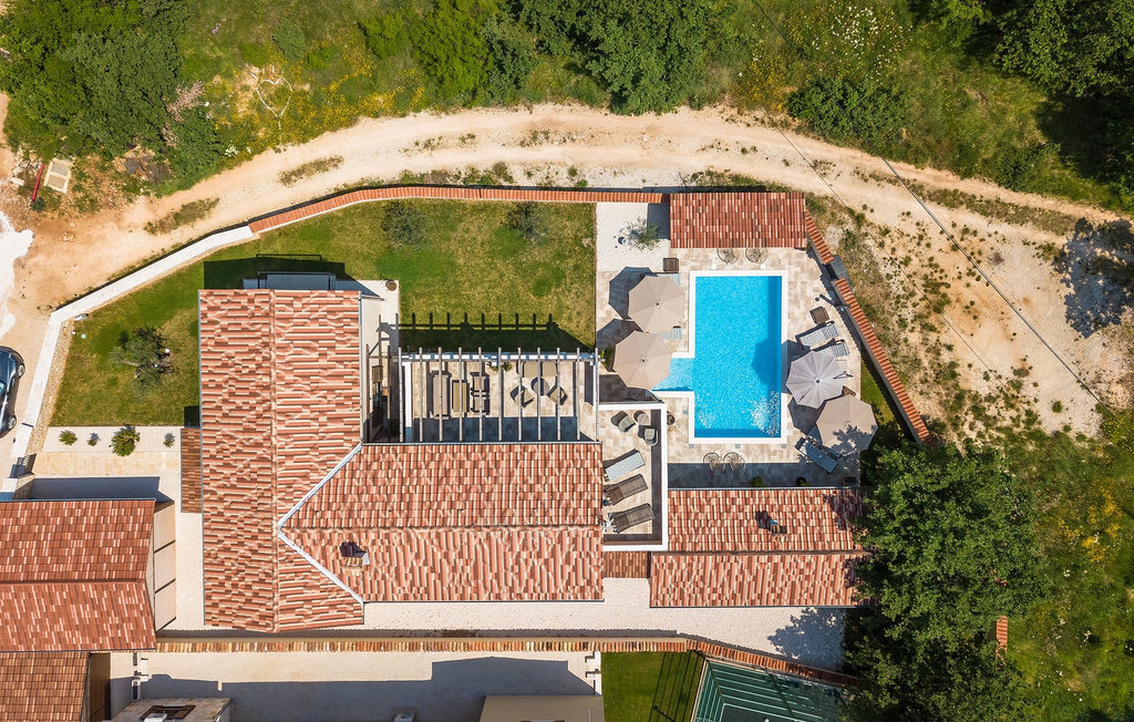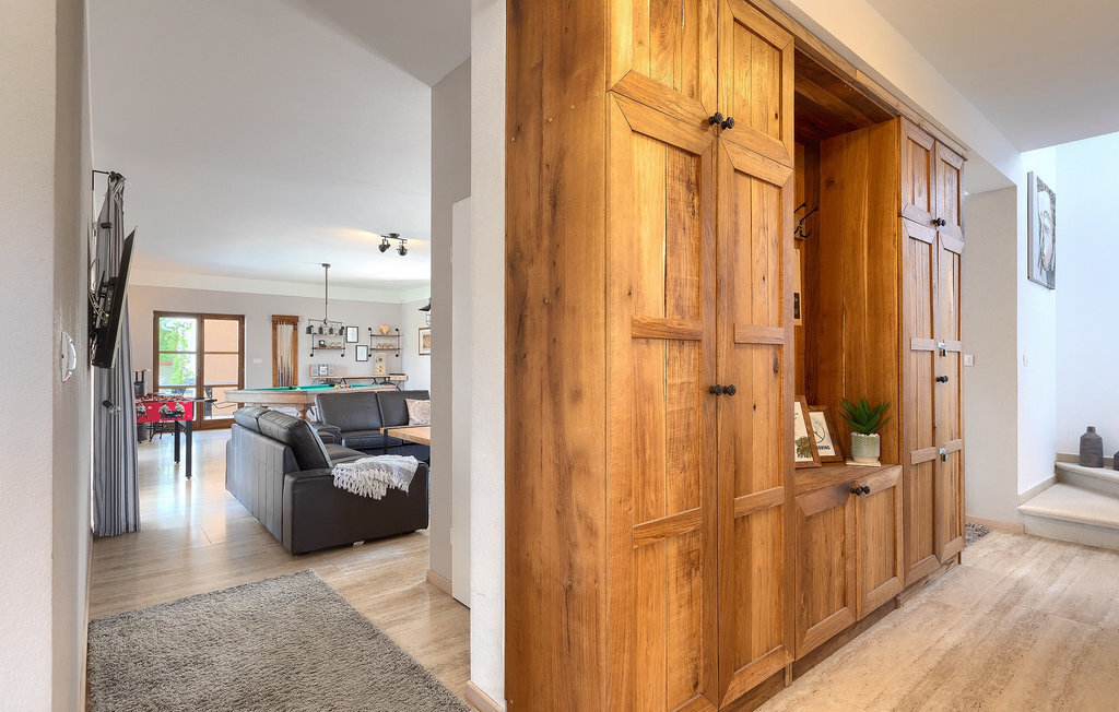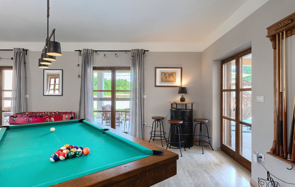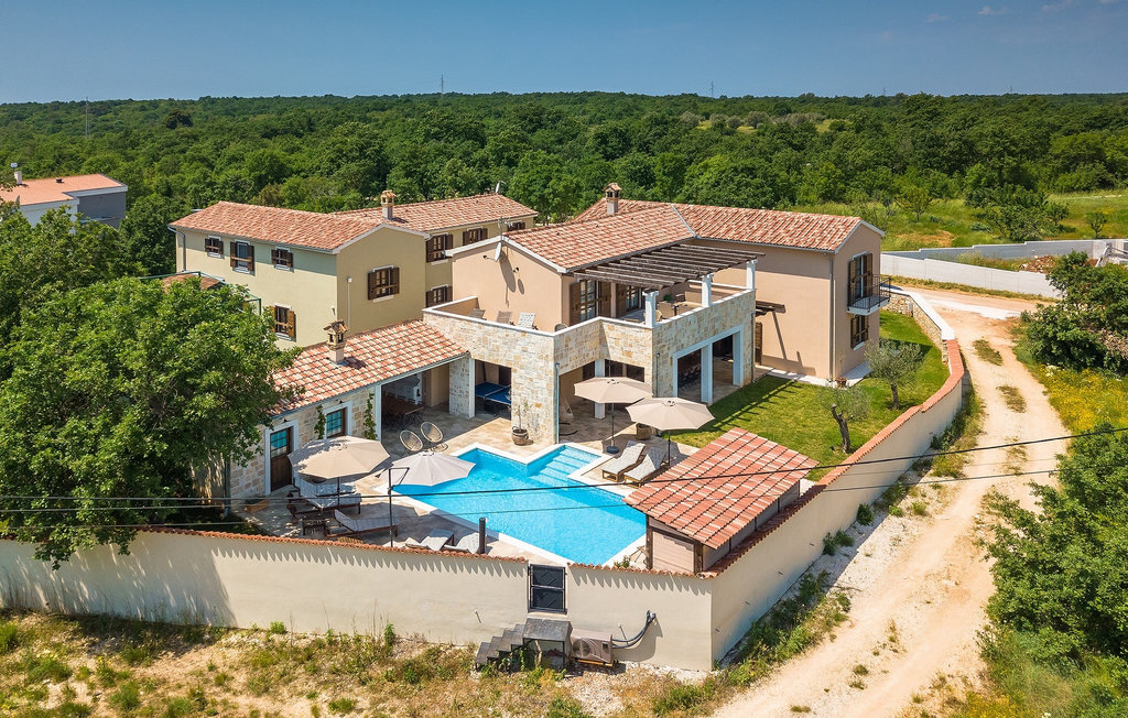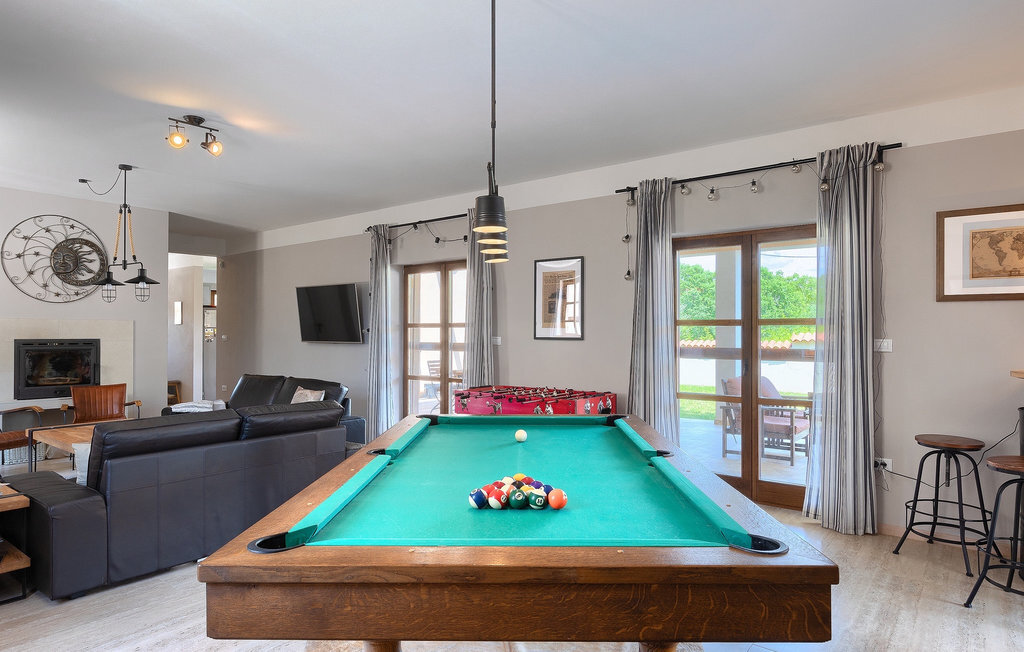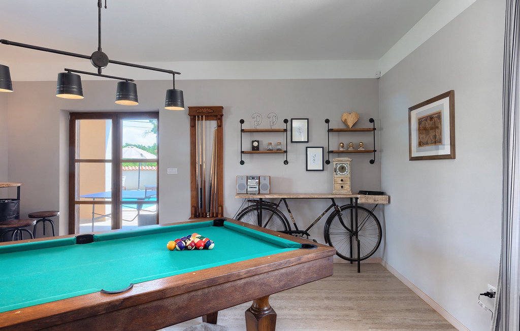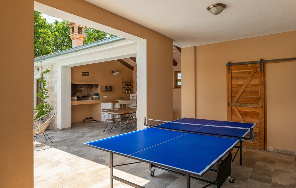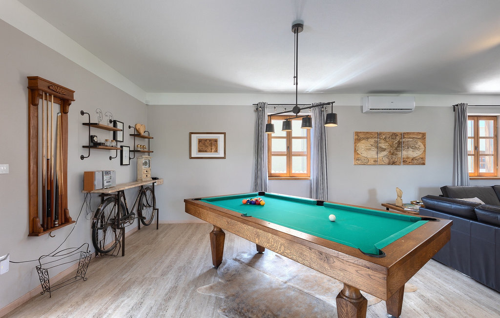 Si vous cherchez une villa privée avec piscine pour passer des vacances relaxantes avec vos proches, tout en profitant d'un design élégant et d'une atmosphère chaleureuse, vous êtes au bon endroit. La Villa Cirka est une magnifique villa de six chambres à coucher située dans le centre de l'Istrie, qui peut accueillir 12 personnes pour une famille ou un groupe d'amis. La villa offre un magnifique espace extérieur et un intérieur tout aussi impressionnant. L'espace extérieur permet aux hôtes de se détendre et de se rafraîchir dans la piscine chauffée de 36 m², de se relaxer sur les chaises longues en sirotant une boisson rafraîchissante et de laisser les plus jeunes jouer au ping-pong pendant qu'ils profitent de leurs vacances. Un barbecue au charbon de bois, une salle à manger extérieure couverte et des meubles de jardin confortables sont à la disposition des hôtes. Ils peuvent également préparer de merveilleux repas faits maison sur le barbecue à l'extérieur. L'intérieur et l'extérieur des deux niveaux de la villa sont décorés avec de nombreux détails en bois et présentent un style moderne et chaleureux. La maison principale dispose d'un grand salon spacieux avec un billard et un baby-foot, d'une cuisine moderne entièrement équipée et d'une salle à manger. Une chambre à coucher avec lits superposés et salle de bain privée et un deuxième WC se trouvent au rez-de-chaussée de la Villa Cirka. La villa est entièrement climatisée, dispose d'une connexion WLAN et accepte également les animaux domestiques. Au premier étage de la Villa Cirka se trouvent quatre autres chambres élégantes, chacune équipée d'une télévision, de la climatisation et d'une salle de bain attenante avec douche. Deux de ces chambres ont également des sorties sur des balcons. Le poolhouse, séparé de la maison principale, dispose d'une chambre double et d'une salle de bain privée avec douche et constitue l'endroit idéal pour les couples à la recherche d'un peu de tranquillité. La Villa Cirka est un endroit fantastique pour passer des vacances spéciales en famille ou entre amis, car elle offre de nombreuses commodités agréables, un design magnifique et un excellent emplacement. C'est dans le village de Svetvincenat, au centre de l'Istrie, que vous trouverez la belle Villa Cirka. Vodnjan, Motovun et Groznjan sont quelques-unes des belles villes romantiques de la région qui méritent d'être visitées. À proximité de la villa, vous trouverez d'excellents restaurants et tavernes proposant un grand choix de plats traditionnels tels que le prosciutto d'Istrie (Prsut) fait maison, les pâtes d'Istrie (Fuzi) et les spécialités méditerranéennes faites maison. La ville populaire de Rovinj n'est pas loin de la propriété, tandis que Pula, la plus grande perle d'Istrie, se trouve au sud de la région. De nombreuses curiosités de Pula sont connues, tout comme l'amphithéâtre romain que vous devez absolument visiter. La prochaine étape devrait être le parc national de Brijuni si vous souhaitez explorer les environs pittoresques et profiter de la nature et de la faune. La température de la piscine chauffée dépend de facteurs extérieurs, y compris des conditions météorologiques, et la température de l'eau ne peut donc pas être garantie.