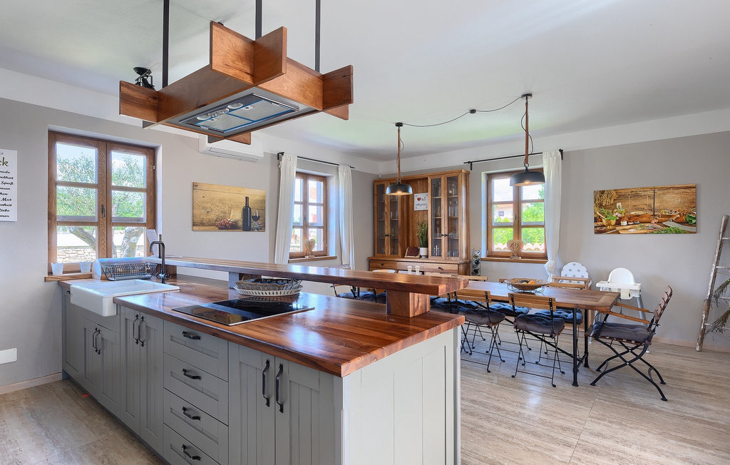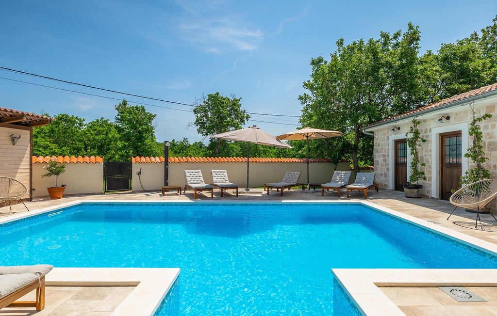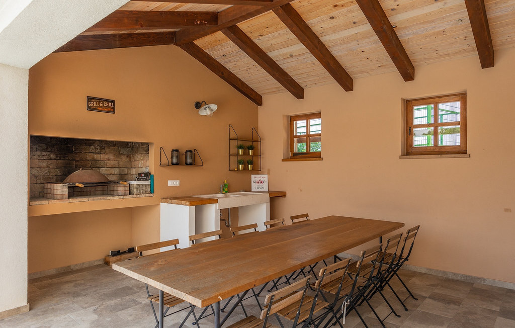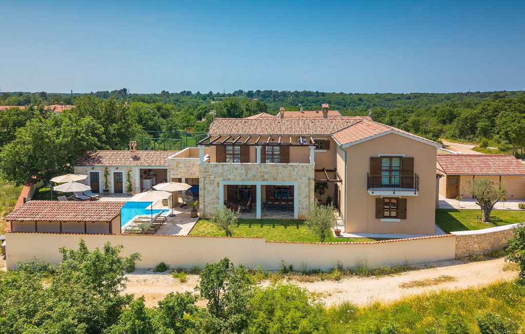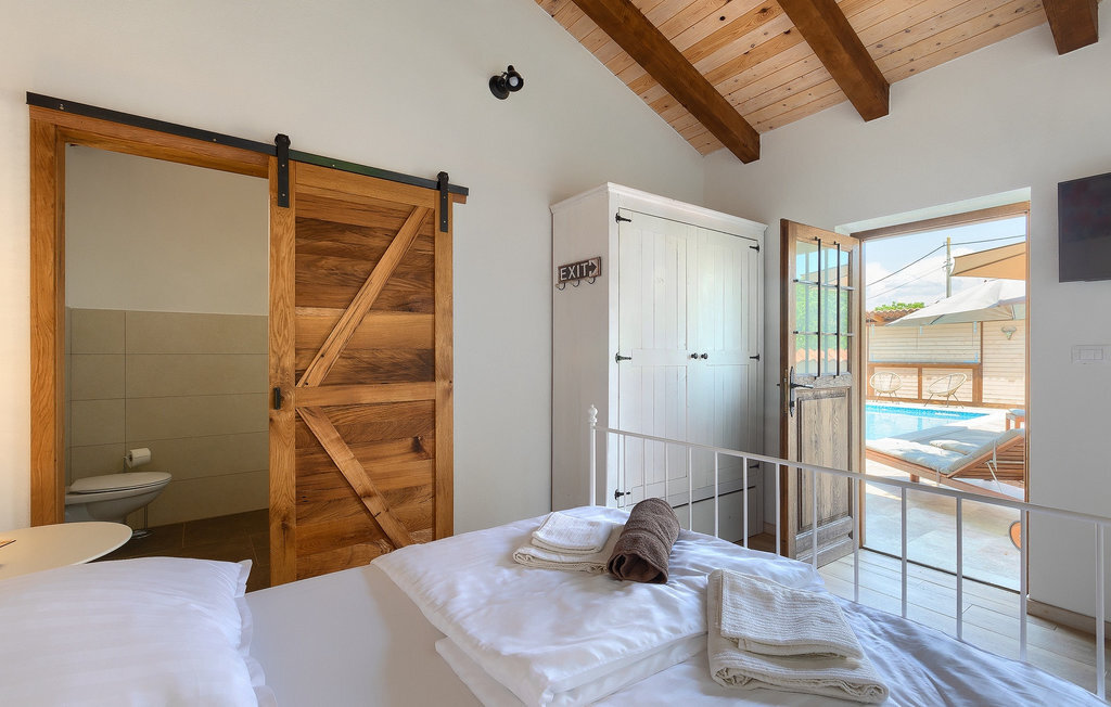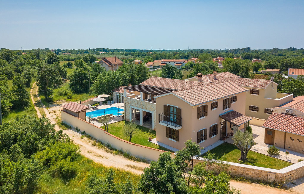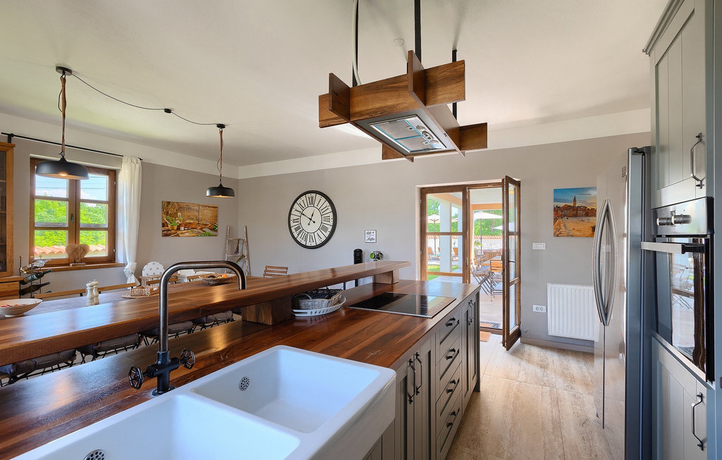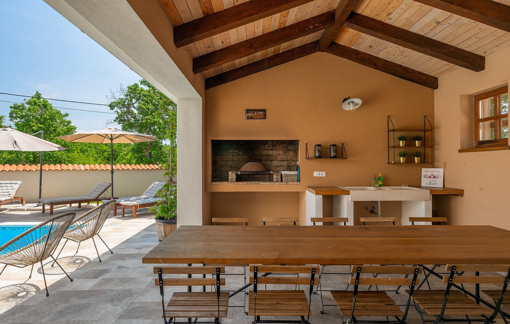 Si vous cherchez une villa privée avec piscine pour passer des vacances relaxantes avec vos proches, tout en profitant d'un design élégant et d'une atmosphère chaleureuse, vous êtes au bon endroit. La Villa Cirka est une magnifique villa de six chambres à coucher située dans le centre de l'Istrie, qui peut accueillir 12 personnes pour une famille ou un groupe d'amis. La villa offre un magnifique espace extérieur et un intérieur tout aussi impressionnant. L'espace extérieur permet aux hôtes de se détendre et de se rafraîchir dans la piscine chauffée de 36 m², de se relaxer sur les chaises longues en sirotant une boisson rafraîchissante et de laisser les plus jeunes jouer au ping-pong pendant qu'ils profitent de leurs vacances. Un barbecue au charbon de bois, une salle à manger extérieure couverte et des meubles de jardin confortables sont à la disposition des hôtes. Ils peuvent également préparer de merveilleux repas faits maison sur le barbecue à l'extérieur. L'intérieur et l'extérieur des deux niveaux de la villa sont décorés avec de nombreux détails en bois et présentent un style moderne et chaleureux. La maison principale dispose d'un grand salon spacieux avec un billard et un baby-foot, d'une cuisine moderne entièrement équipée et d'une salle à manger. Une chambre à coucher avec lits superposés et salle de bain privée et un deuxième WC se trouvent au rez-de-chaussée de la Villa Cirka. La villa est entièrement climatisée, dispose d'une connexion WLAN et accepte également les animaux domestiques. Au premier étage de la Villa Cirka se trouvent quatre autres chambres élégantes, chacune équipée d'une télévision, de la climatisation et d'une salle de bain attenante avec douche. Deux de ces chambres ont également des sorties sur des balcons. Le poolhouse, séparé de la maison principale, dispose d'une chambre double et d'une salle de bain privée avec douche et constitue l'endroit idéal pour les couples à la recherche d'un peu de tranquillité. La Villa Cirka est un endroit fantastique pour passer des vacances spéciales en famille ou entre amis, car elle offre de nombreuses commodités agréables, un design magnifique et un excellent emplacement. C'est dans le village de Svetvincenat, au centre de l'Istrie, que vous trouverez la belle Villa Cirka. Vodnjan, Motovun et Groznjan sont quelques-unes des belles villes romantiques de la région qui méritent d'être visitées. À proximité de la villa, vous trouverez d'excellents restaurants et tavernes proposant un grand choix de plats traditionnels tels que le prosciutto d'Istrie (Prsut) fait maison, les pâtes d'Istrie (Fuzi) et les spécialités méditerranéennes faites maison. La ville populaire de Rovinj n'est pas loin de la propriété, tandis que Pula, la plus grande perle d'Istrie, se trouve au sud de la région. De nombreuses curiosités de Pula sont connues, tout comme l'amphithéâtre romain que vous devez absolument visiter. La prochaine étape devrait être le parc national de Brijuni si vous souhaitez explorer les environs pittoresques et profiter de la nature et de la faune. La température de la piscine chauffée dépend de facteurs extérieurs, y compris des conditions météorologiques, et la température de l'eau ne peut donc pas être garantie.