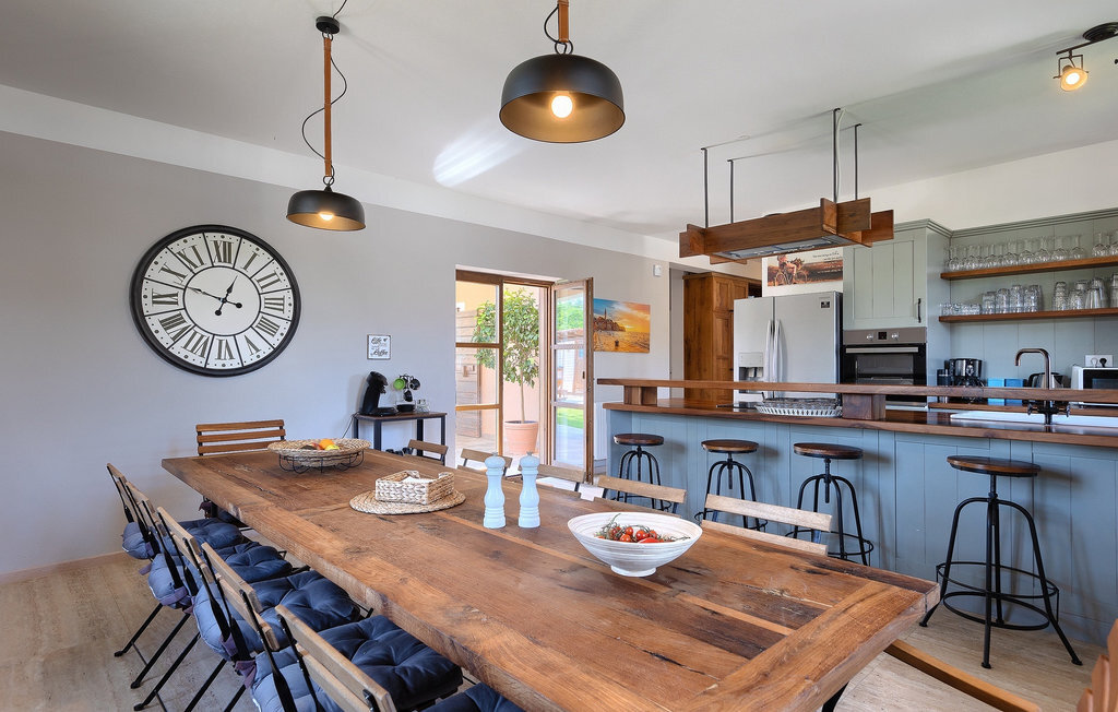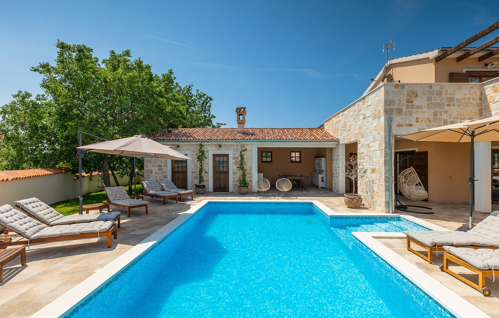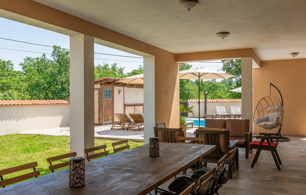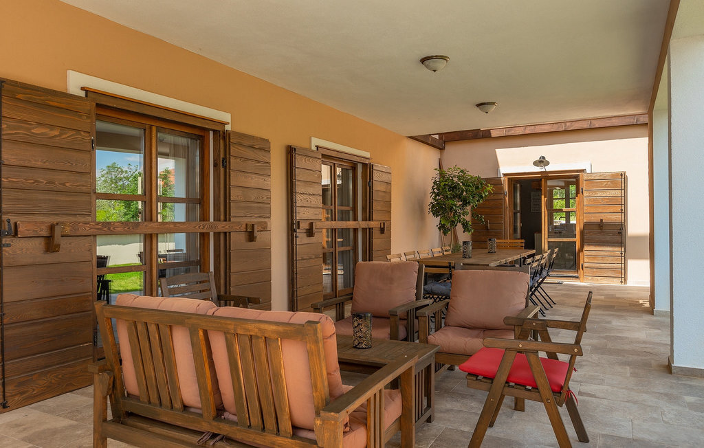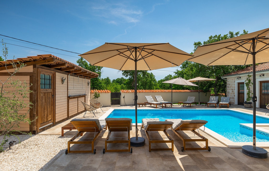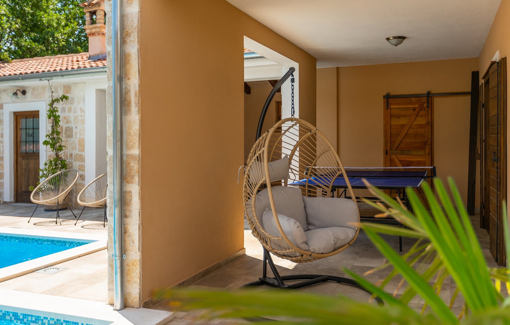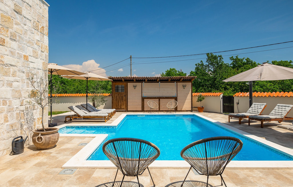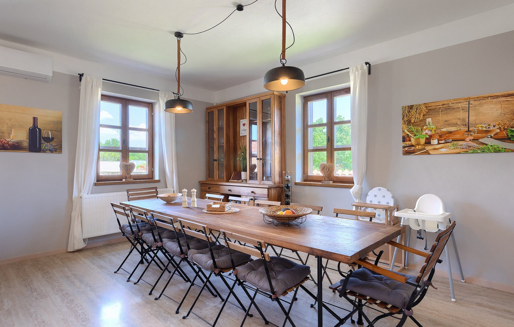 Si vous cherchez une villa privée avec piscine pour passer des vacances relaxantes avec vos proches, tout en profitant d'un design élégant et d'une atmosphère chaleureuse, vous êtes au bon endroit. La Villa Cirka est une magnifique villa de six chambres à coucher située dans le centre de l'Istrie, qui peut accueillir 12 personnes pour une famille ou un groupe d'amis. La villa offre un magnifique espace extérieur et un intérieur tout aussi impressionnant. L'espace extérieur permet aux hôtes de se détendre et de se rafraîchir dans la piscine chauffée de 36 m², de se relaxer sur les chaises longues en sirotant une boisson rafraîchissante et de laisser les plus jeunes jouer au ping-pong pendant qu'ils profitent de leurs vacances. Un barbecue au charbon de bois, une salle à manger extérieure couverte et des meubles de jardin confortables sont à la disposition des hôtes. Ils peuvent également préparer de merveilleux repas faits maison sur le barbecue à l'extérieur. L'intérieur et l'extérieur des deux niveaux de la villa sont décorés avec de nombreux détails en bois et présentent un style moderne et chaleureux. La maison principale dispose d'un grand salon spacieux avec un billard et un baby-foot, d'une cuisine moderne entièrement équipée et d'une salle à manger. Une chambre à coucher avec lits superposés et salle de bain privée et un deuxième WC se trouvent au rez-de-chaussée de la Villa Cirka. La villa est entièrement climatisée, dispose d'une connexion WLAN et accepte également les animaux domestiques. Au premier étage de la Villa Cirka se trouvent quatre autres chambres élégantes, chacune équipée d'une télévision, de la climatisation et d'une salle de bain attenante avec douche. Deux de ces chambres ont également des sorties sur des balcons. Le poolhouse, séparé de la maison principale, dispose d'une chambre double et d'une salle de bain privée avec douche et constitue l'endroit idéal pour les couples à la recherche d'un peu de tranquillité. La Villa Cirka est un endroit fantastique pour passer des vacances spéciales en famille ou entre amis, car elle offre de nombreuses commodités agréables, un design magnifique et un excellent emplacement. C'est dans le village de Svetvincenat, au centre de l'Istrie, que vous trouverez la belle Villa Cirka. Vodnjan, Motovun et Groznjan sont quelques-unes des belles villes romantiques de la région qui méritent d'être visitées. À proximité de la villa, vous trouverez d'excellents restaurants et tavernes proposant un grand choix de plats traditionnels tels que le prosciutto d'Istrie (Prsut) fait maison, les pâtes d'Istrie (Fuzi) et les spécialités méditerranéennes faites maison. La ville populaire de Rovinj n'est pas loin de la propriété, tandis que Pula, la plus grande perle d'Istrie, se trouve au sud de la région. De nombreuses curiosités de Pula sont connues, tout comme l'amphithéâtre romain que vous devez absolument visiter. La prochaine étape devrait être le parc national de Brijuni si vous souhaitez explorer les environs pittoresques et profiter de la nature et de la faune. La température de la piscine chauffée dépend de facteurs extérieurs, y compris des conditions météorologiques, et la température de l'eau ne peut donc pas être garantie.