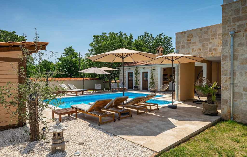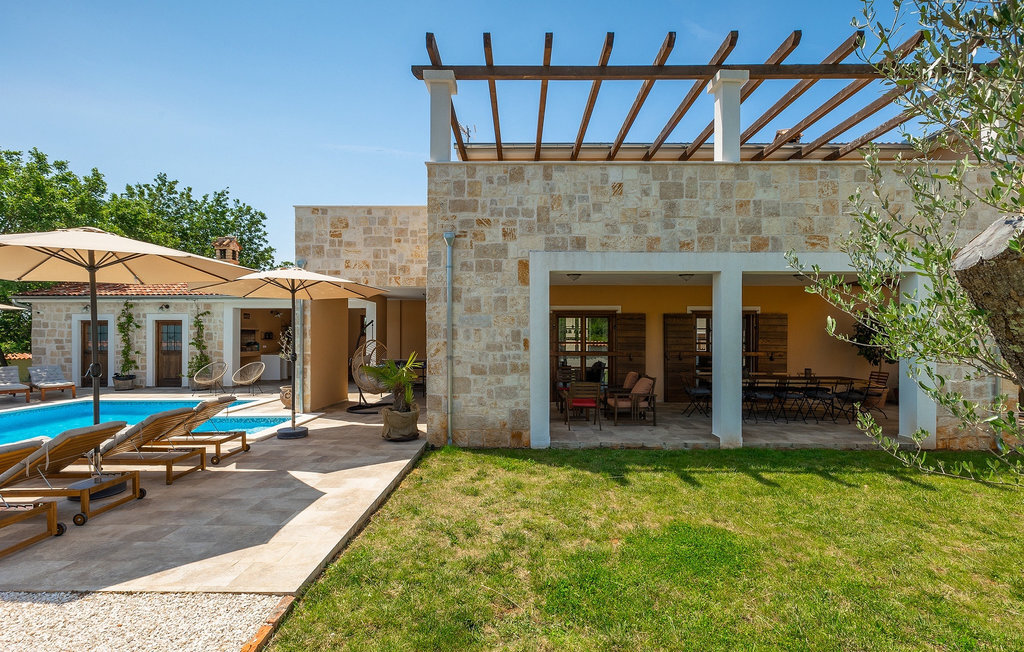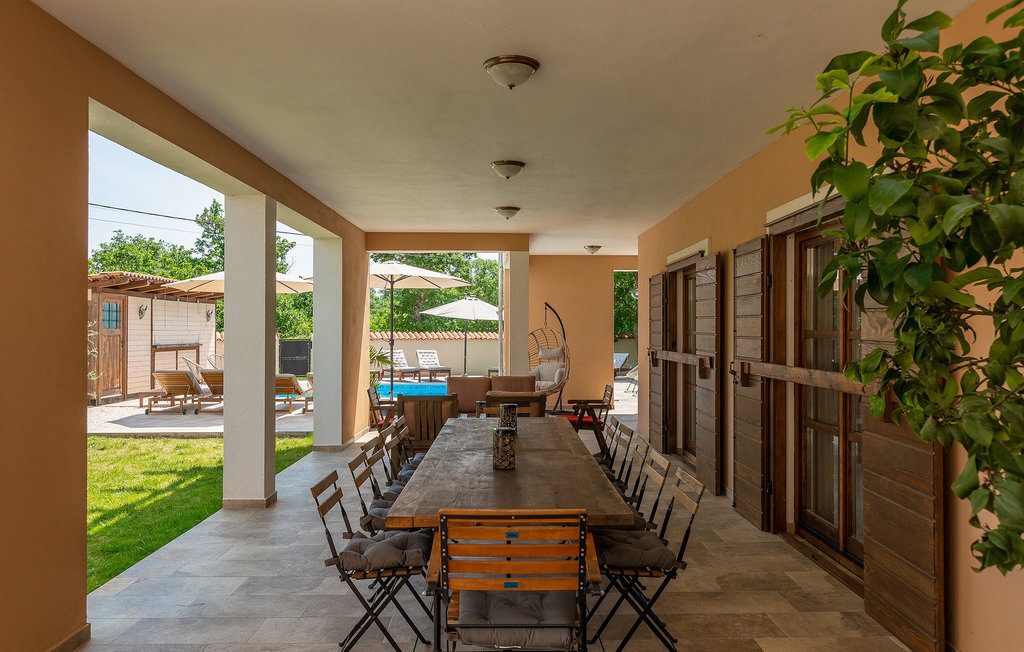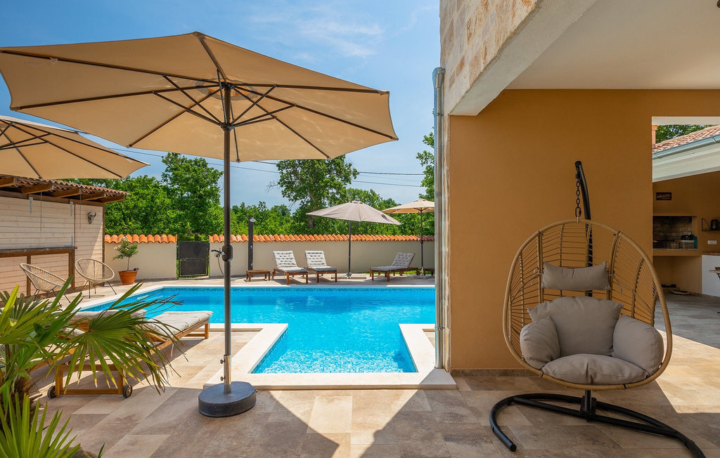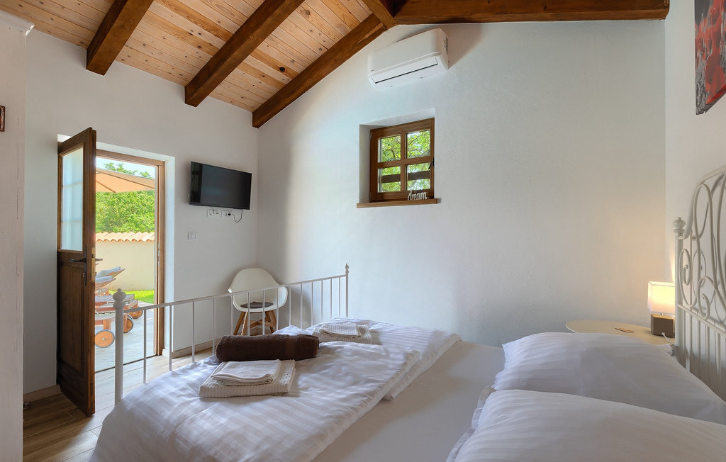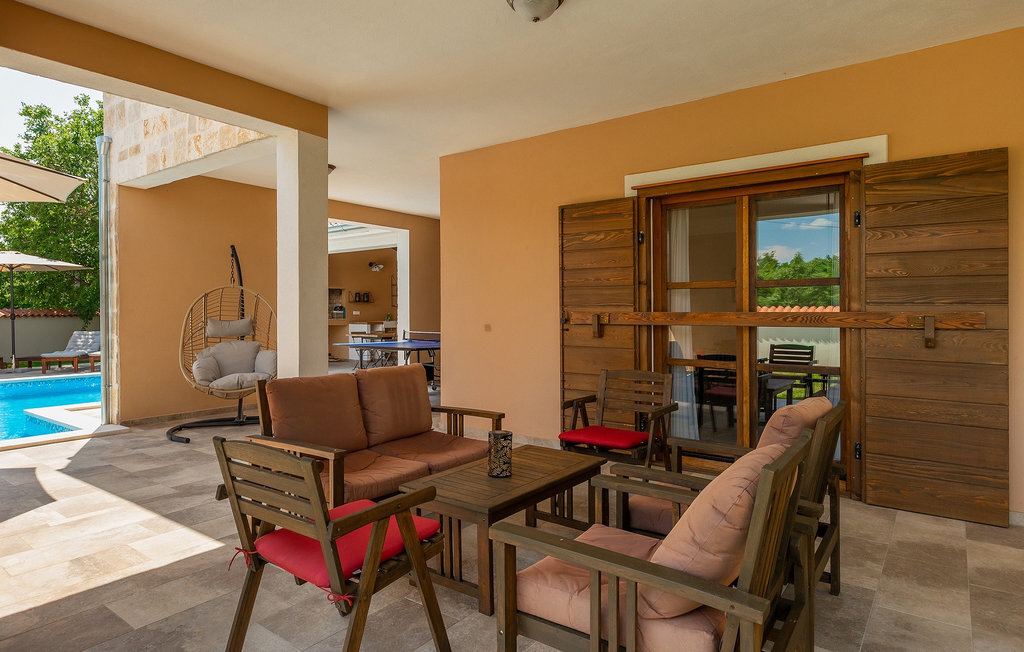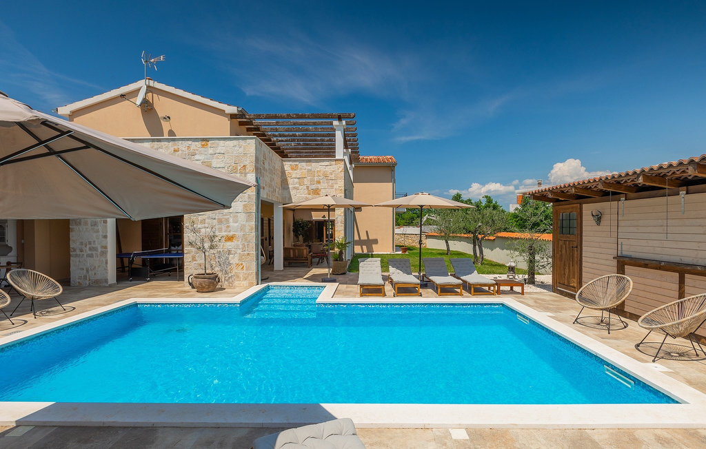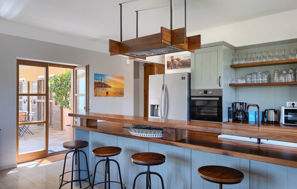 Si vous cherchez une villa privée avec piscine pour passer des vacances relaxantes avec vos proches, tout en profitant d'un design élégant et d'une atmosphère chaleureuse, vous êtes au bon endroit. La Villa Cirka est une magnifique villa de six chambres à coucher située dans le centre de l'Istrie, qui peut accueillir 12 personnes pour une famille ou un groupe d'amis. La villa offre un magnifique espace extérieur et un intérieur tout aussi impressionnant. L'espace extérieur permet aux hôtes de se détendre et de se rafraîchir dans la piscine chauffée de 36 m², de se relaxer sur les chaises longues en sirotant une boisson rafraîchissante et de laisser les plus jeunes jouer au ping-pong pendant qu'ils profitent de leurs vacances. Un barbecue au charbon de bois, une salle à manger extérieure couverte et des meubles de jardin confortables sont à la disposition des hôtes. Ils peuvent également préparer de merveilleux repas faits maison sur le barbecue à l'extérieur. L'intérieur et l'extérieur des deux niveaux de la villa sont décorés avec de nombreux détails en bois et présentent un style moderne et chaleureux. La maison principale dispose d'un grand salon spacieux avec un billard et un baby-foot, d'une cuisine moderne entièrement équipée et d'une salle à manger. Une chambre à coucher avec lits superposés et salle de bain privée et un deuxième WC se trouvent au rez-de-chaussée de la Villa Cirka. La villa est entièrement climatisée, dispose d'une connexion WLAN et accepte également les animaux domestiques. Au premier étage de la Villa Cirka se trouvent quatre autres chambres élégantes, chacune équipée d'une télévision, de la climatisation et d'une salle de bain attenante avec douche. Deux de ces chambres ont également des sorties sur des balcons. Le poolhouse, séparé de la maison principale, dispose d'une chambre double et d'une salle de bain privée avec douche et constitue l'endroit idéal pour les couples à la recherche d'un peu de tranquillité. La Villa Cirka est un endroit fantastique pour passer des vacances spéciales en famille ou entre amis, car elle offre de nombreuses commodités agréables, un design magnifique et un excellent emplacement. C'est dans le village de Svetvincenat, au centre de l'Istrie, que vous trouverez la belle Villa Cirka. Vodnjan, Motovun et Groznjan sont quelques-unes des belles villes romantiques de la région qui méritent d'être visitées. À proximité de la villa, vous trouverez d'excellents restaurants et tavernes proposant un grand choix de plats traditionnels tels que le prosciutto d'Istrie (Prsut) fait maison, les pâtes d'Istrie (Fuzi) et les spécialités méditerranéennes faites maison. La ville populaire de Rovinj n'est pas loin de la propriété, tandis que Pula, la plus grande perle d'Istrie, se trouve au sud de la région. De nombreuses curiosités de Pula sont connues, tout comme l'amphithéâtre romain que vous devez absolument visiter. La prochaine étape devrait être le parc national de Brijuni si vous souhaitez explorer les environs pittoresques et profiter de la nature et de la faune. La température de la piscine chauffée dépend de facteurs extérieurs, y compris des conditions météorologiques, et la température de l'eau ne peut donc pas être garantie.